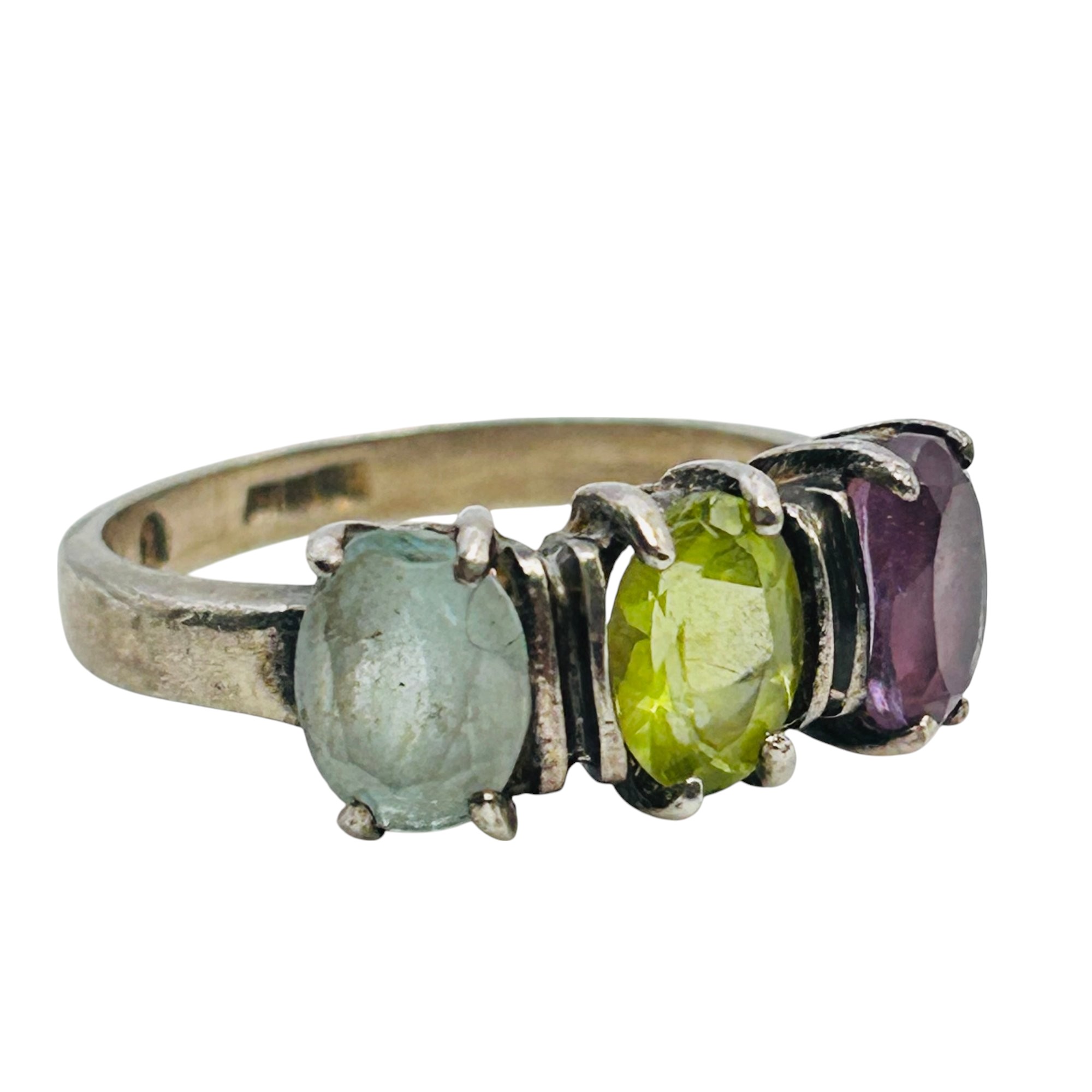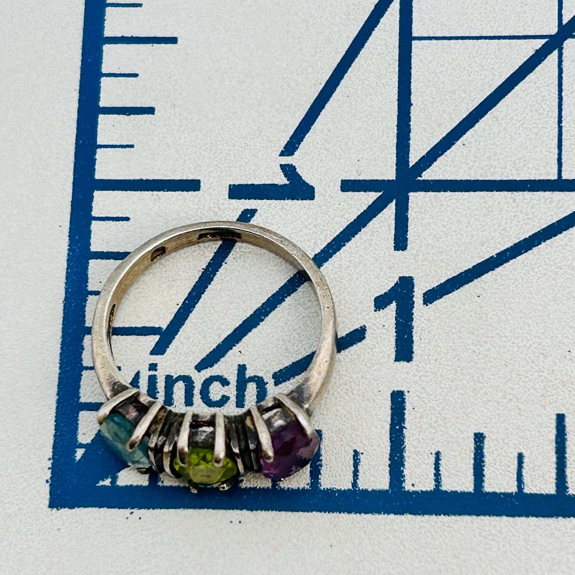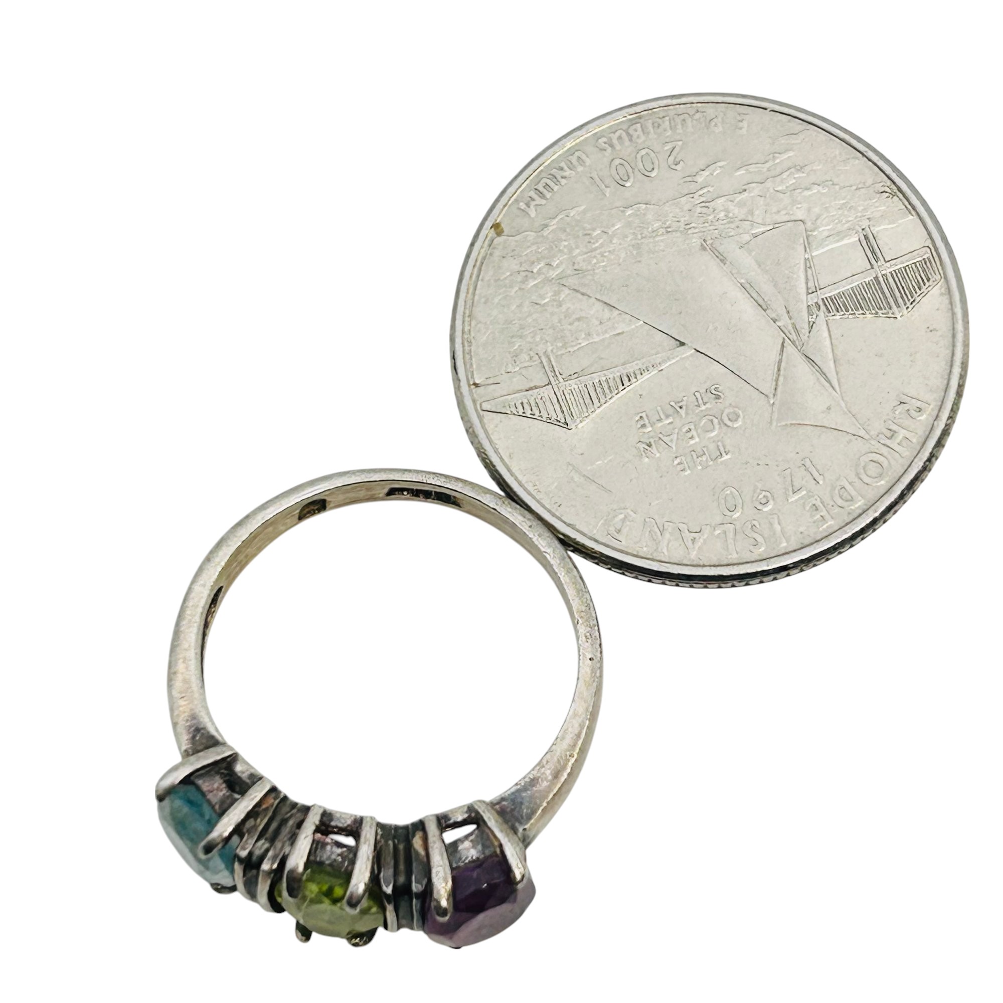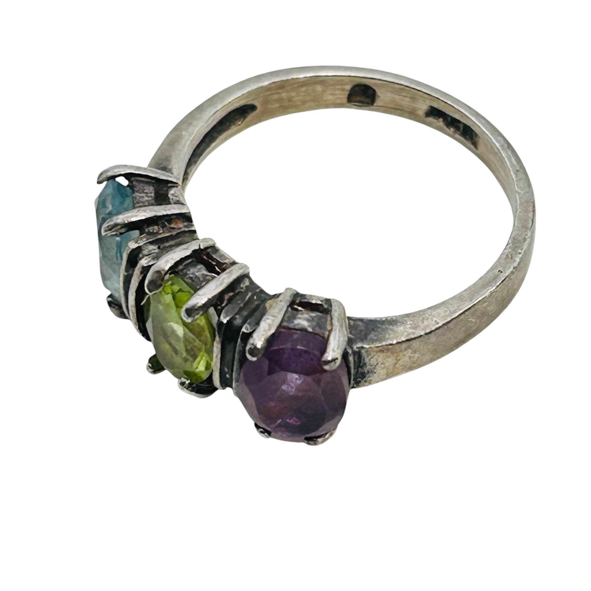 Amethyst Garnet topaz Sterling three stone ring size 6 3.31 g