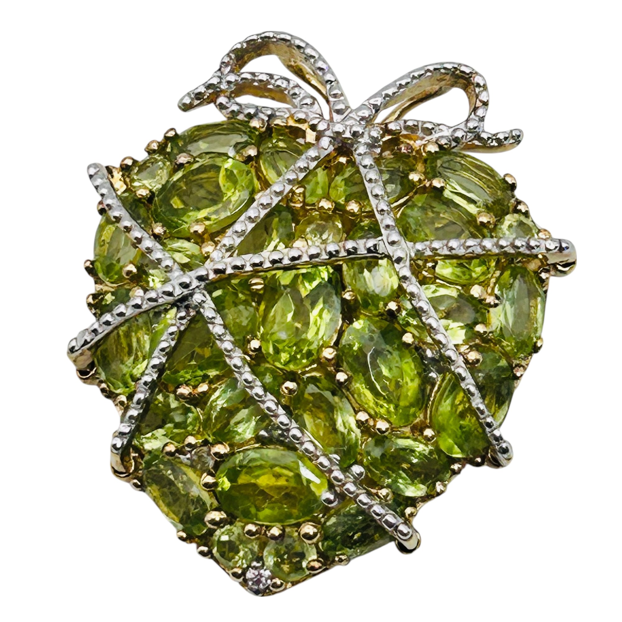 GP emerald gold over sterling sterling bow wrapped heart pendant 9.47 g