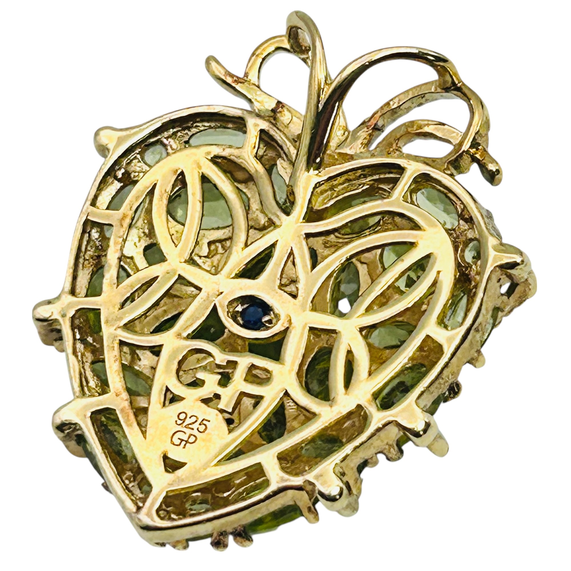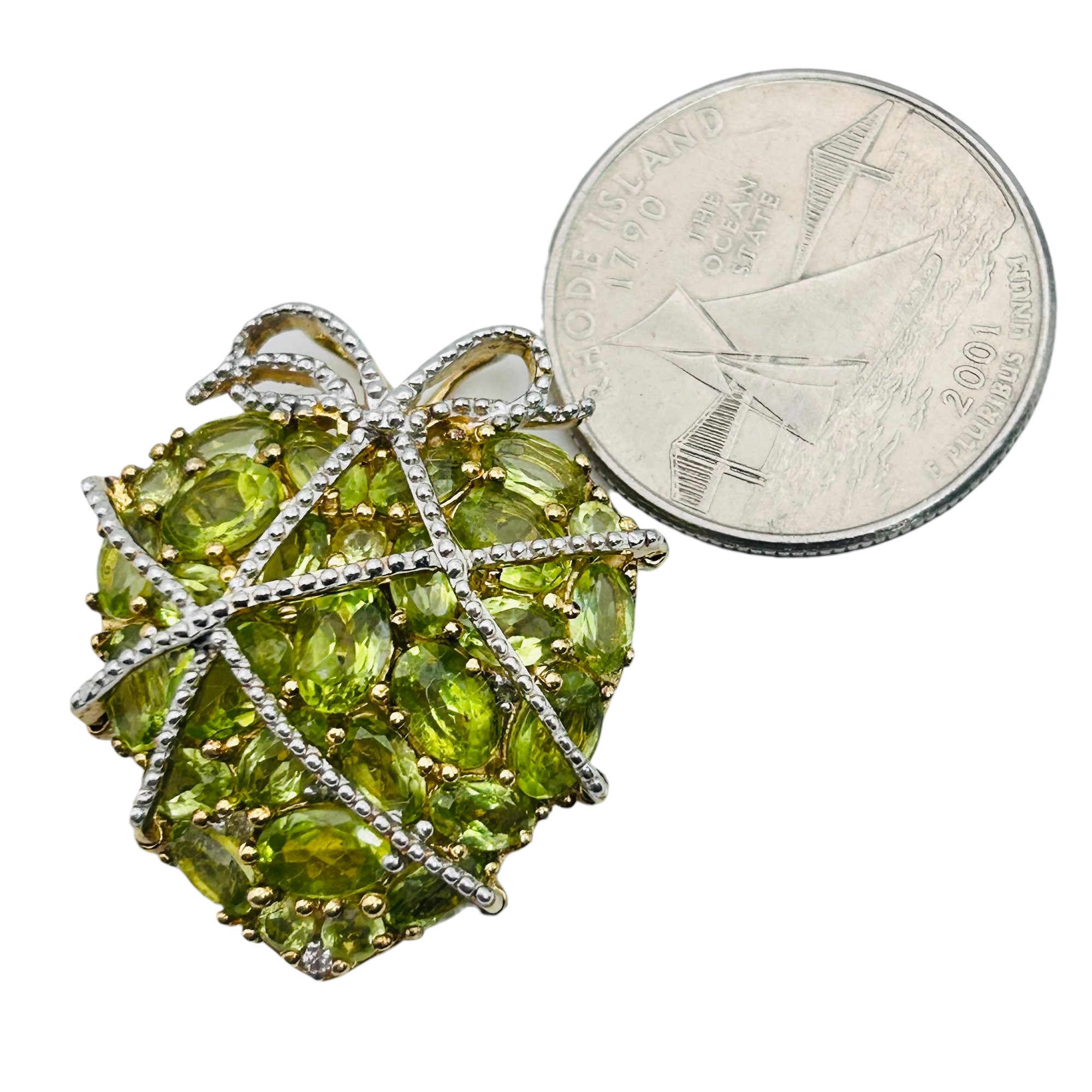 GP Emerald Gold Over Sterling Sterling Bow Wrapped Heart Pendant 9.47 G