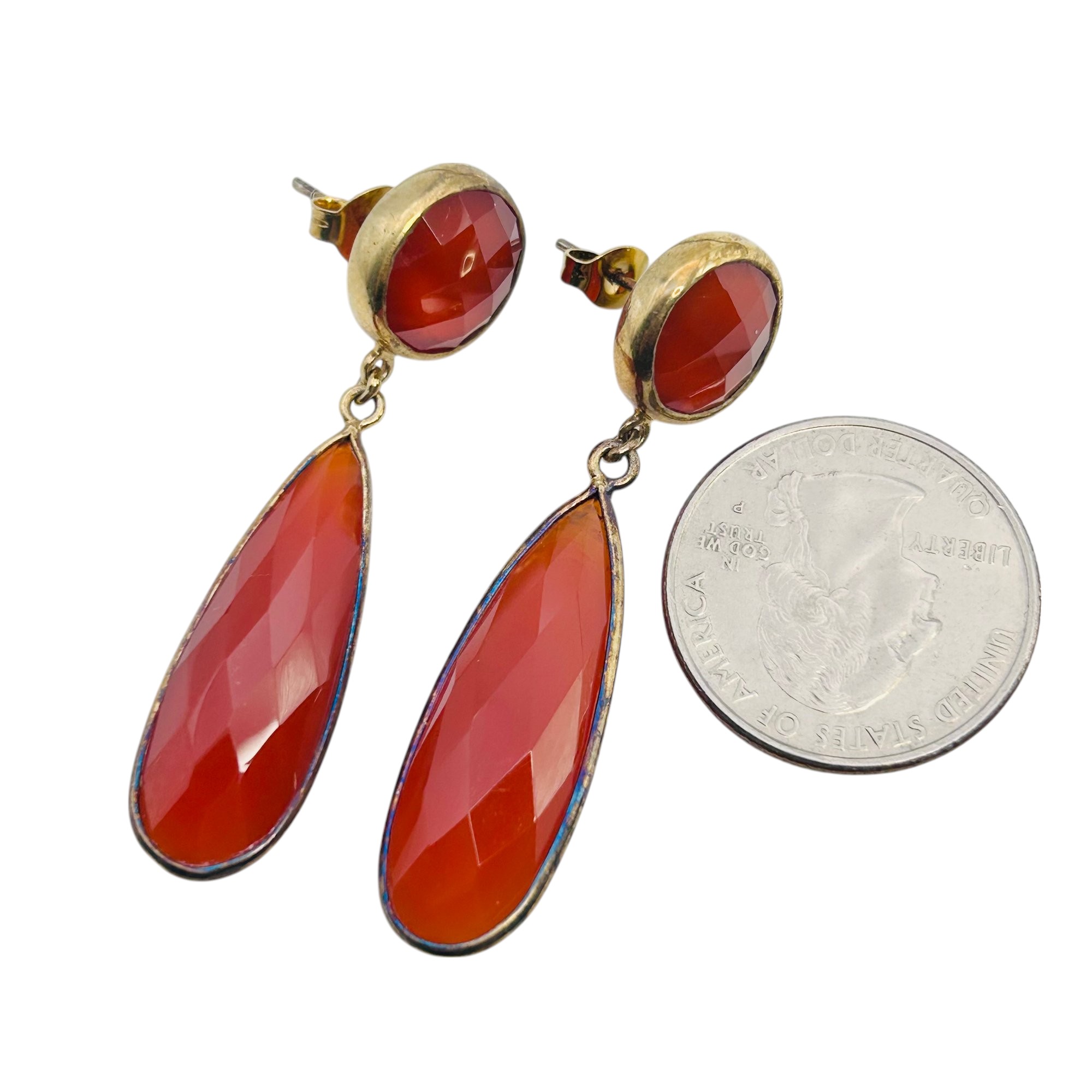 Carnelian Sterling pushback dangle earrings 10.4 g