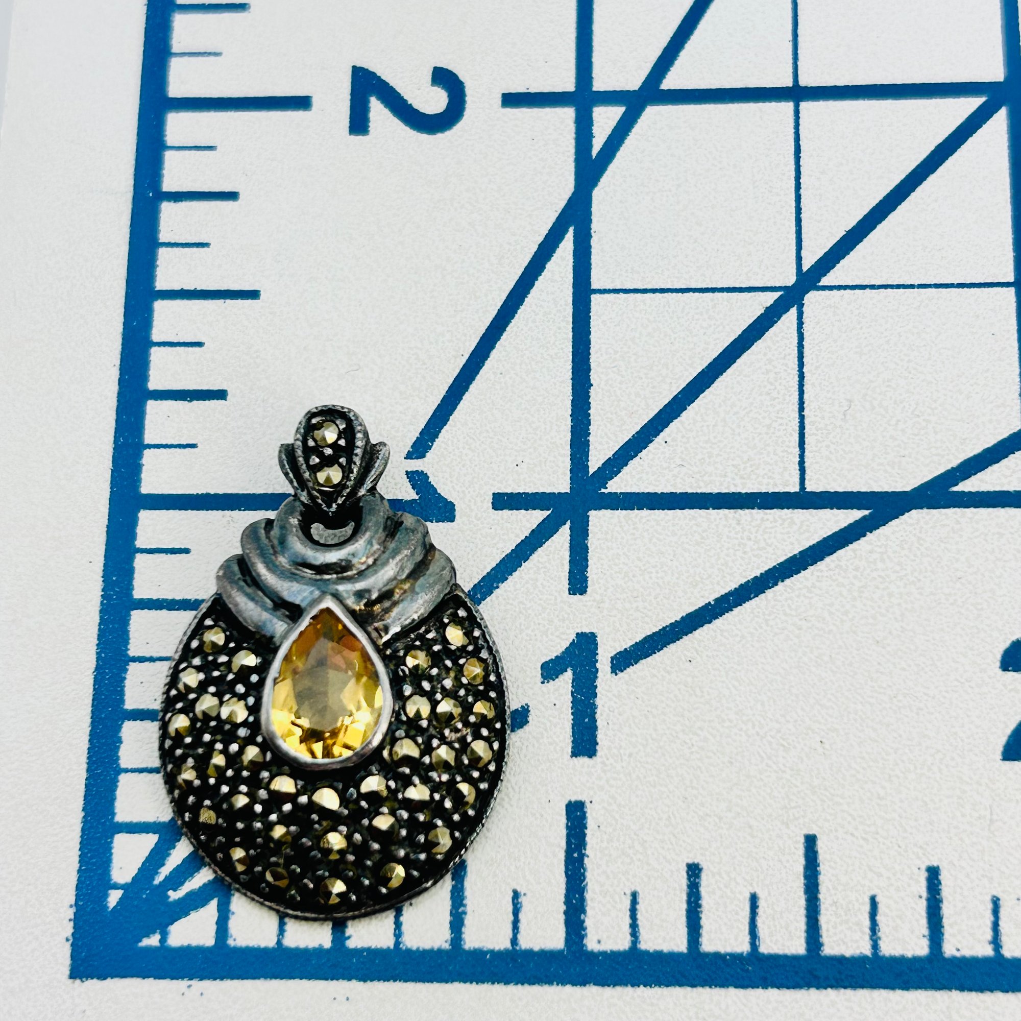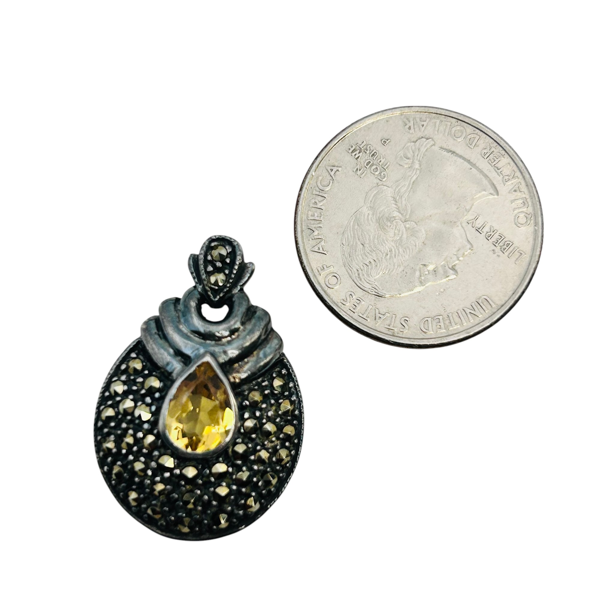 Citrine and MARCASITE Sterling signed pendant 5.2 g