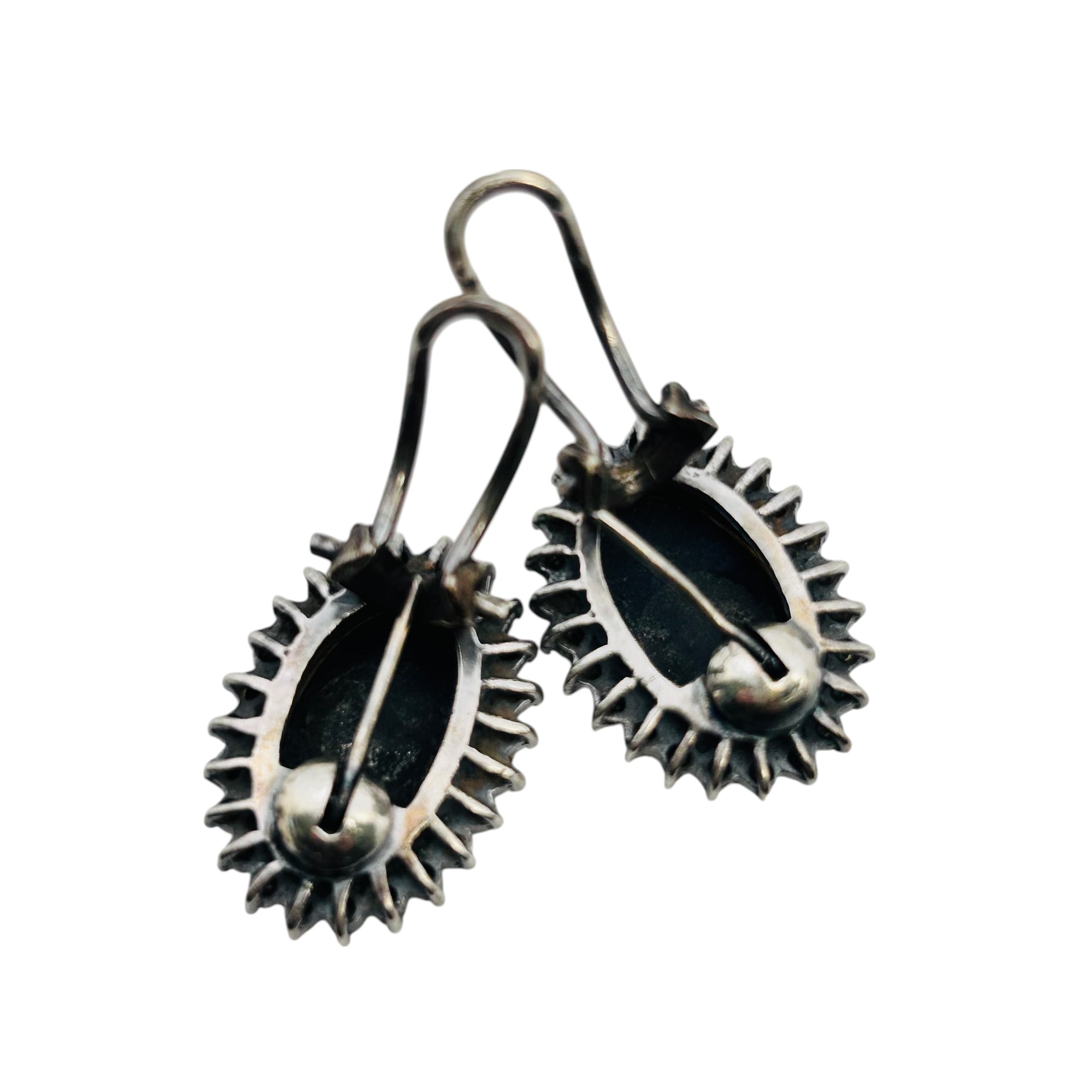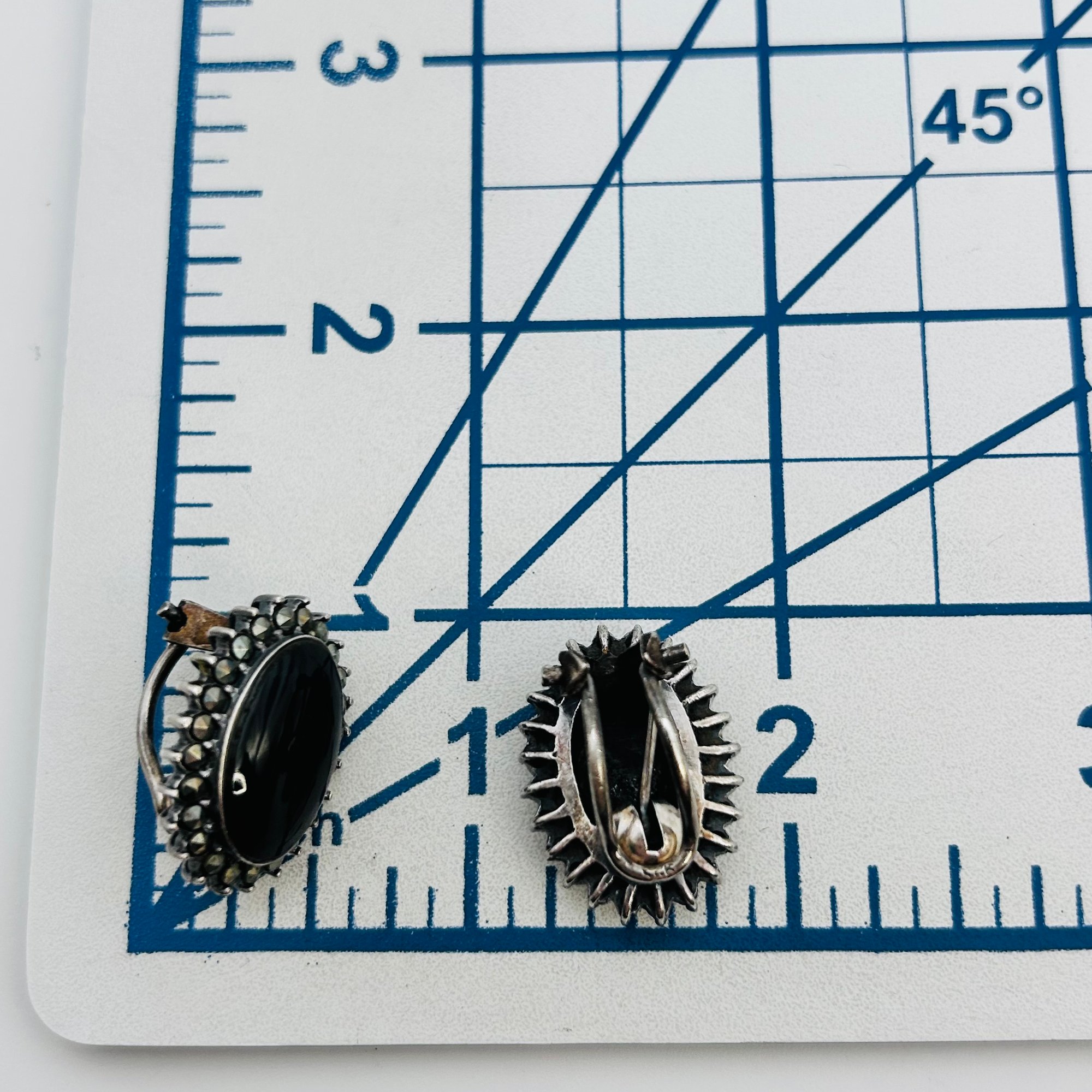 Onyx and MARCASITE Sterling oval clip on earrings 11 g