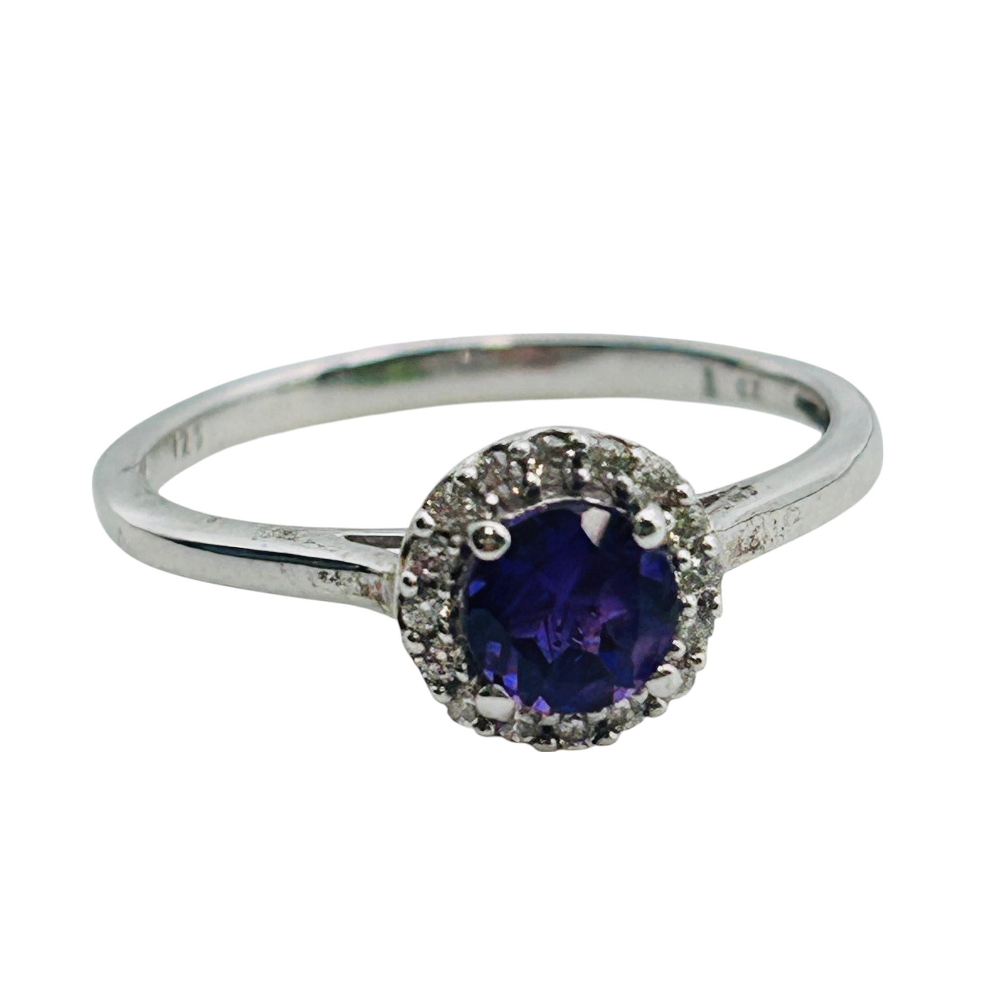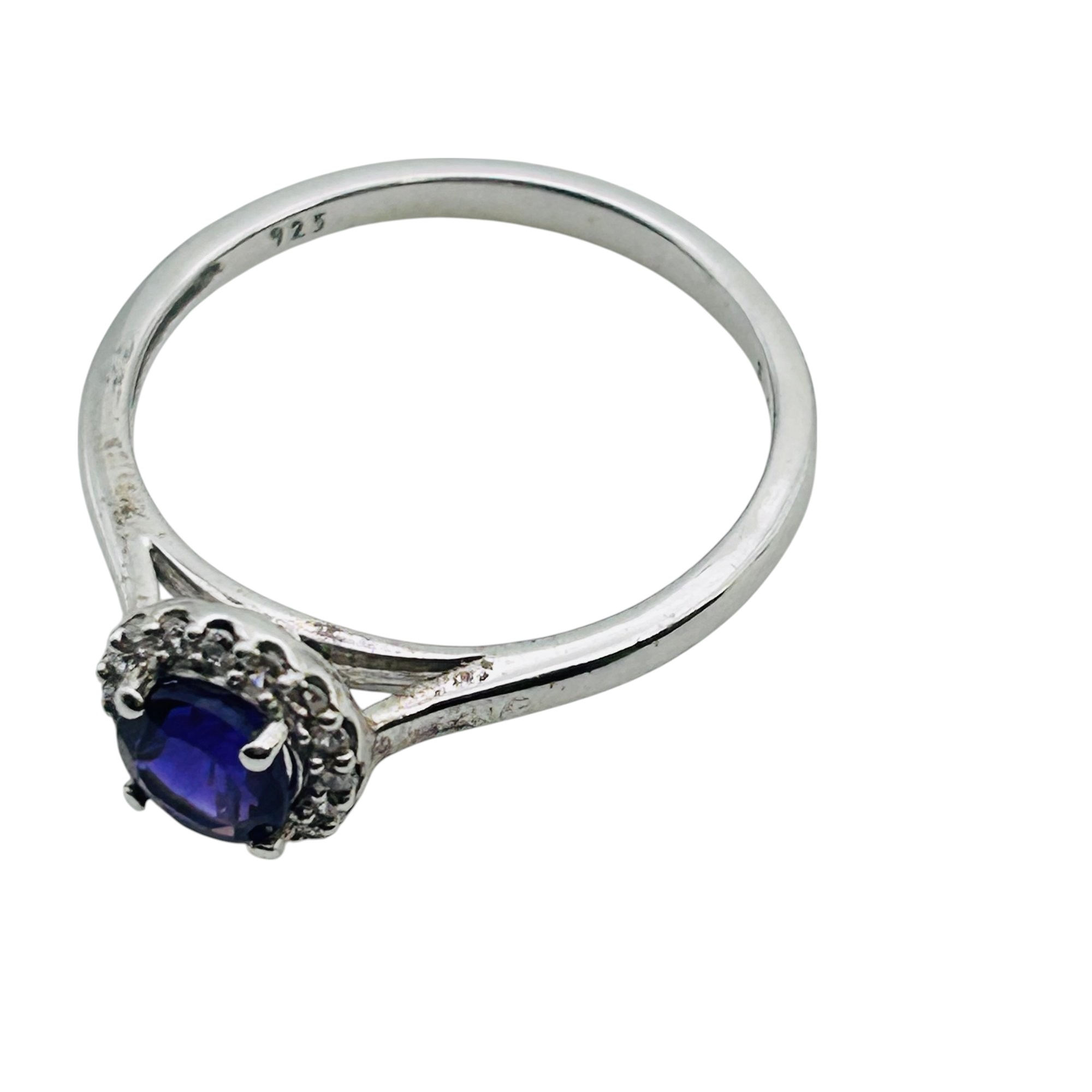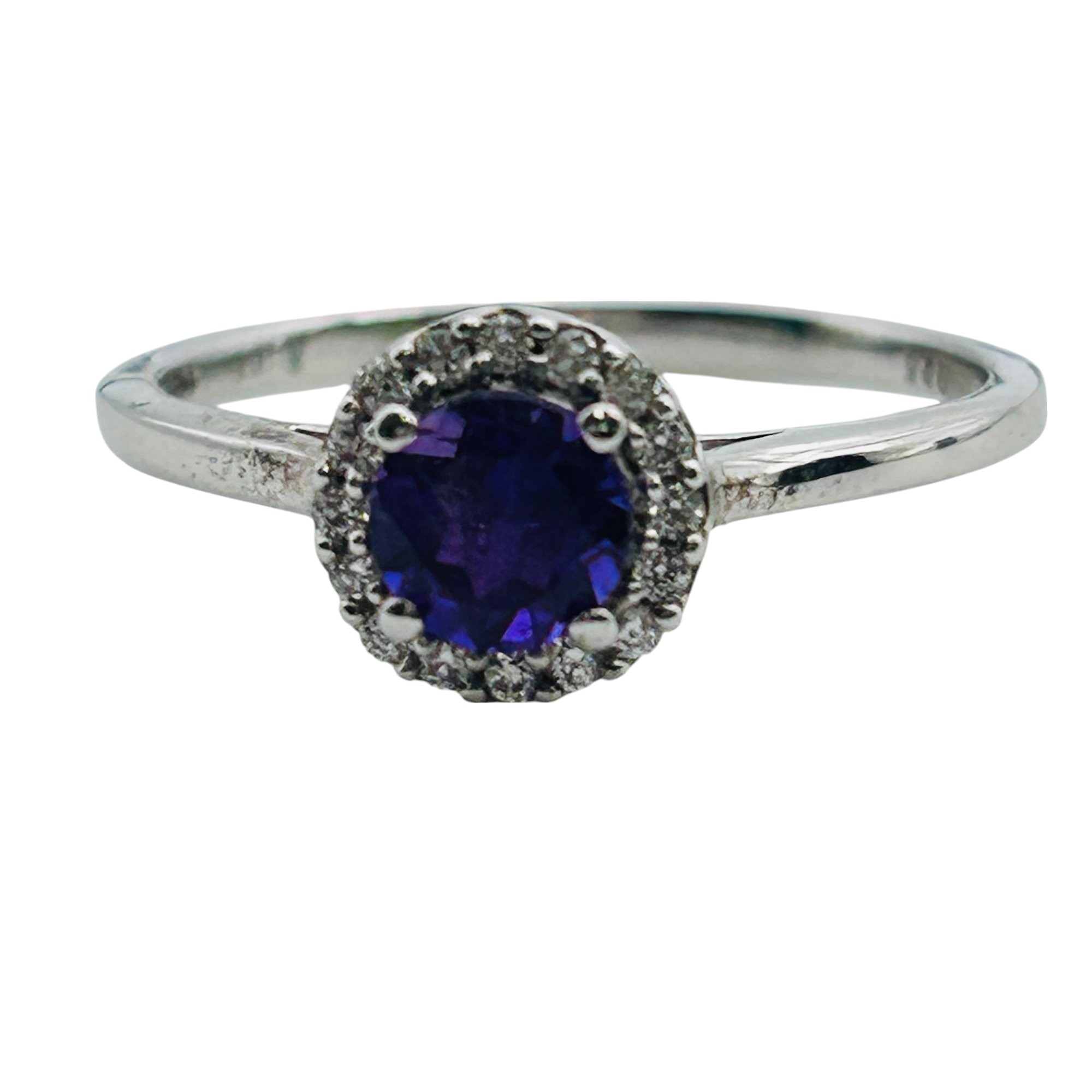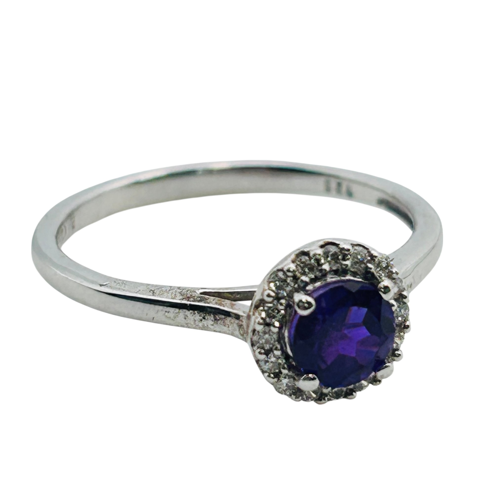 Amethyst in cubic zirconia surround Sterling ring size 7 1.52 g