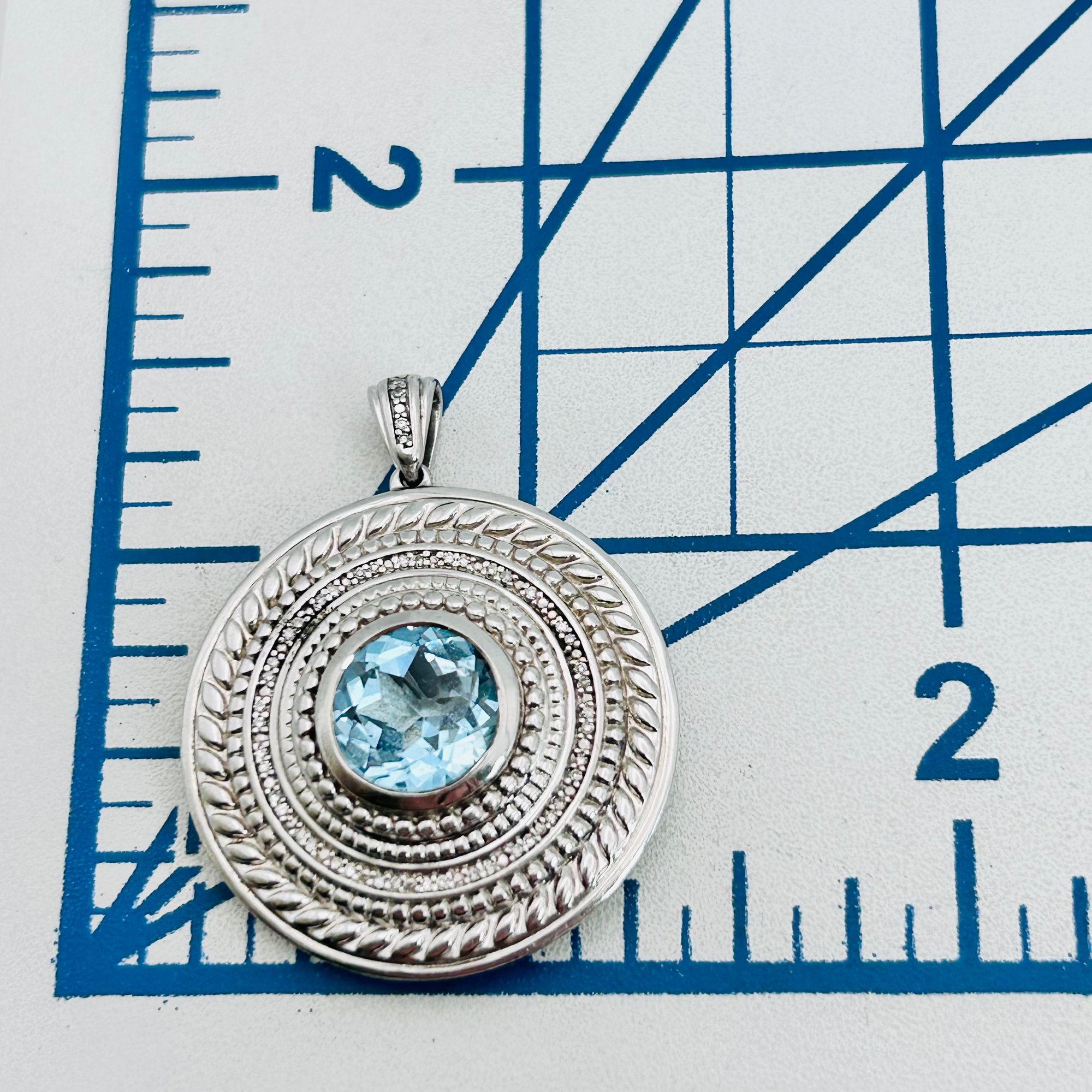 HOB topaz and diamond surround sterling round pendant 15.15 g