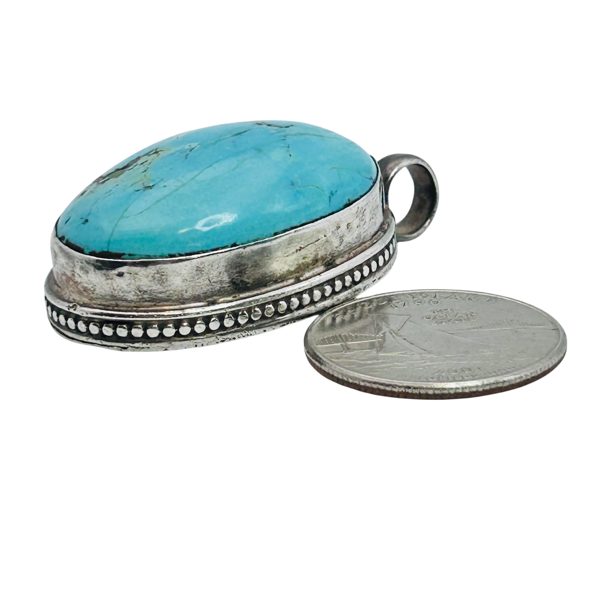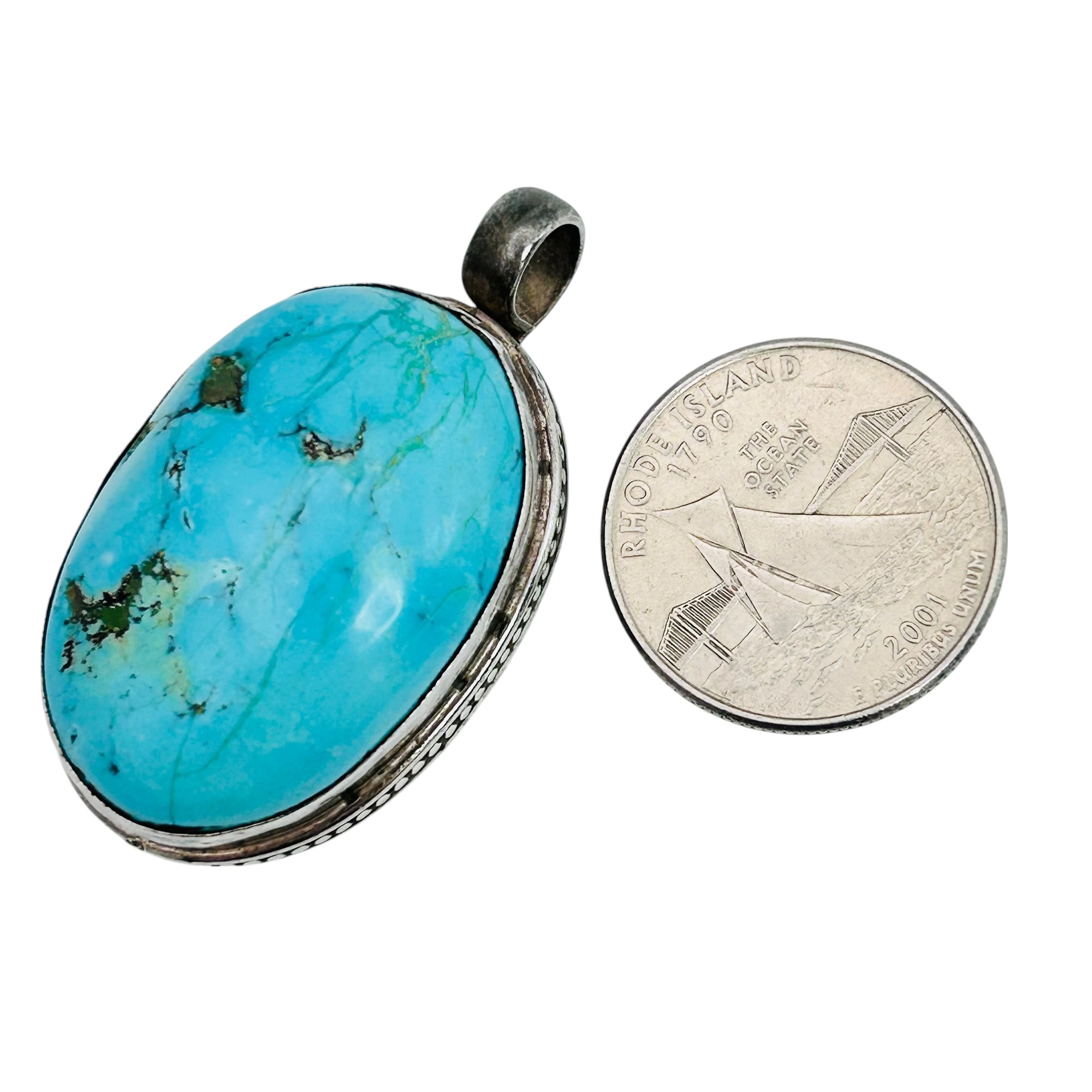 Southwest turquoise Sterling oval pendant 35 g