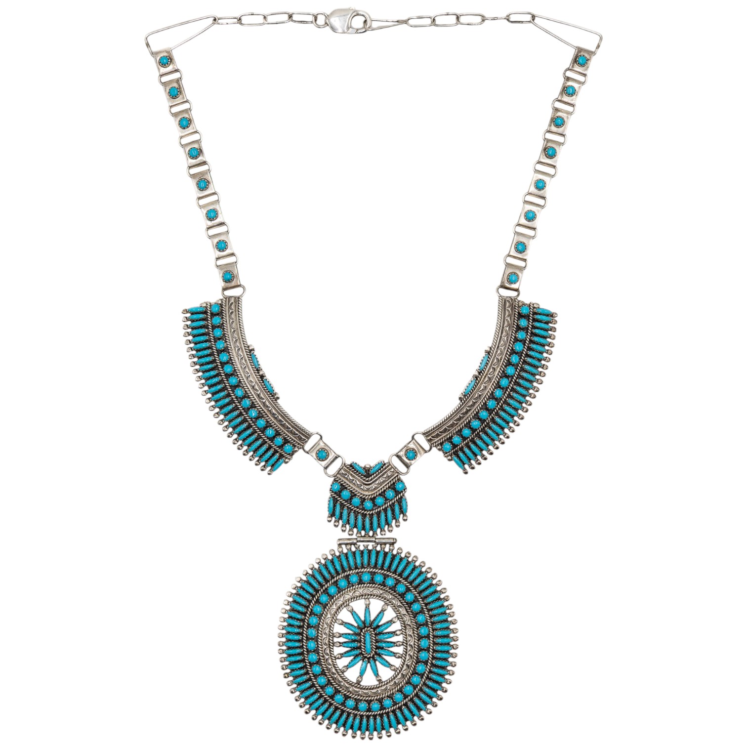 Francis M. Begay Navajo Sterling Turquoise Cluster Necklace 103g
