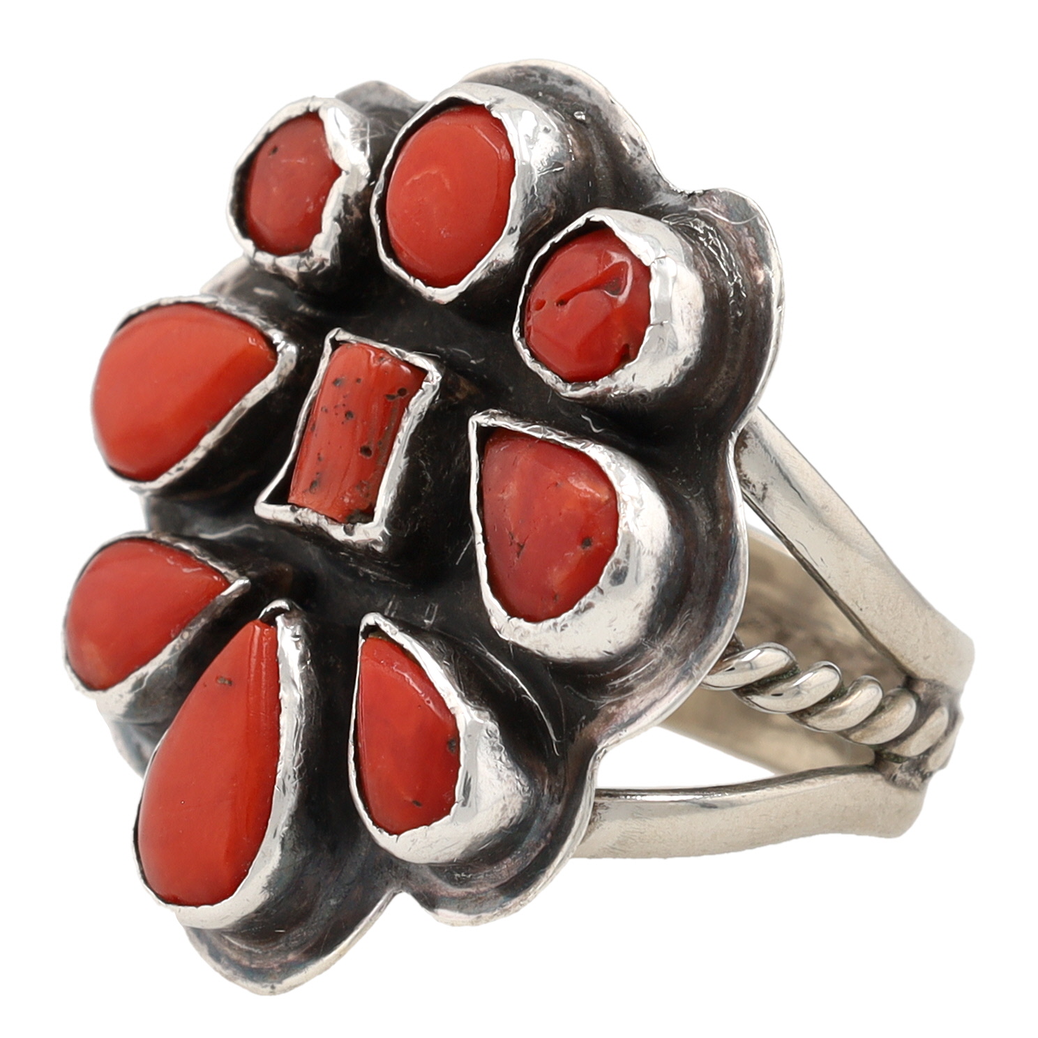 Spirit Winds LUW Navajo Sterling Coral Ring Sz. 9.75, 7g