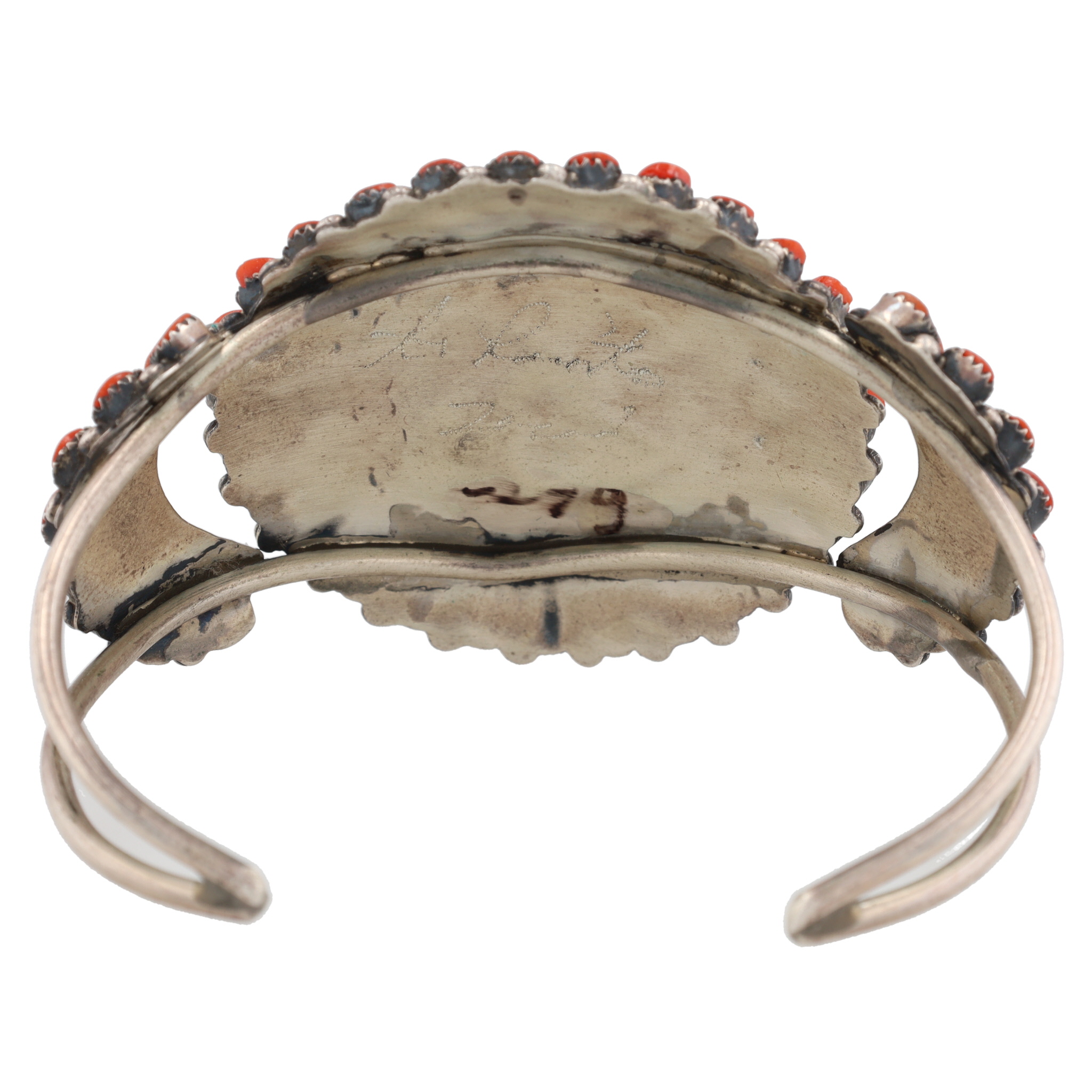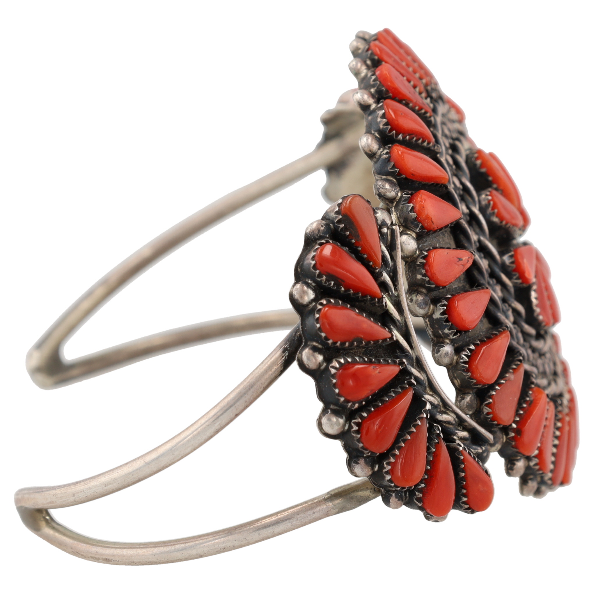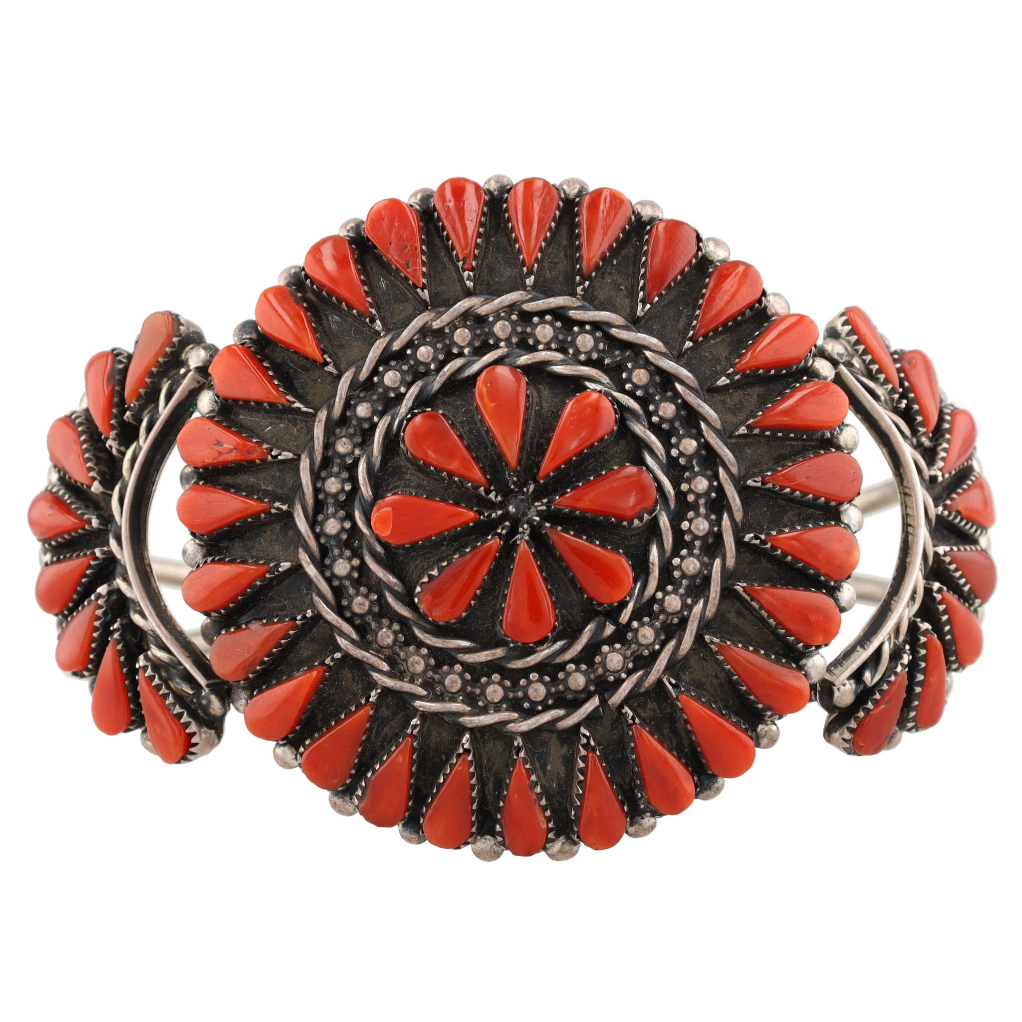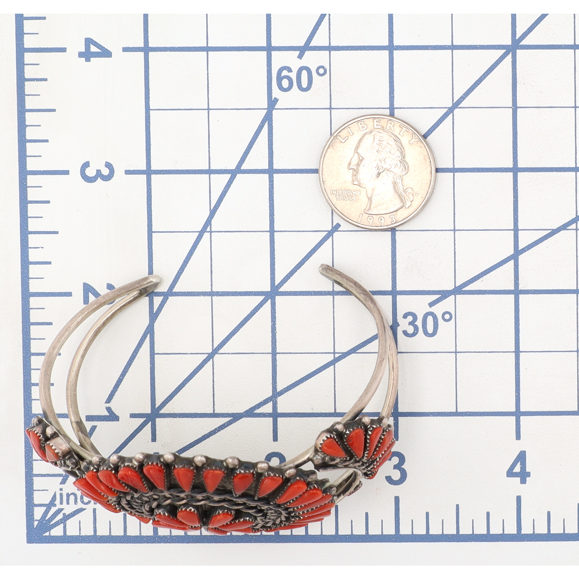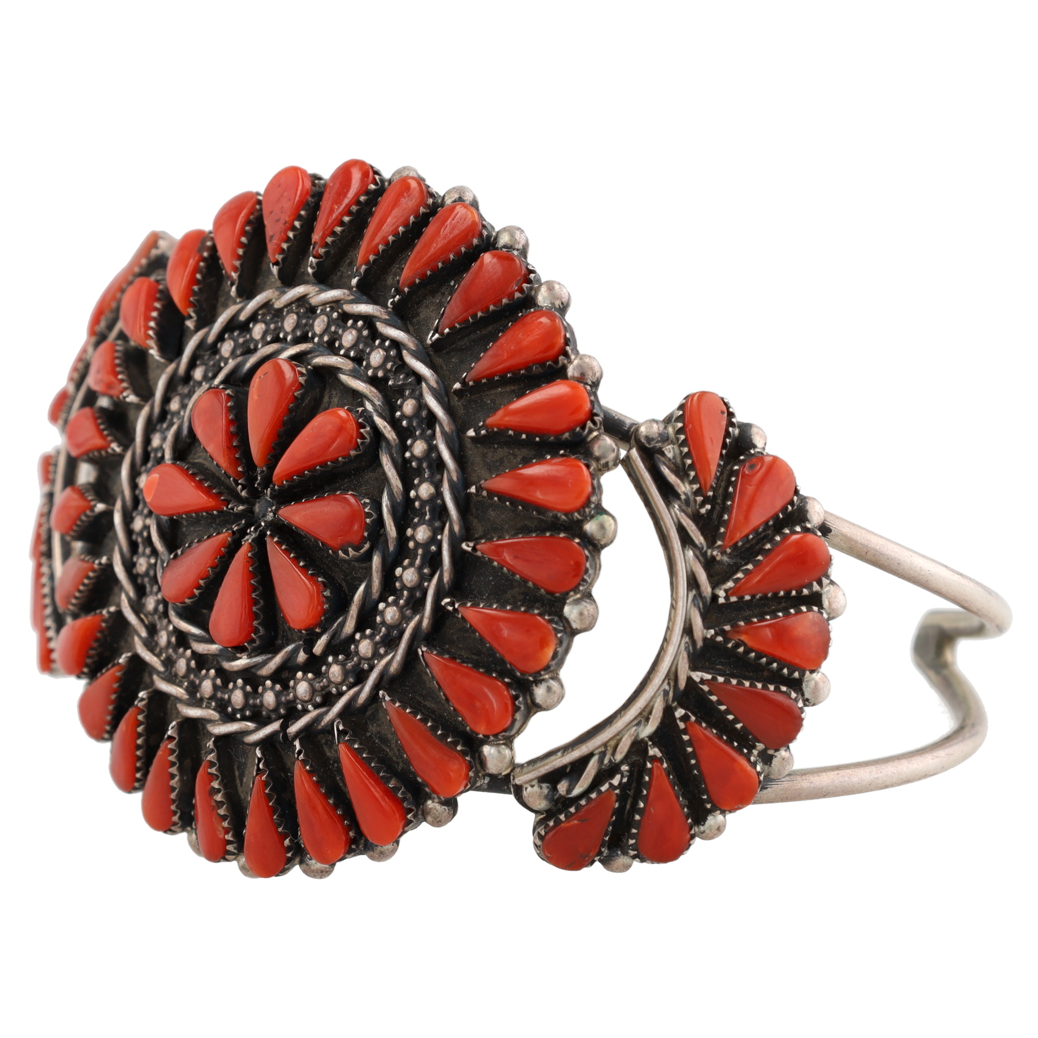A. Pinto Zuni Sterling Coral Cluster Cuff Bracelet 33.5g