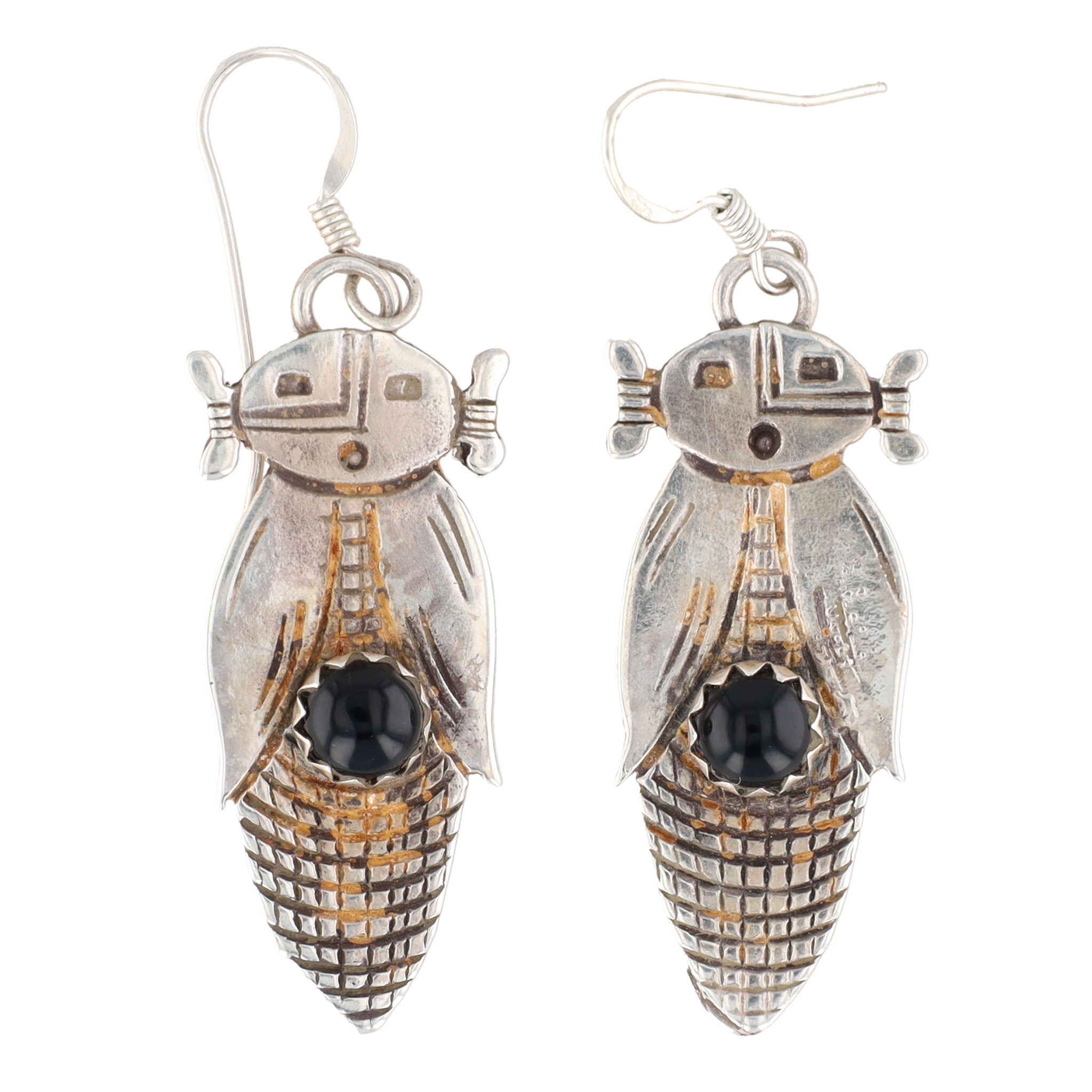 Ann Miller Navajo Sterling Onyx Corn Maiden Earrings 6.5g