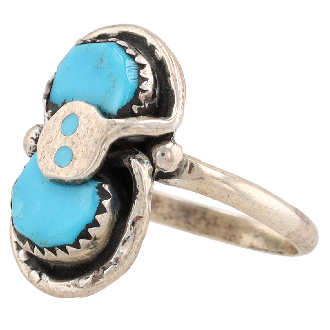 Effie Calavaza Zuni Sterling Turquoise Snake Ring Sz. 5, 3.5g