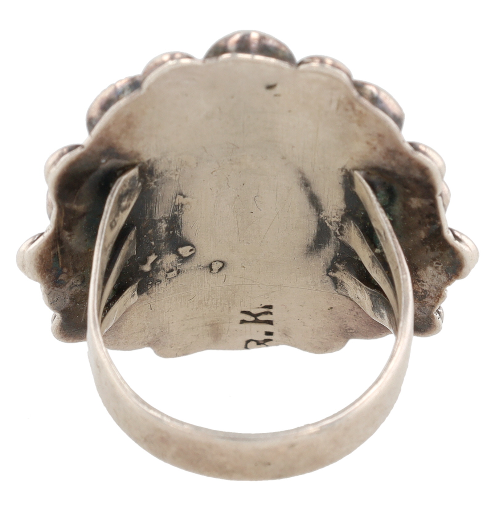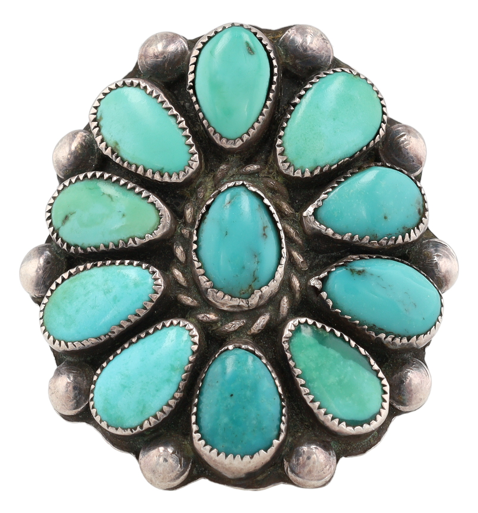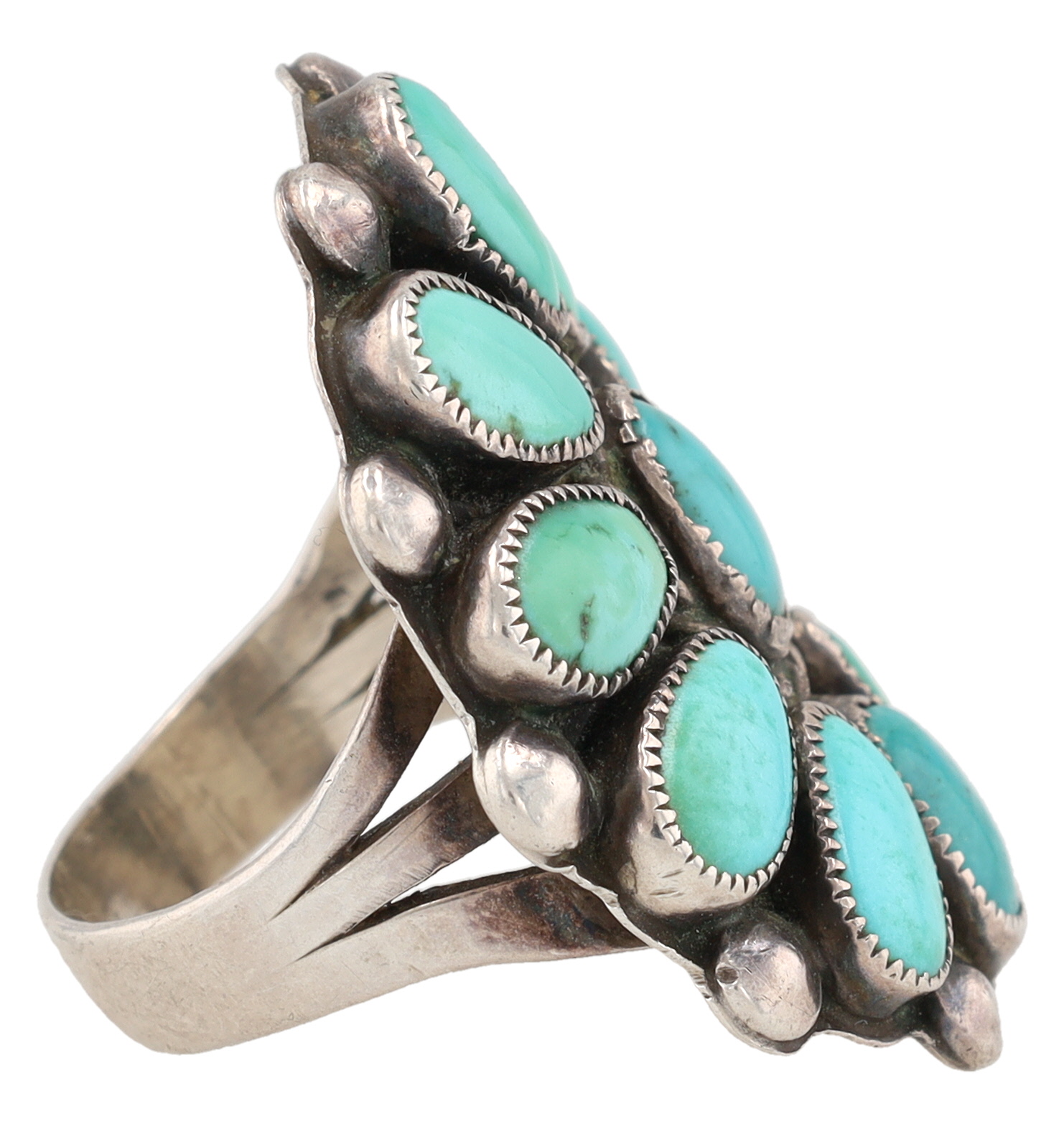Signed Navajo Sterling Turquoise Cluster Ring Sz. 8.75, 9.5g