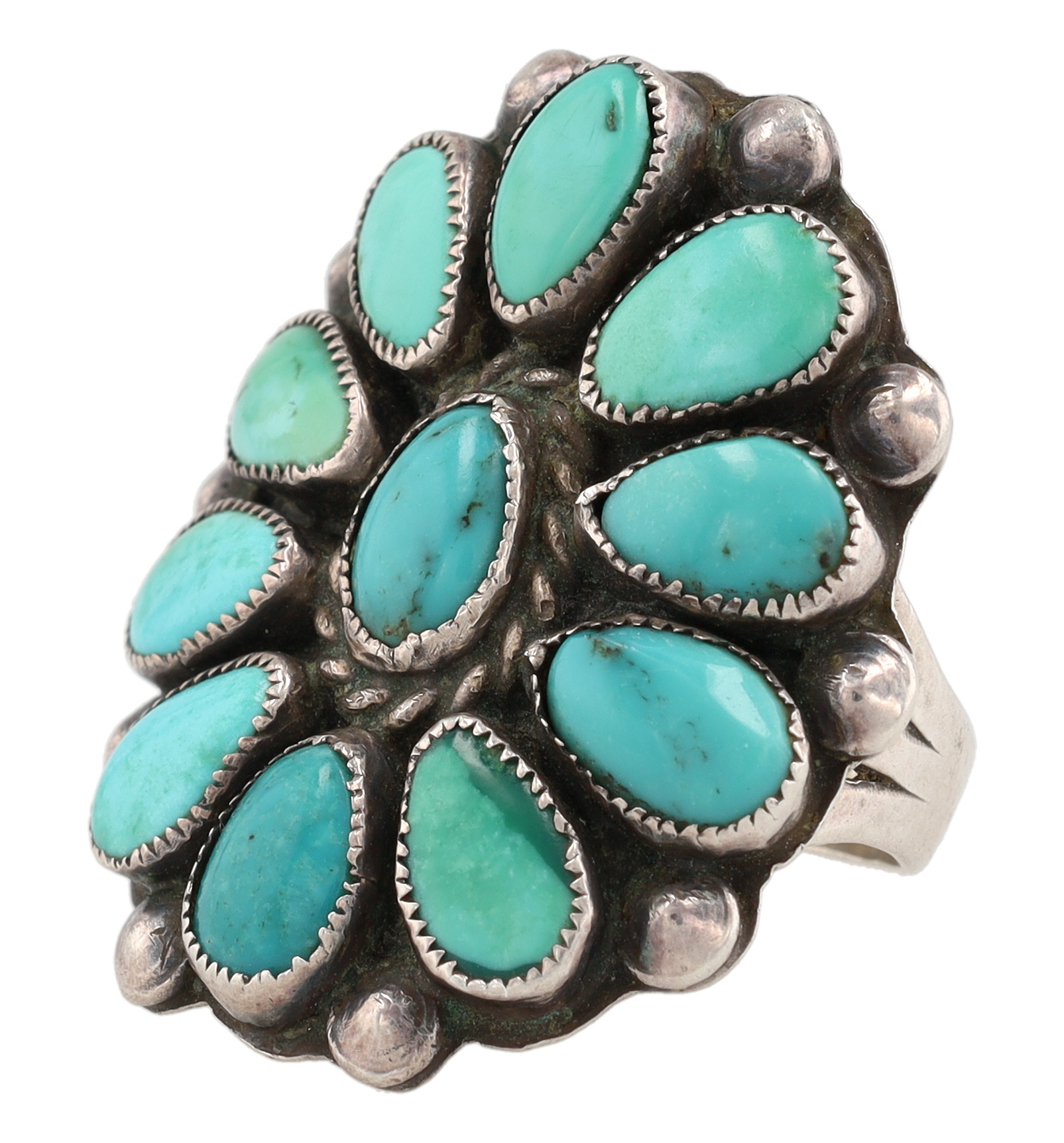 Signed Navajo Sterling Turquoise Cluster Ring Sz. 8.75