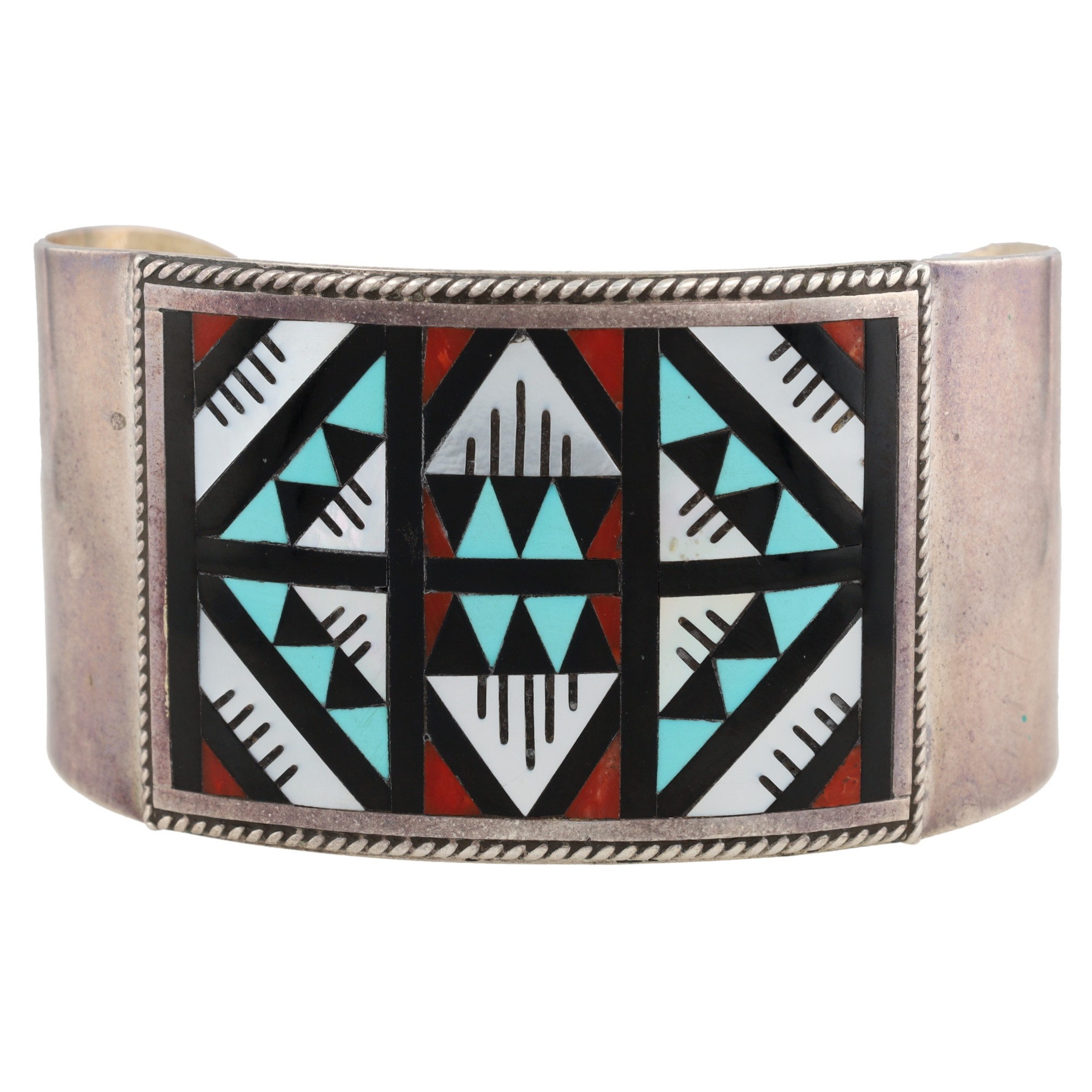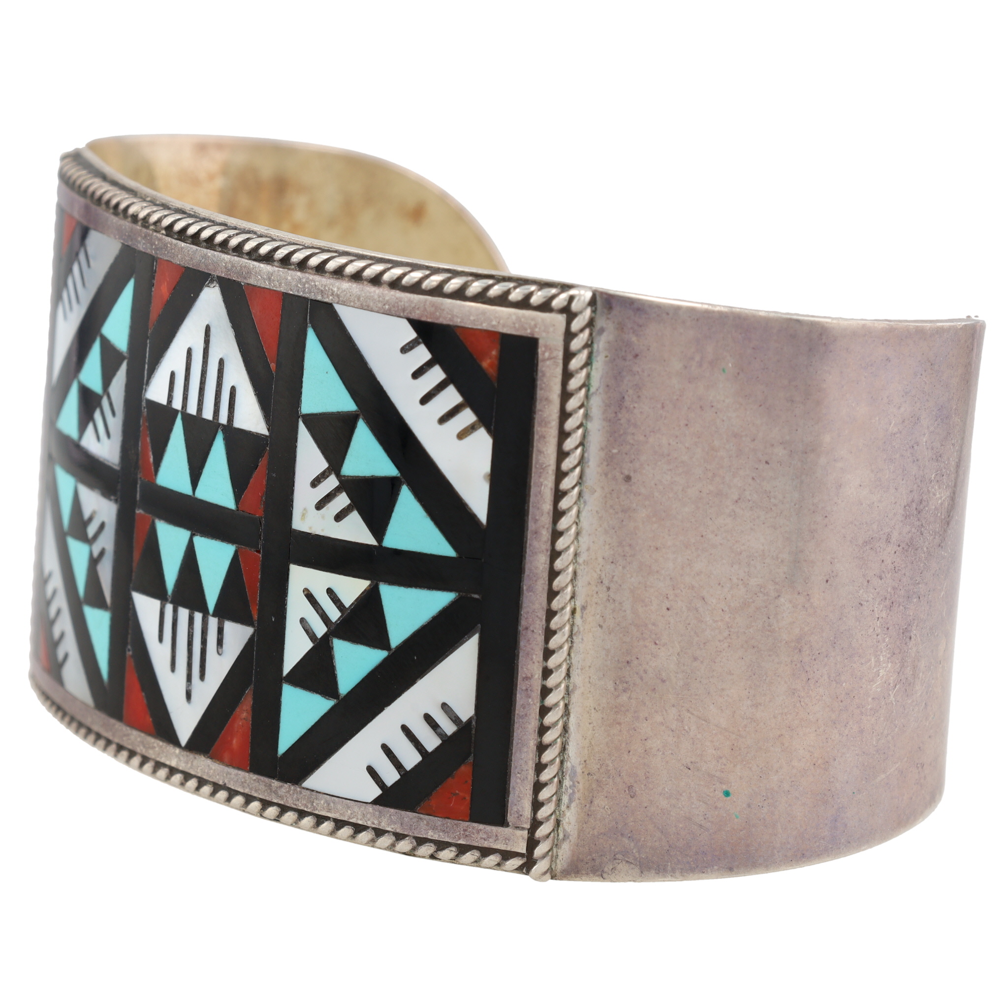 Leander & Lisa Othole Zuni Sterling Multi Stone Inlay Cuff Bracelet 66g