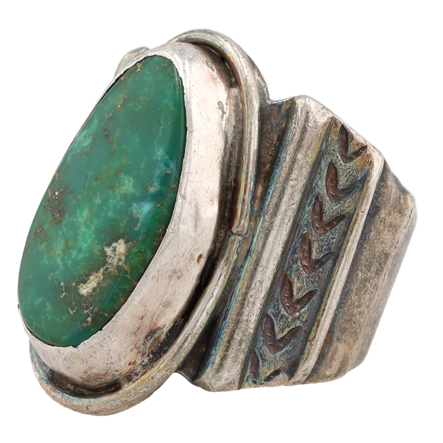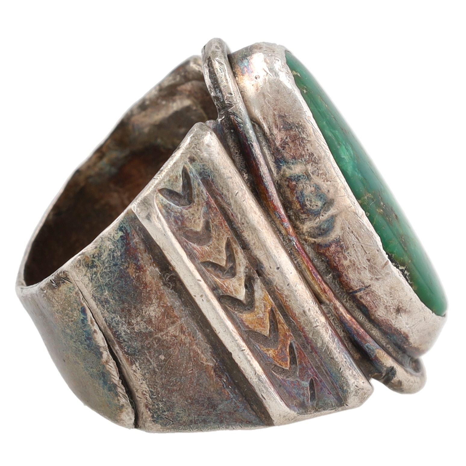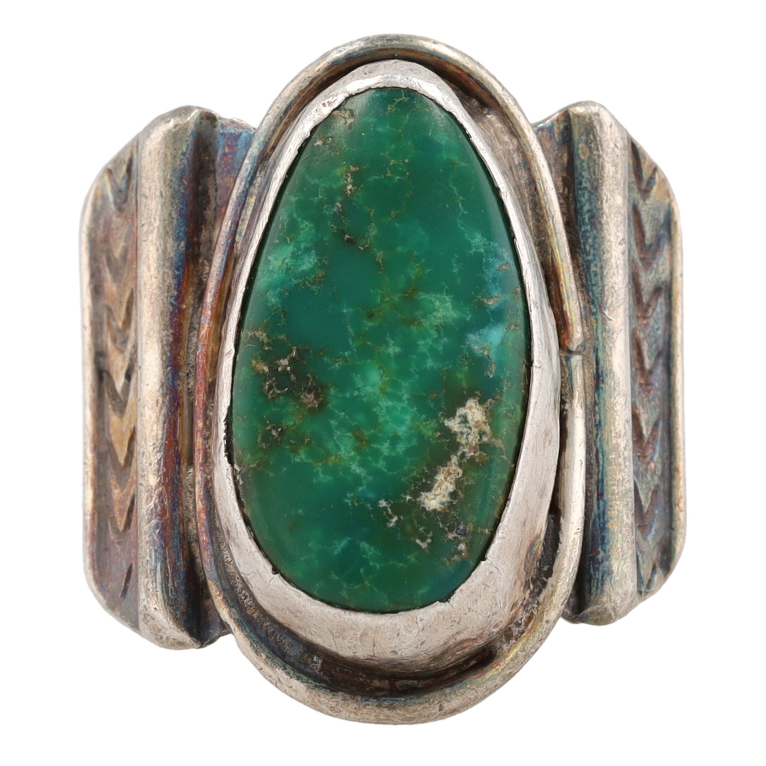Vintage Navajo Sterling Green Turquoise Ring Sz. 8.5, 12g