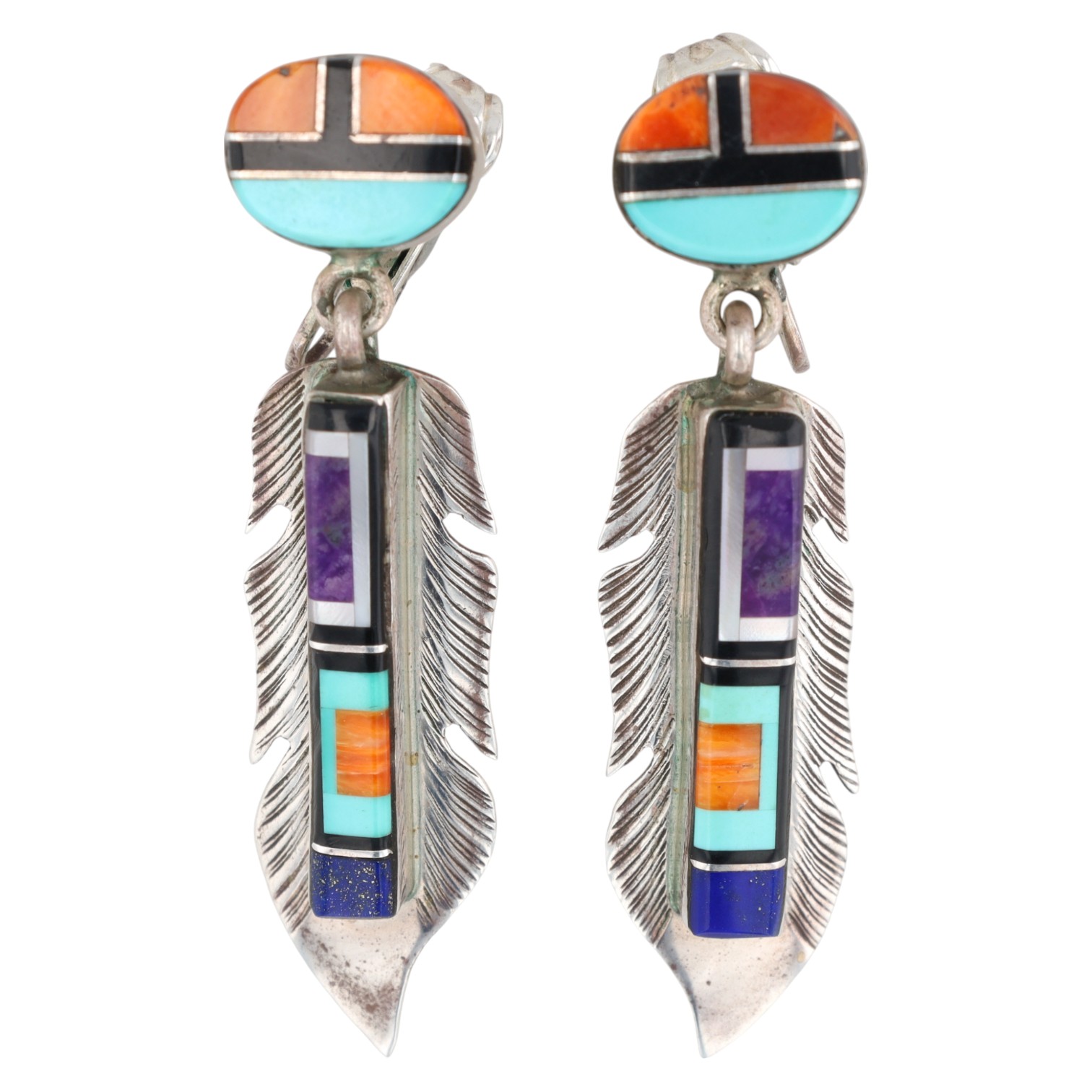 Alvin Yellowhorse Navajo Sterling Multi Stone Inlay Earrings 11g