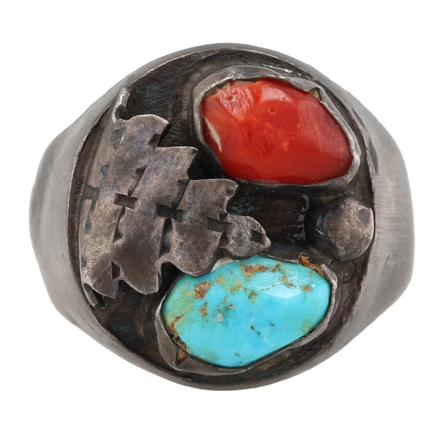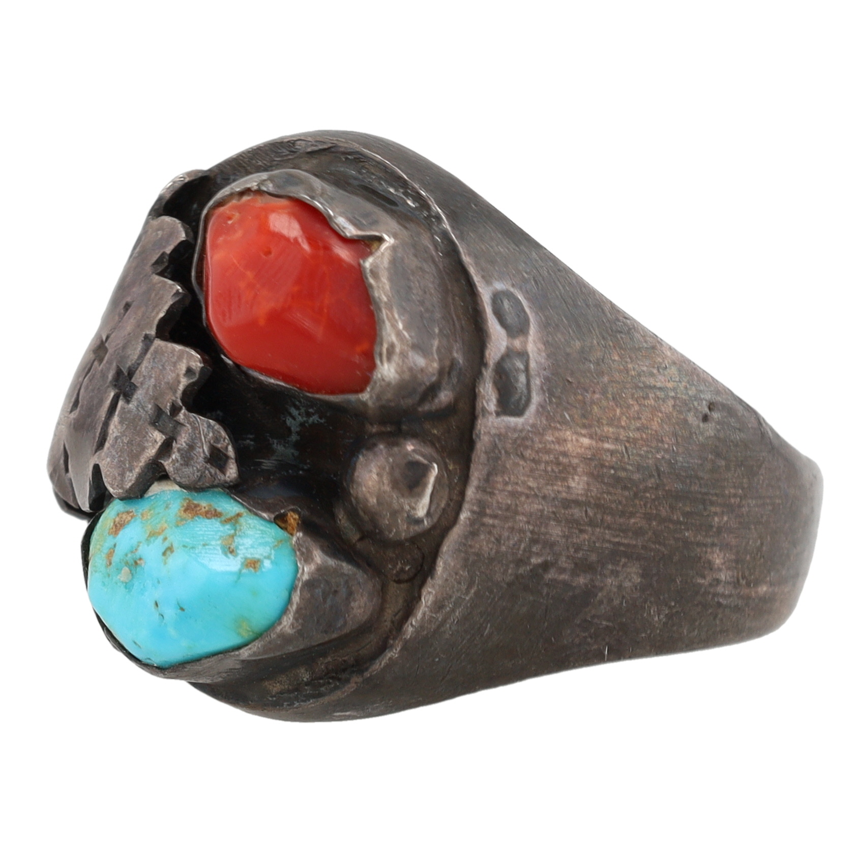 Vintage Navajo Sterling Multi Stone Ring Sz. 11.5, 27g