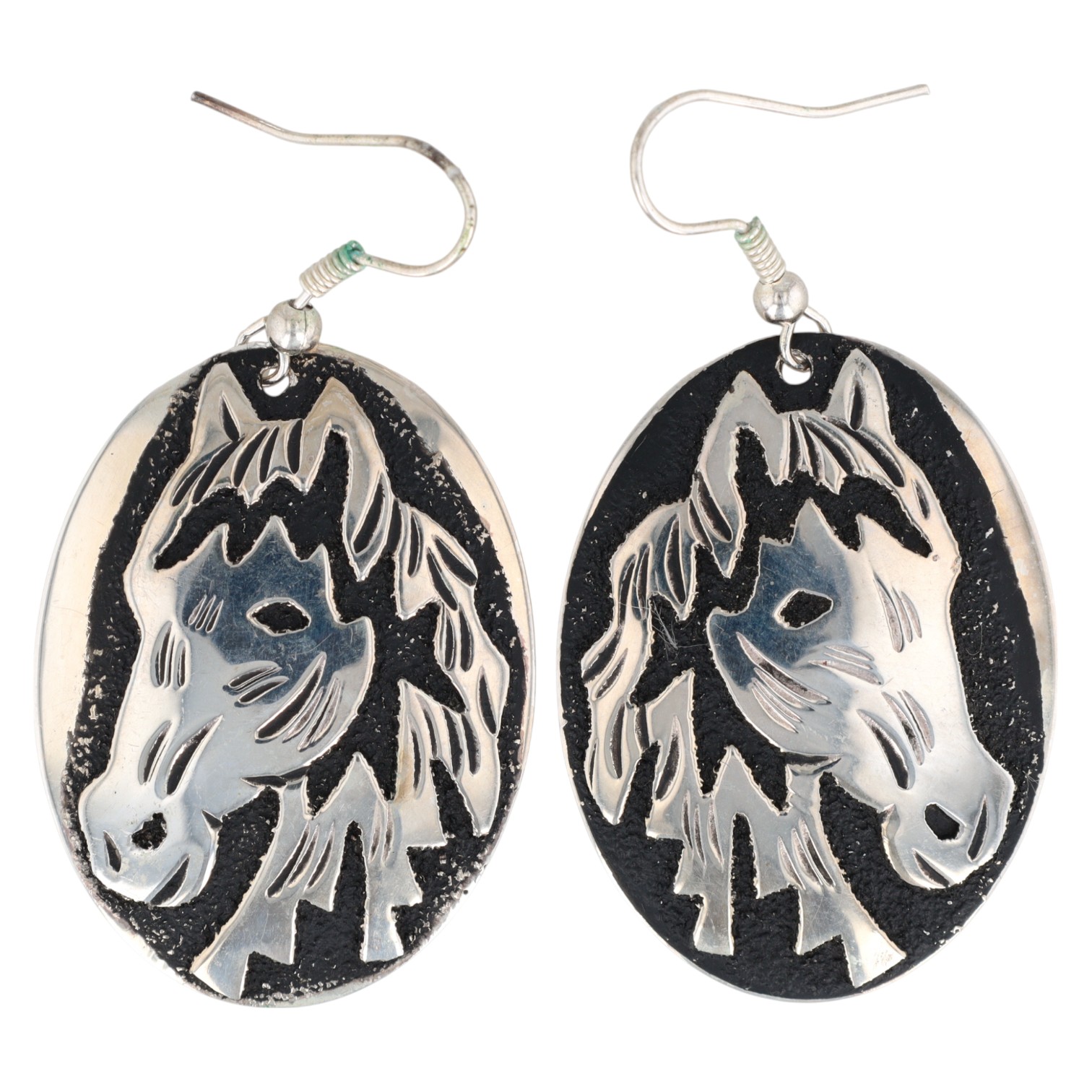 Richard Singer Navajo Sterling Horse Overlay Earrings 11.5g
