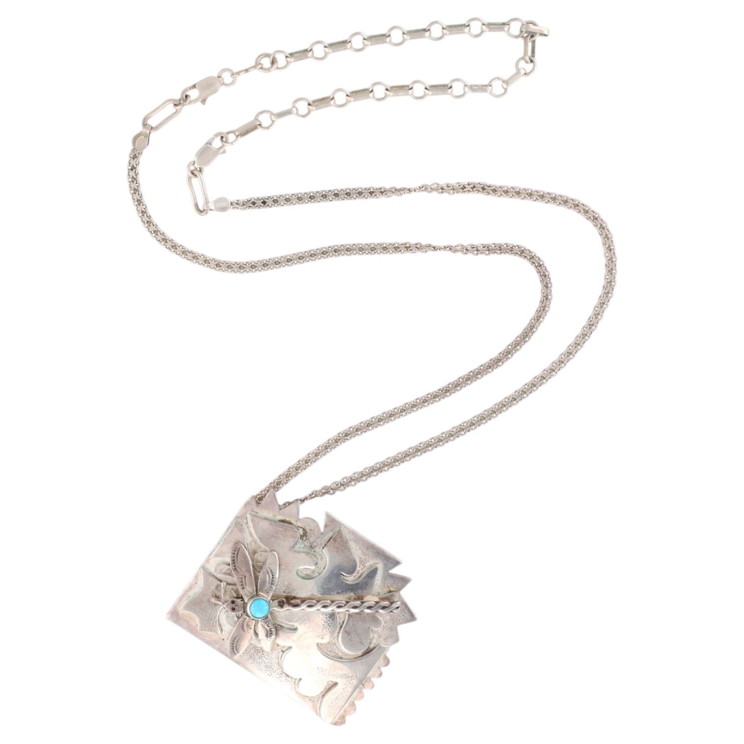 Diane Pearl Gallery Sterling Turquoise Dragonfly Necklace 61g