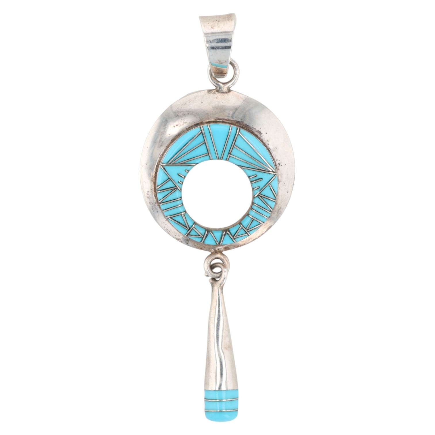 Mary Dayea Navajo Sterling Turquoise Inlay Pendant