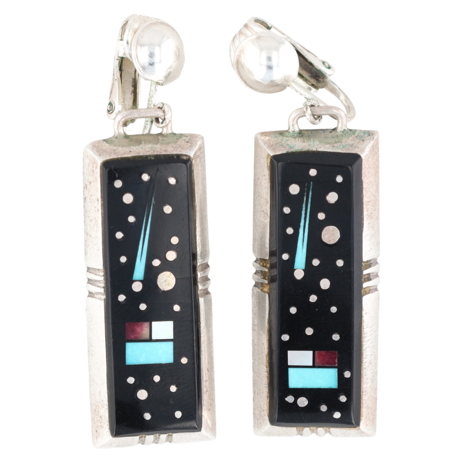 Alvin Yellowhorse Navajo Sterling Multi Stone Inlay Earrings 20g
