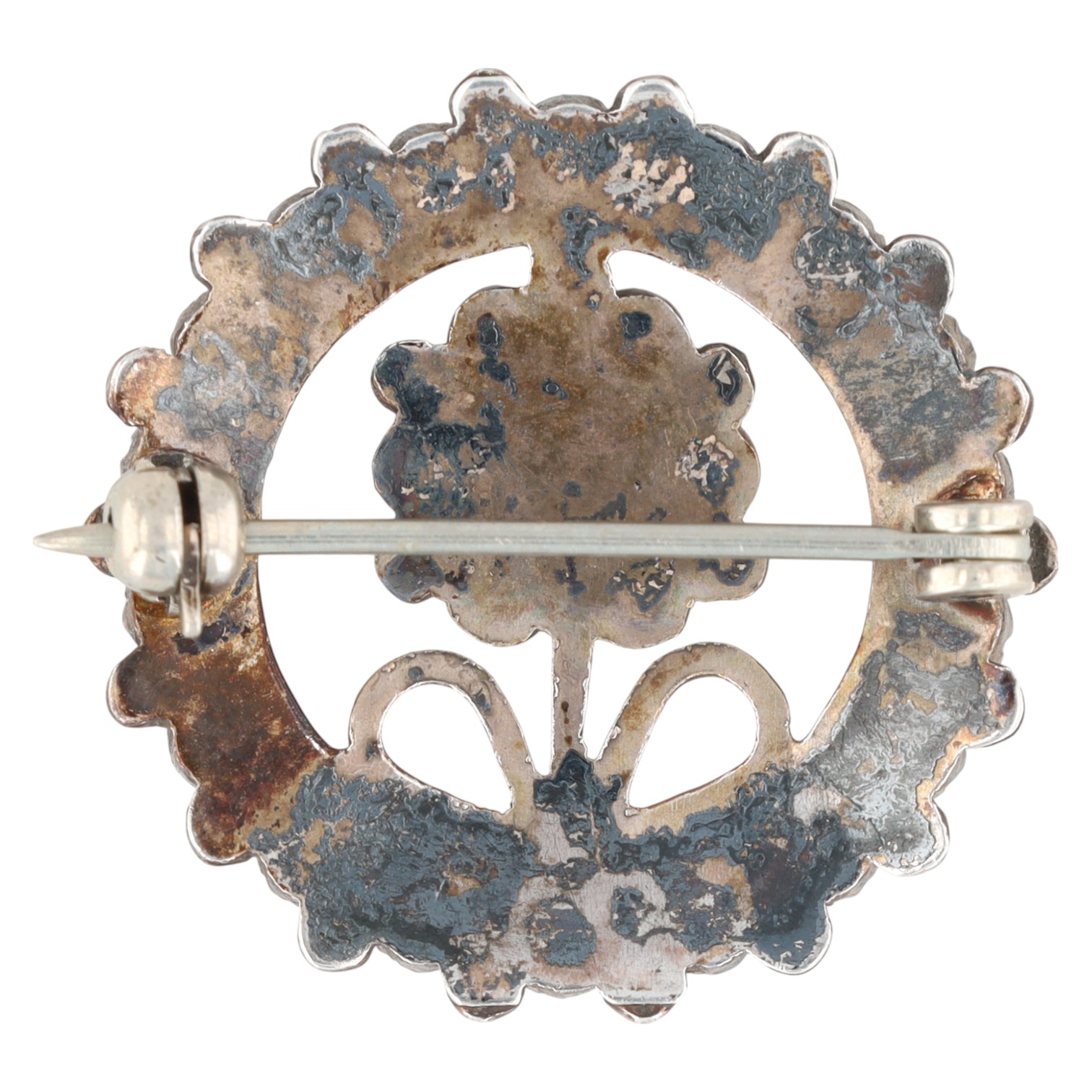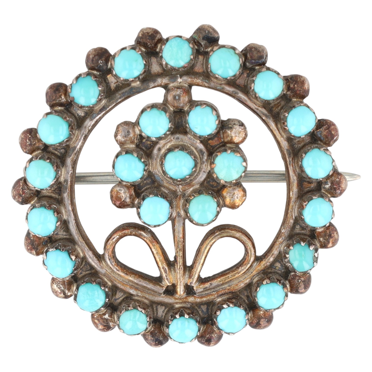 Vintage Zuni Sterling Snake Eye Turquoise Flower Brooch 3.5g