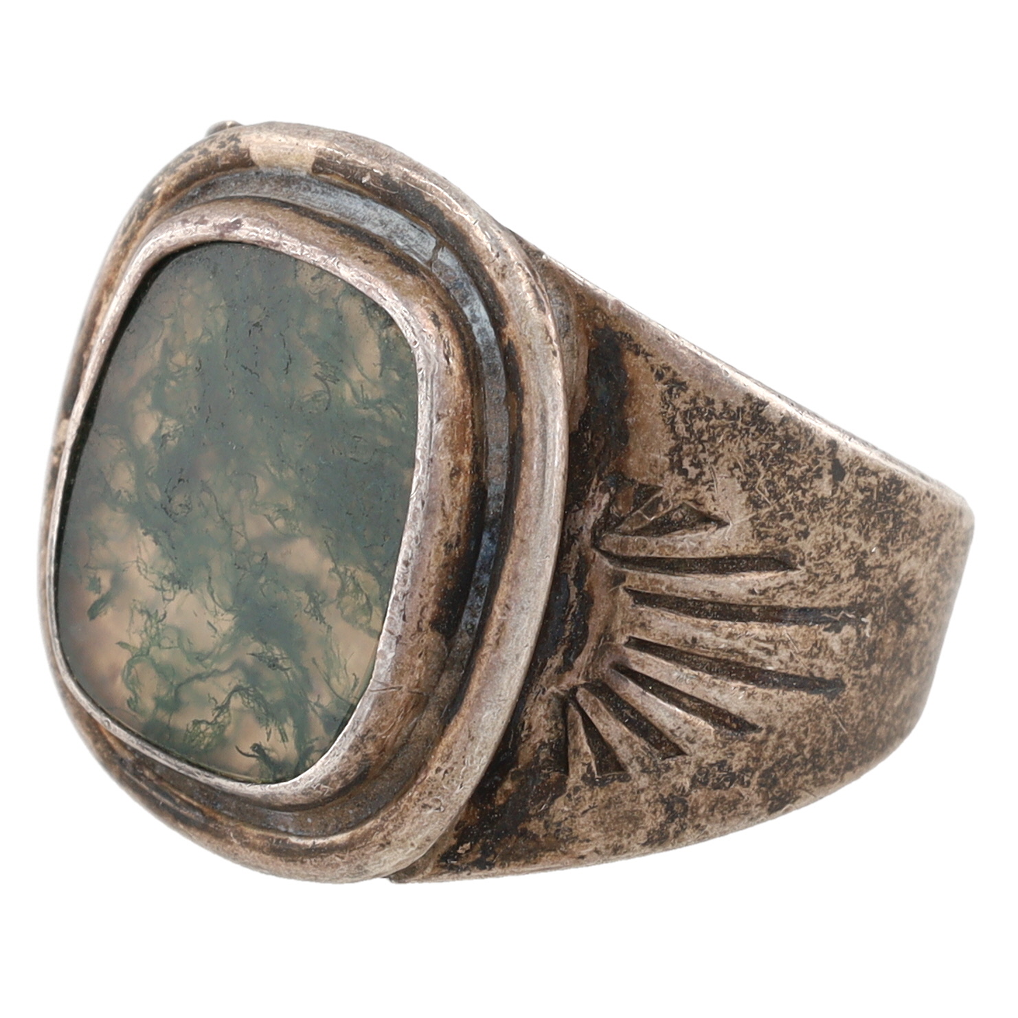 Vintage Navajo Sterling Agate Ring Sz. 11, 9g