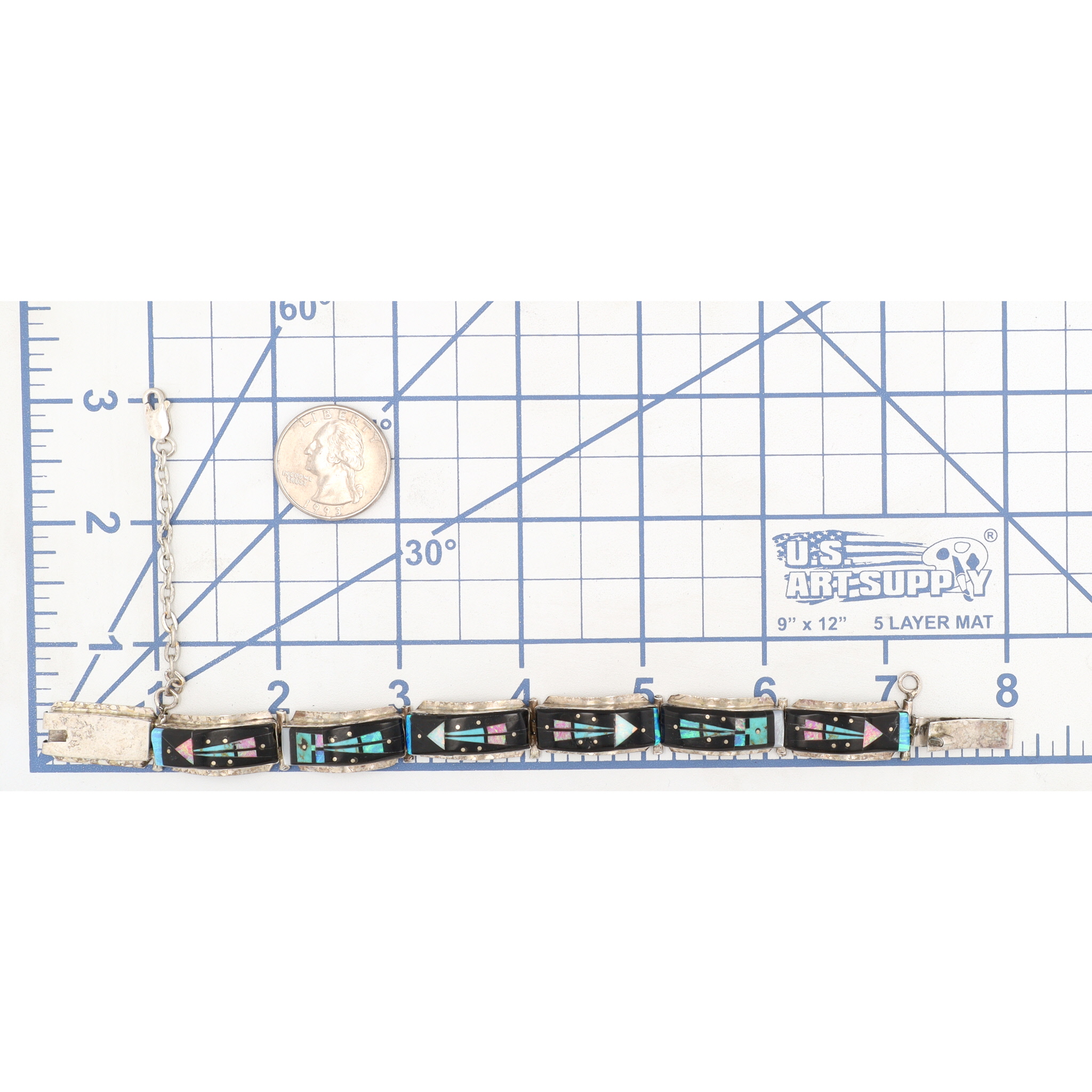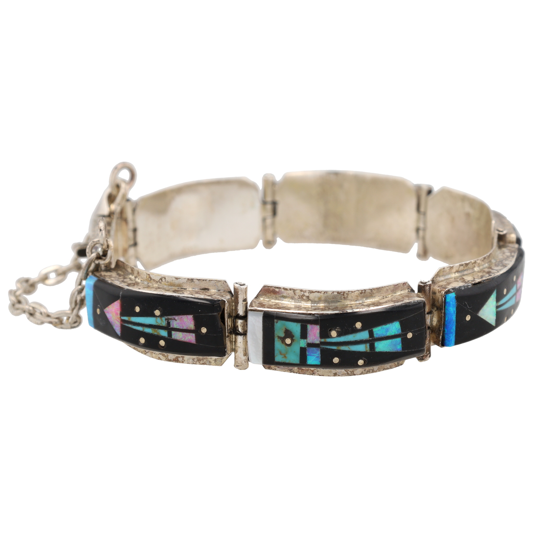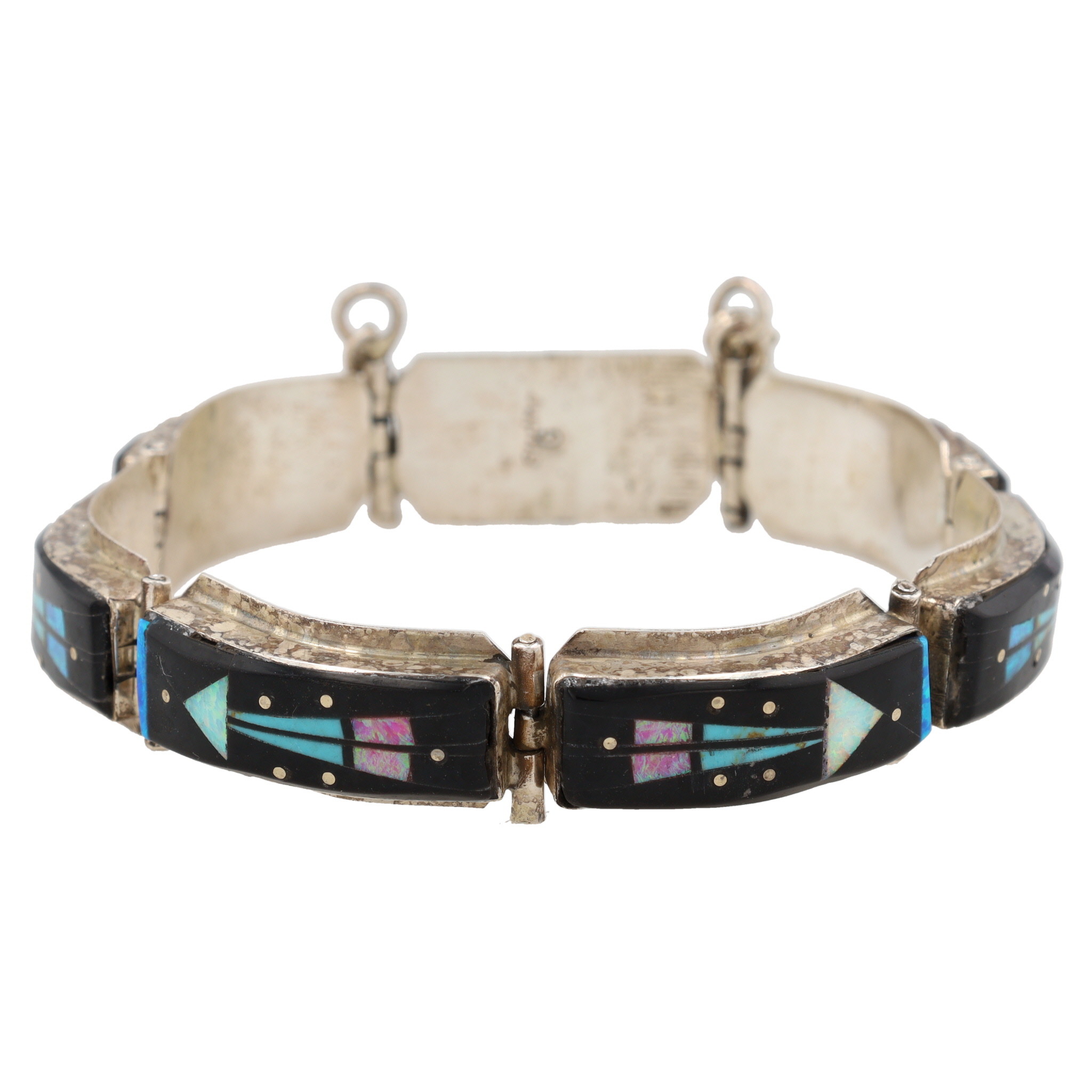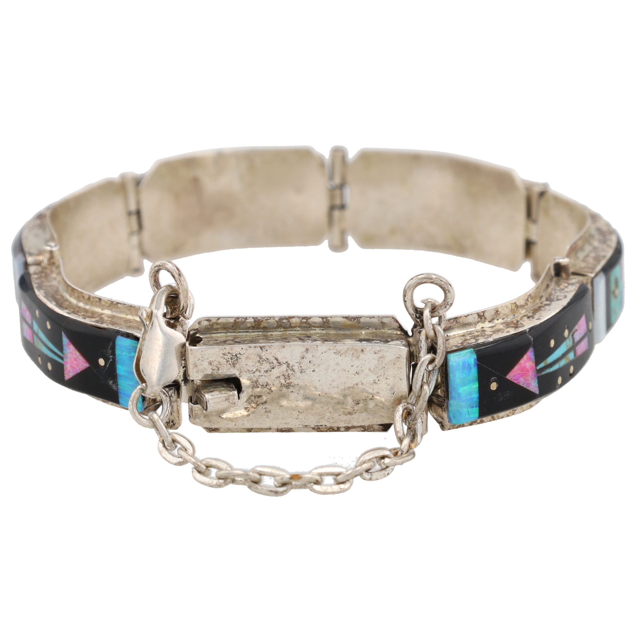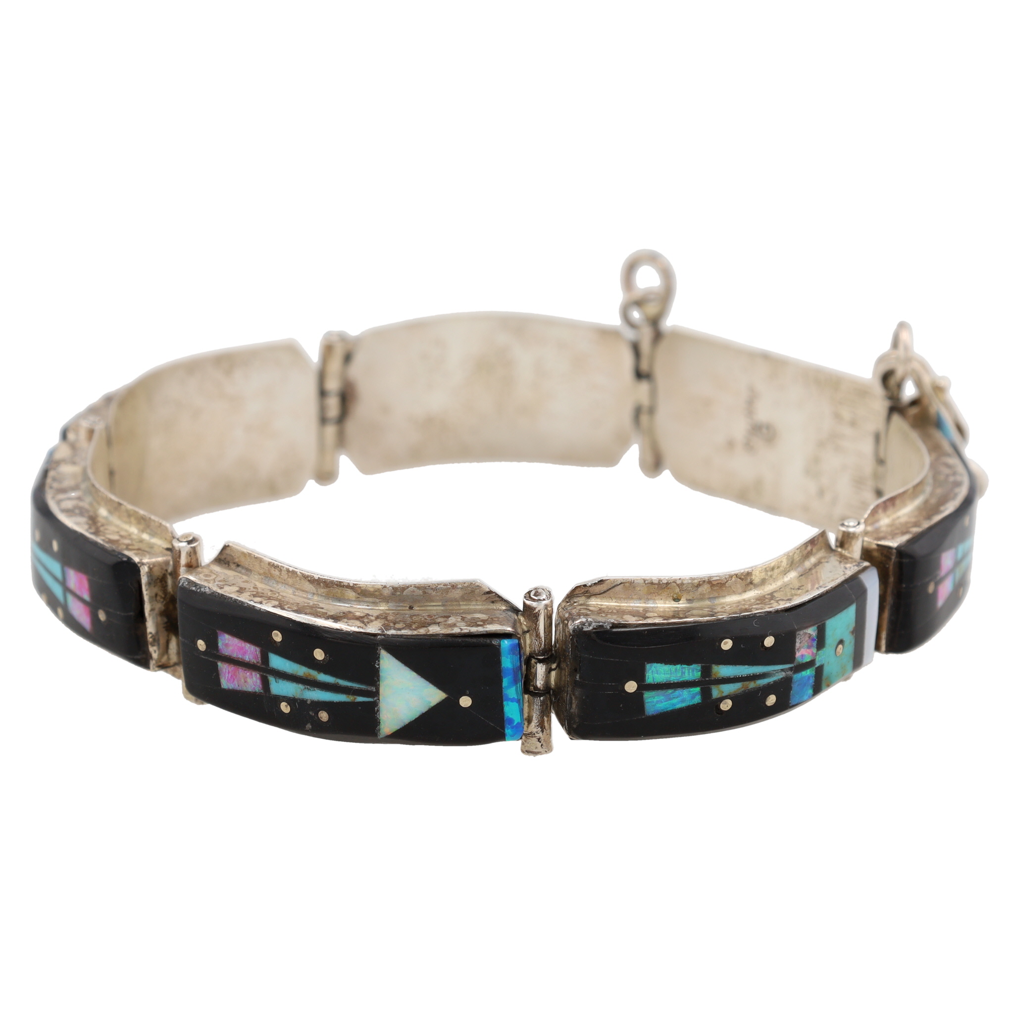 Gilbert Smith Navajo Sterling Multi Stone Inlay Hinge Bracelet 23g