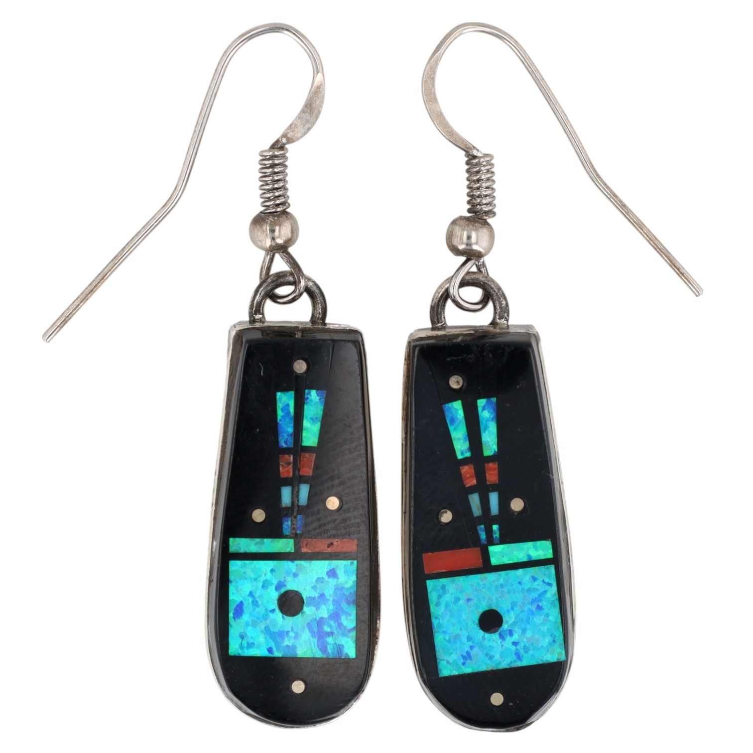 Merle House Navajo Sterling Multi Stone Inlay Earrings 7g
