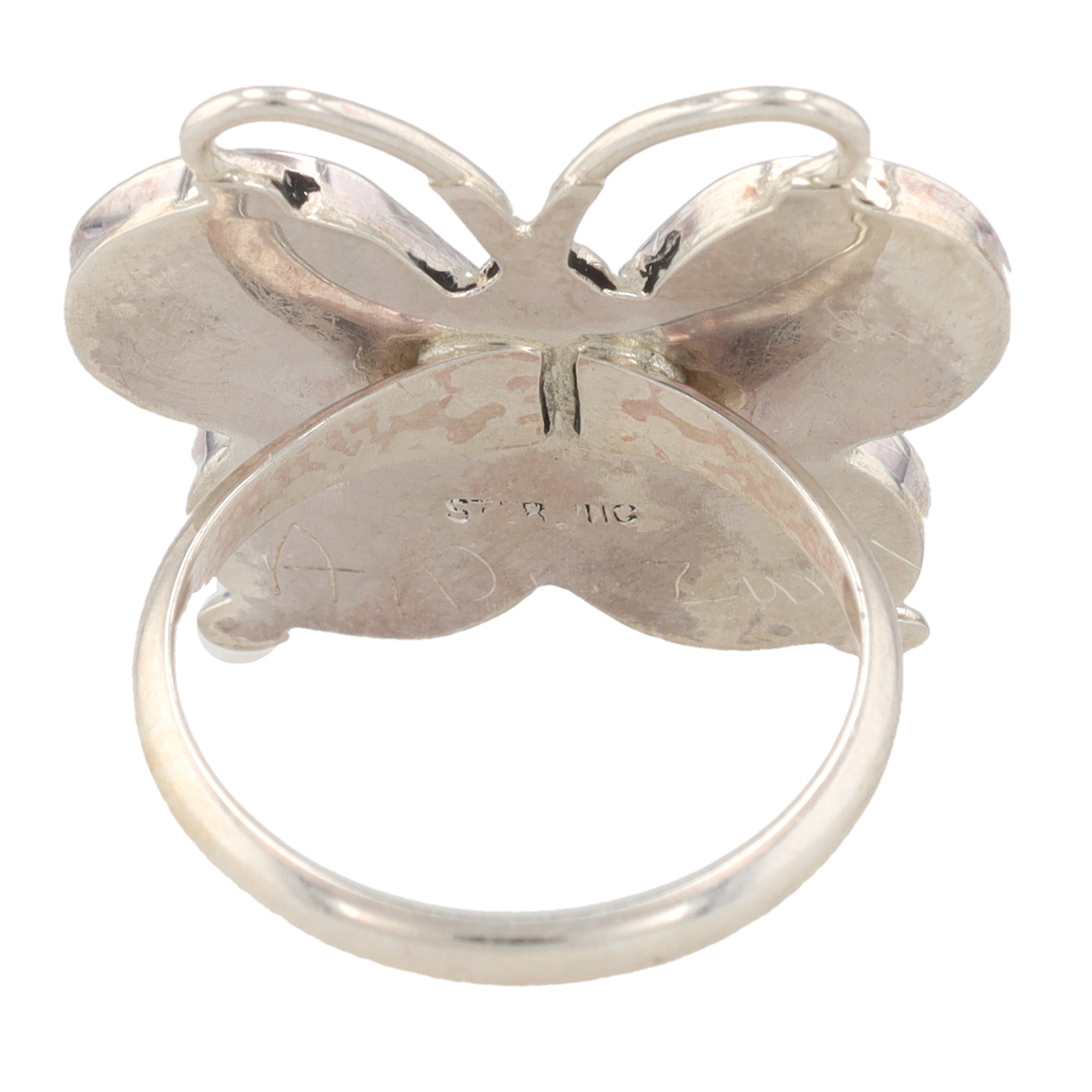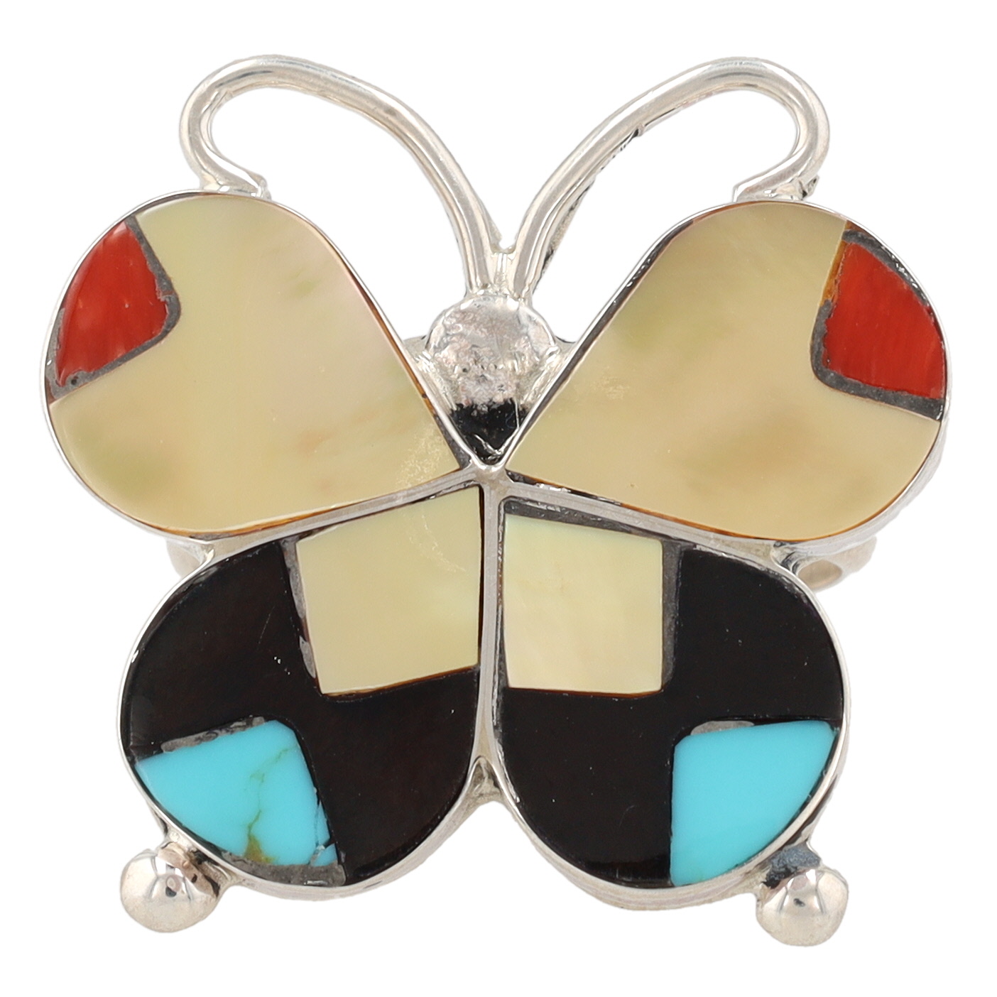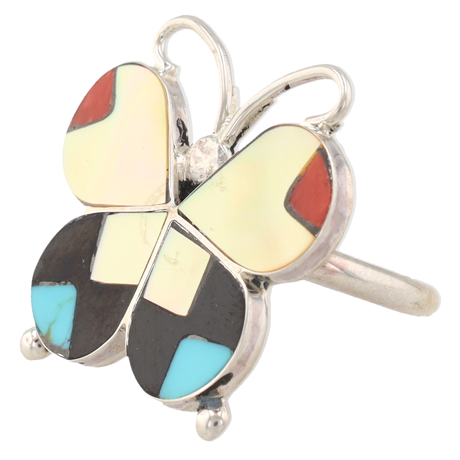 Allison Dishta Zuni Sterling Multi Stone Butterfly Inlay Ring Sz. 7.5, 4.5g