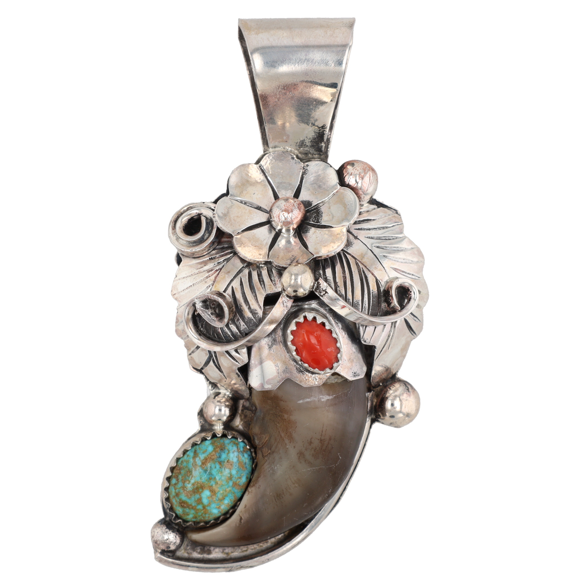 Jerry Thompson Navajo Sterling Multi Stone Claw Blossom Pendant 14g