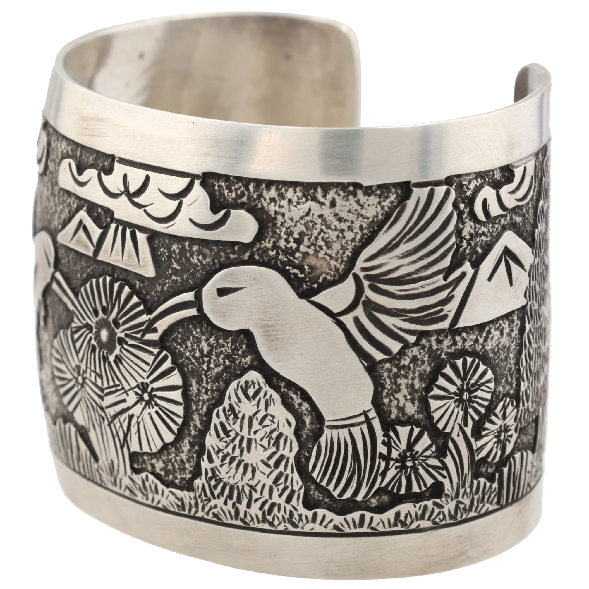 Elaine Becenti Navajo Plain Silver Storyteller Bracelet 89.5g