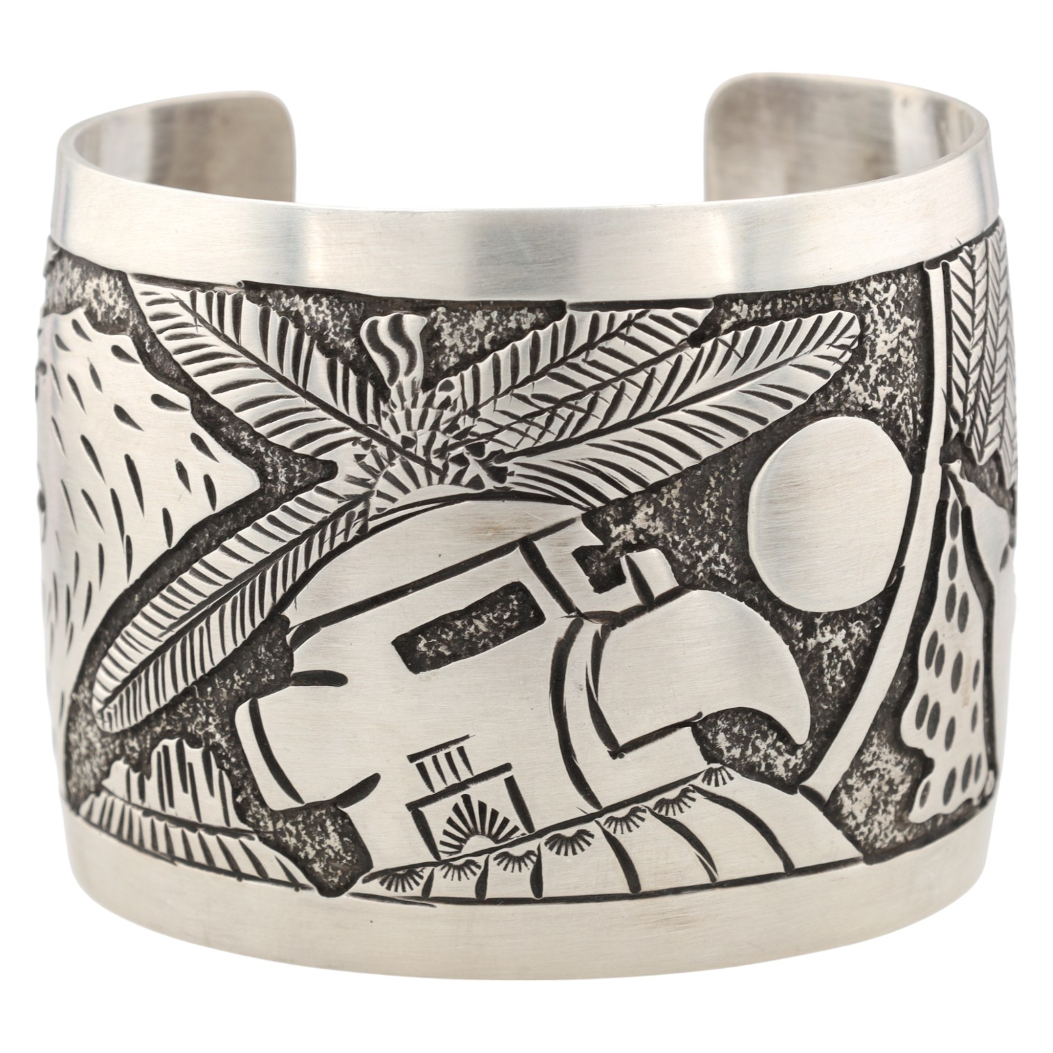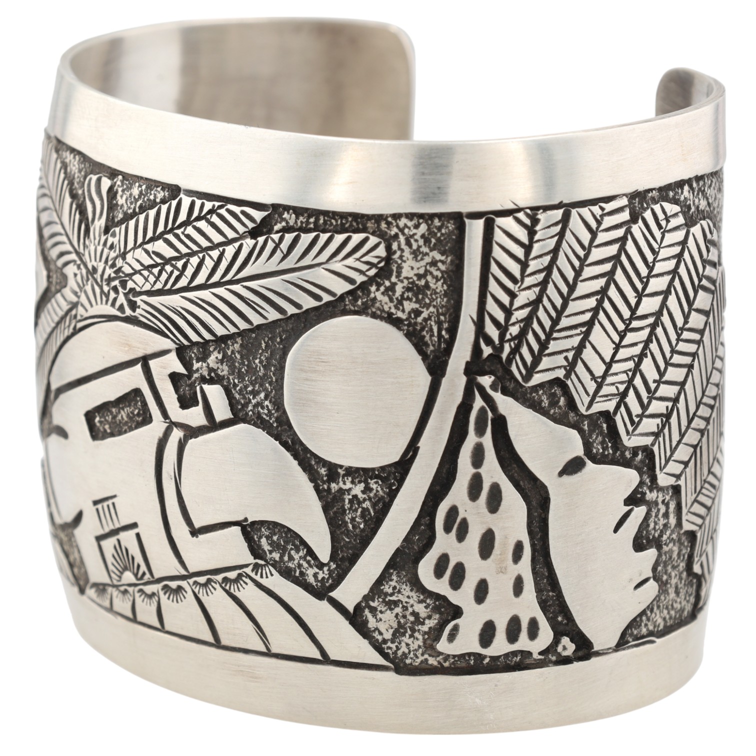 Elaine Becenti Navajo Sterling Storyteller Cuff Bracelet 90g