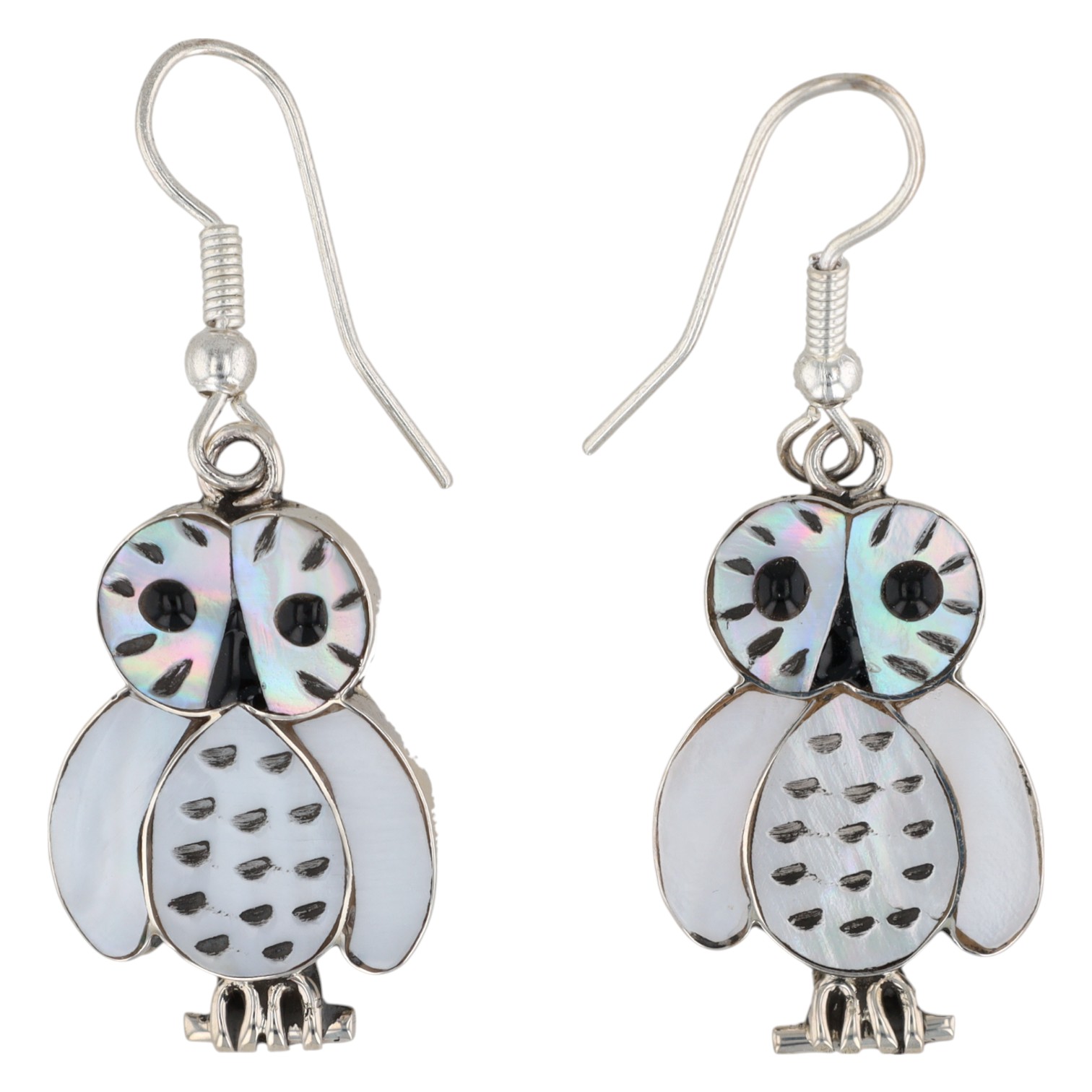 Reginda Kallest Zuni Sterling Multi Stone Owl Inlay Earrings