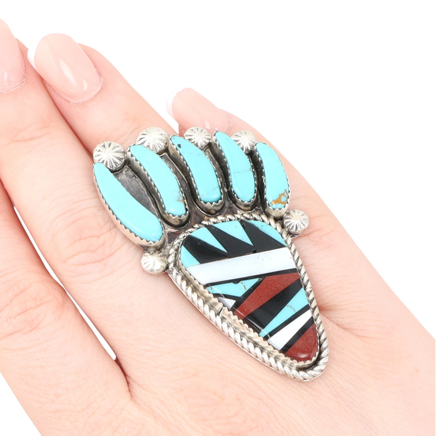 Ben Livingston Navajo Sterling Multi Stone Paw Ring Sz. 9, 26g