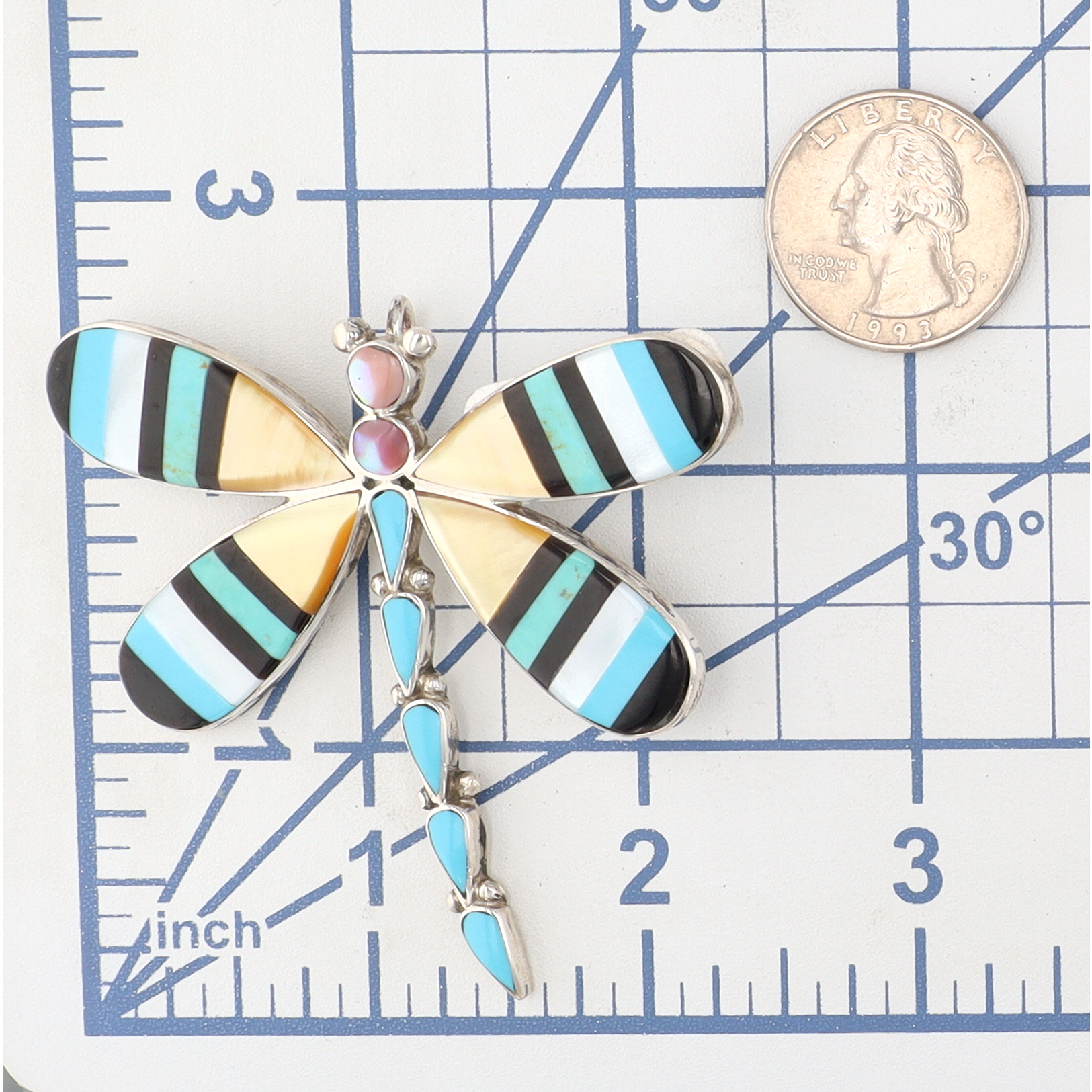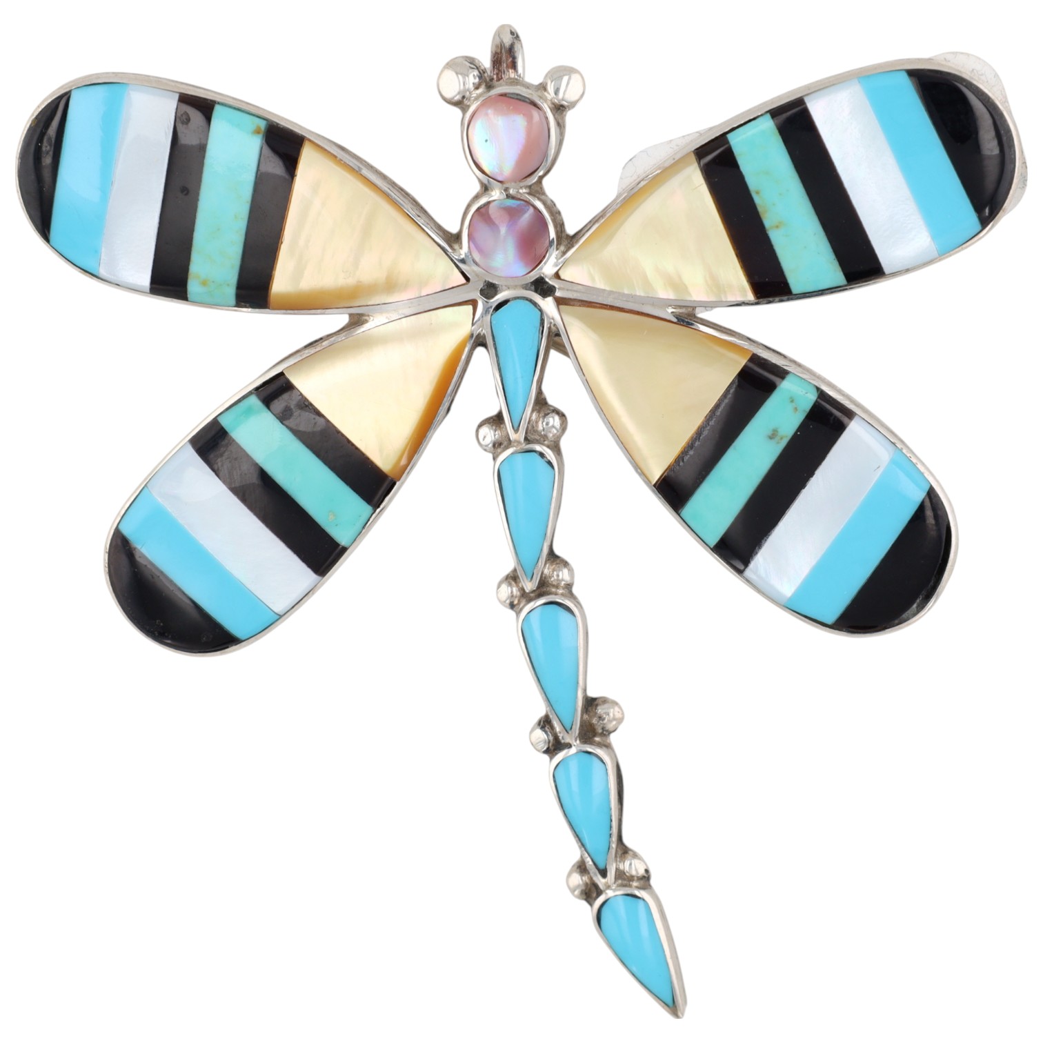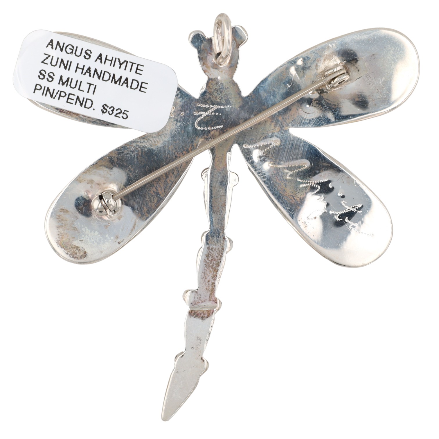 Angus Ahiyite Zuni Sterling Multi Stone Dragonfly Inlay Brooch Pendant 16g