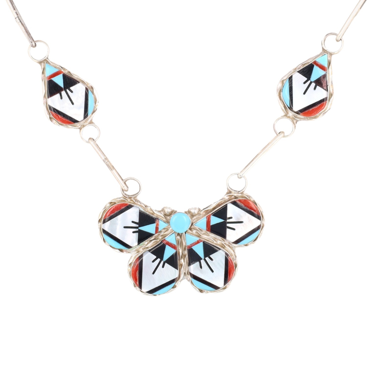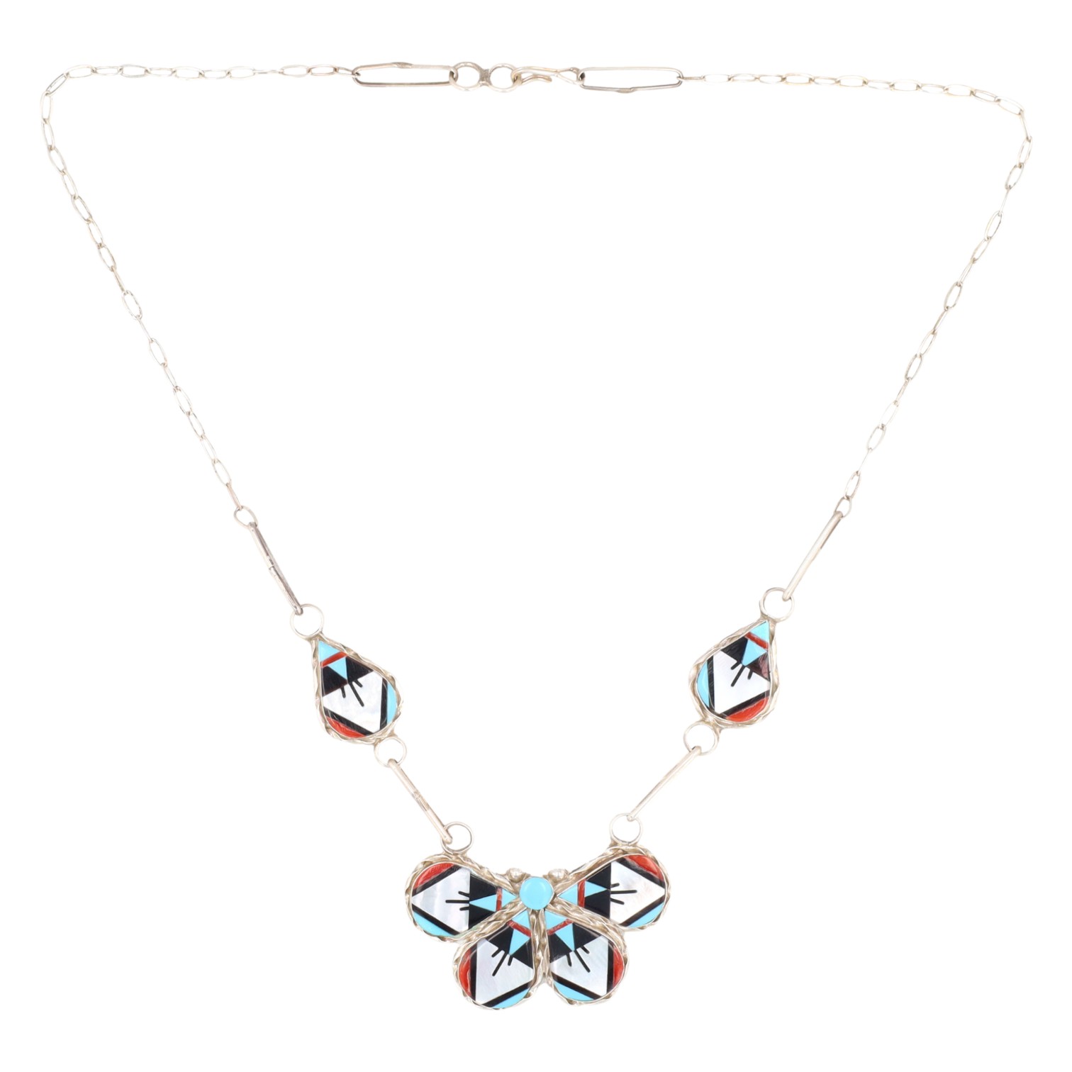 Wilson & Carol Niha Zuni Sterling Multi Stone Inlay Necklace 18g