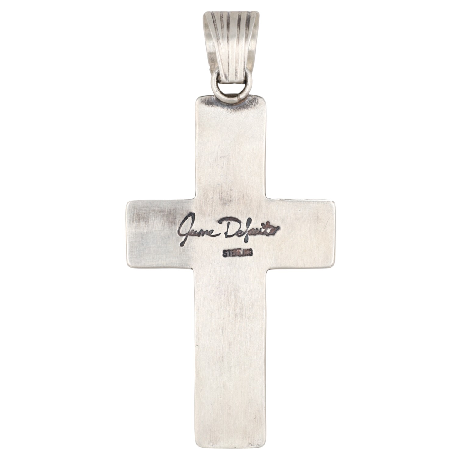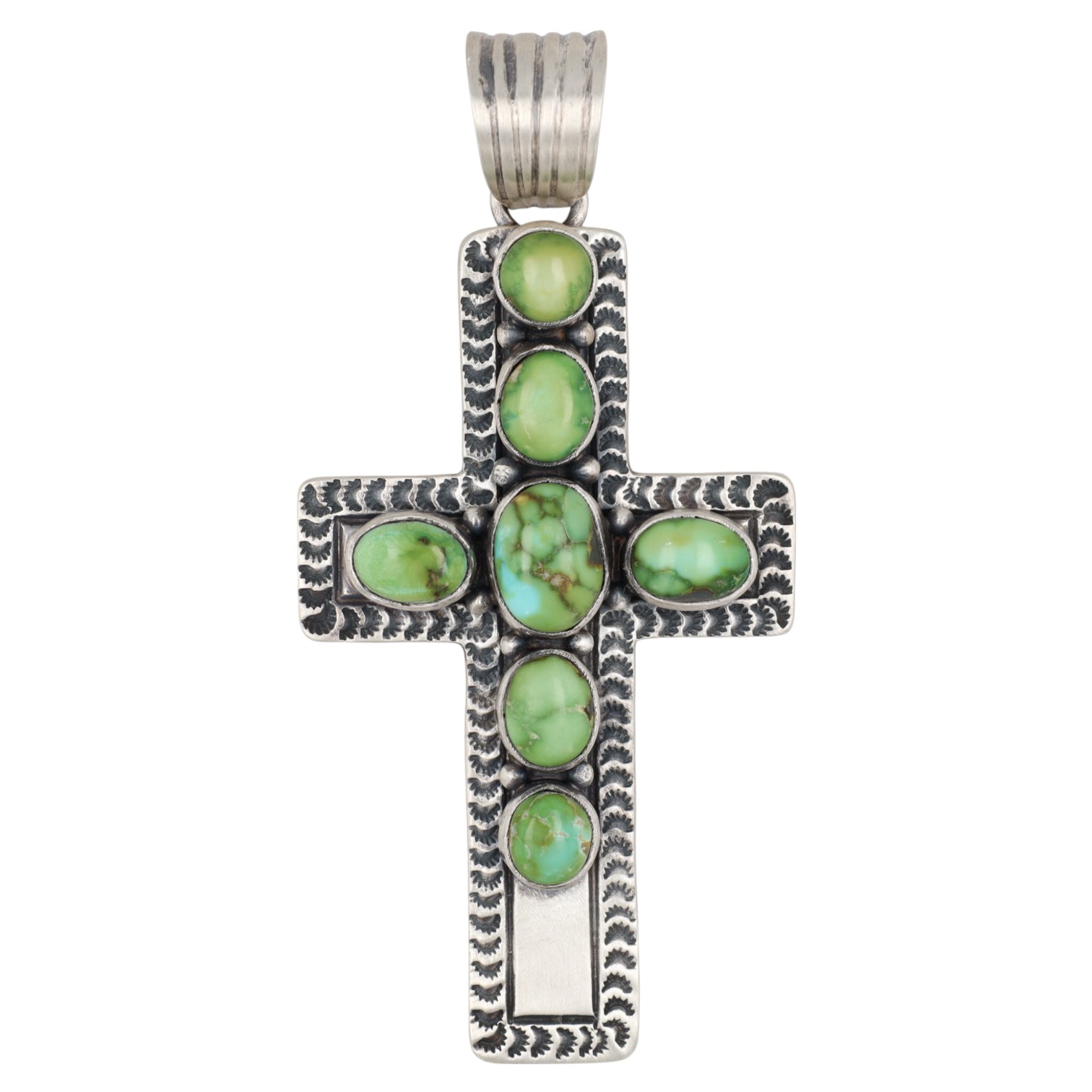 June Delgarito Navajo Sterling Palomino Turquoise Cross Pendant 33g