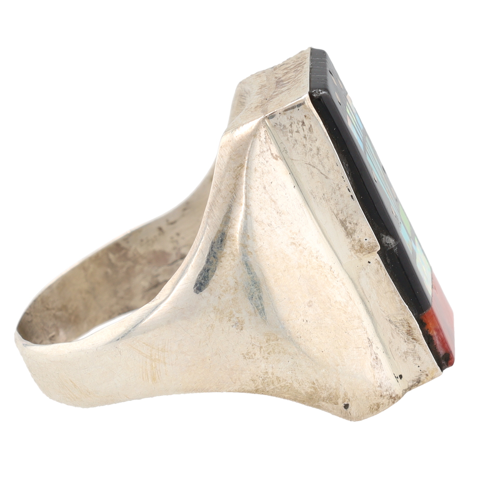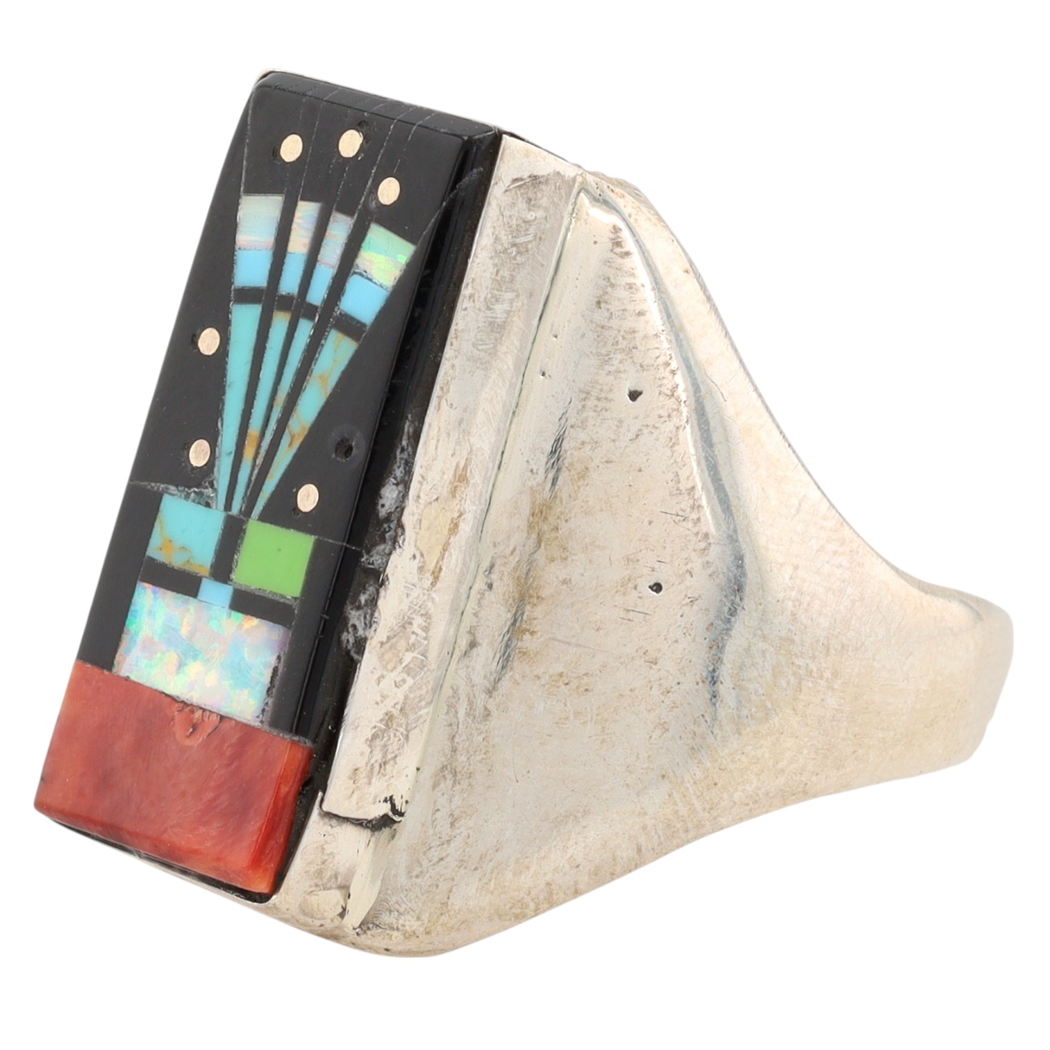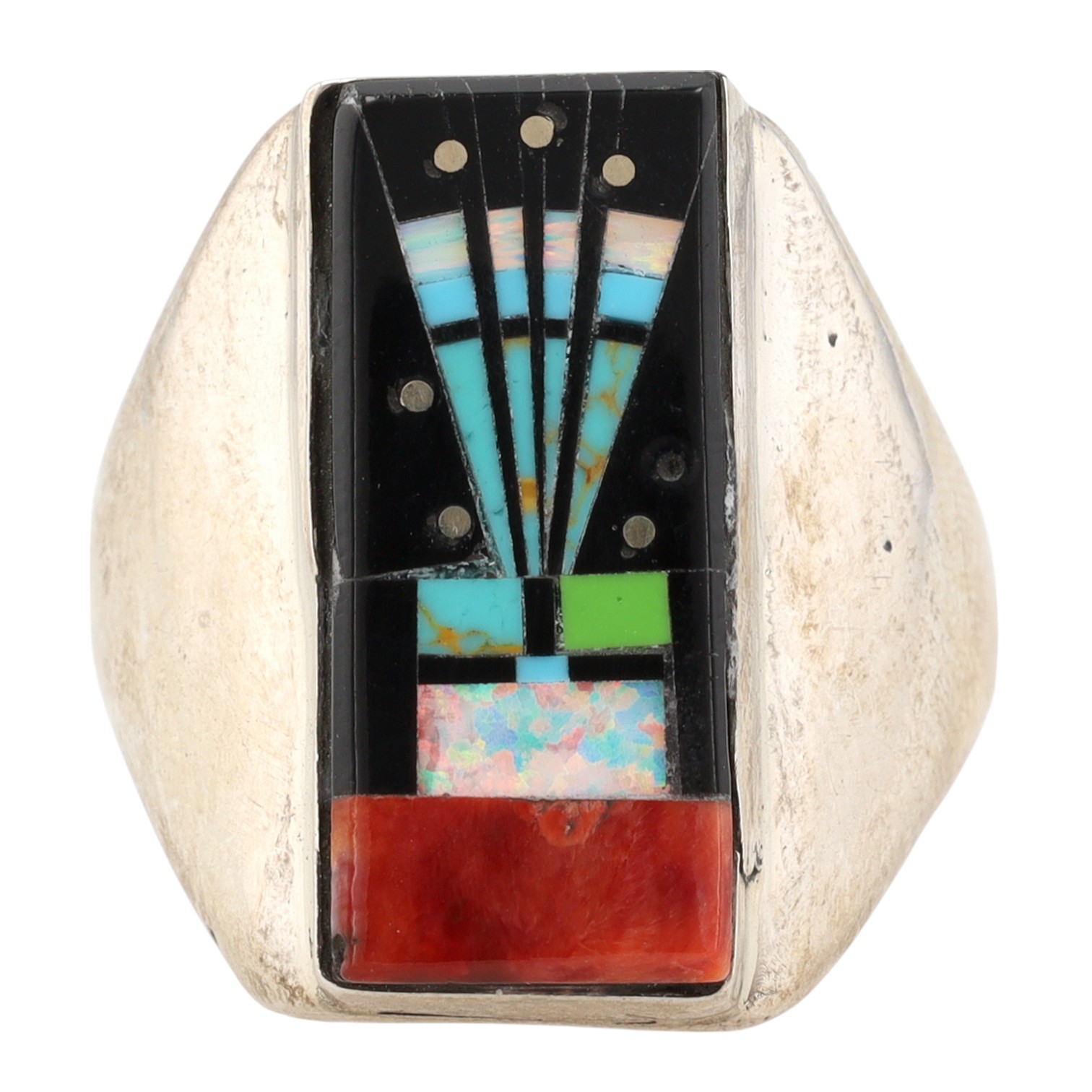Gilbert Smith Navajo Sterling Multi Stone Inlay Ring Sz. 14, 17g