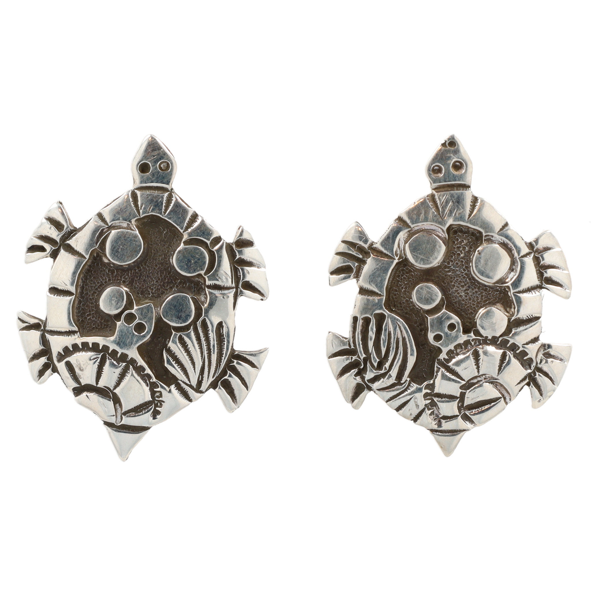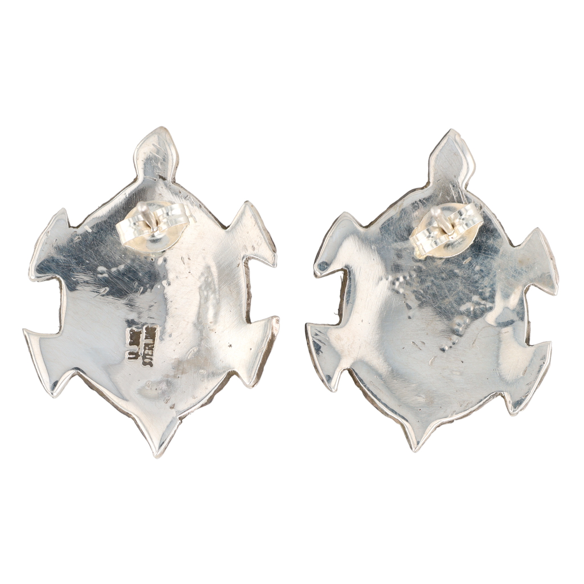 Lloyd Becenti Navajo Plain Silver Turtle Overlay Earrings 8g