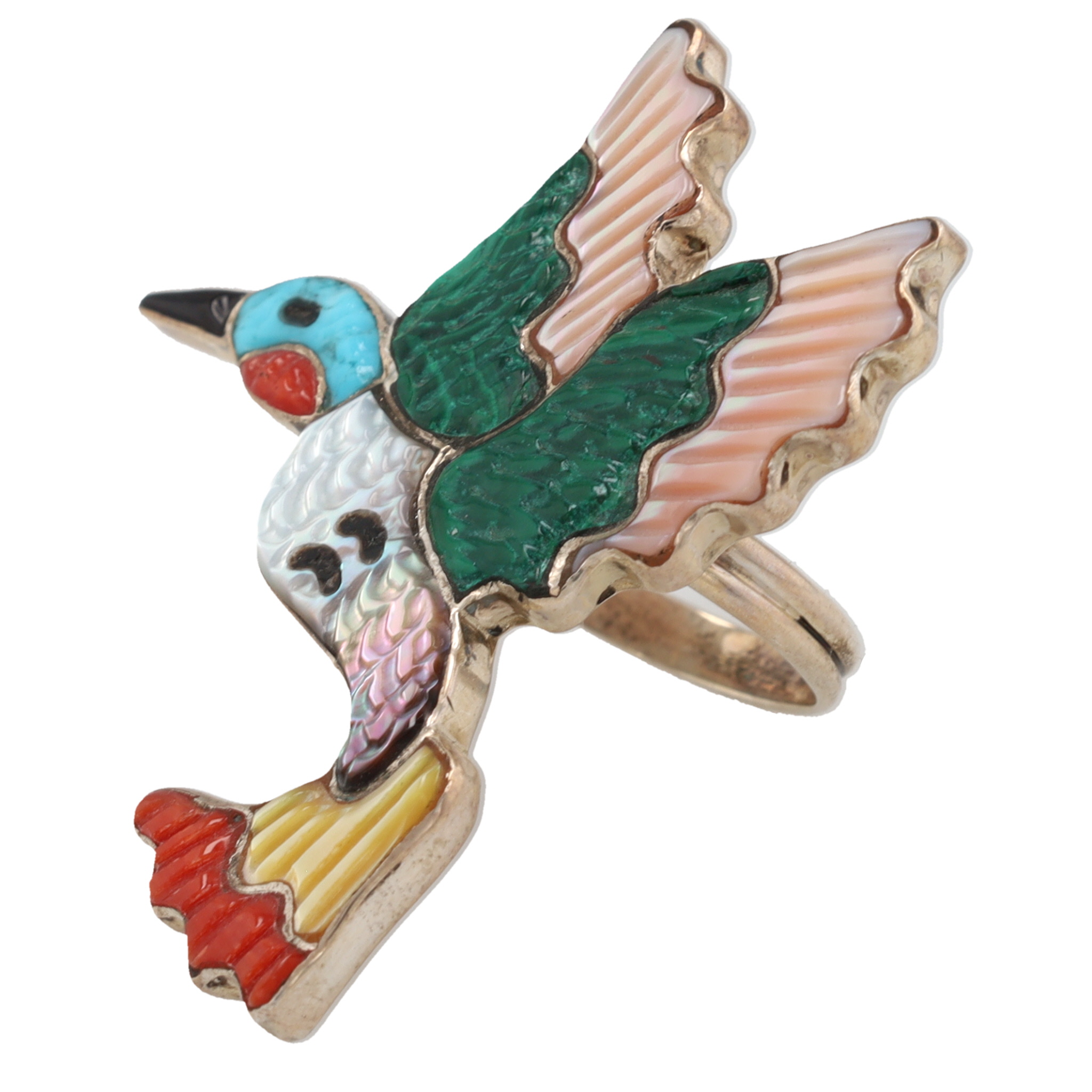 Tamara Pinto Zuni Sterling Multi Stone Hummingbird Ring Sz. 8, 8g