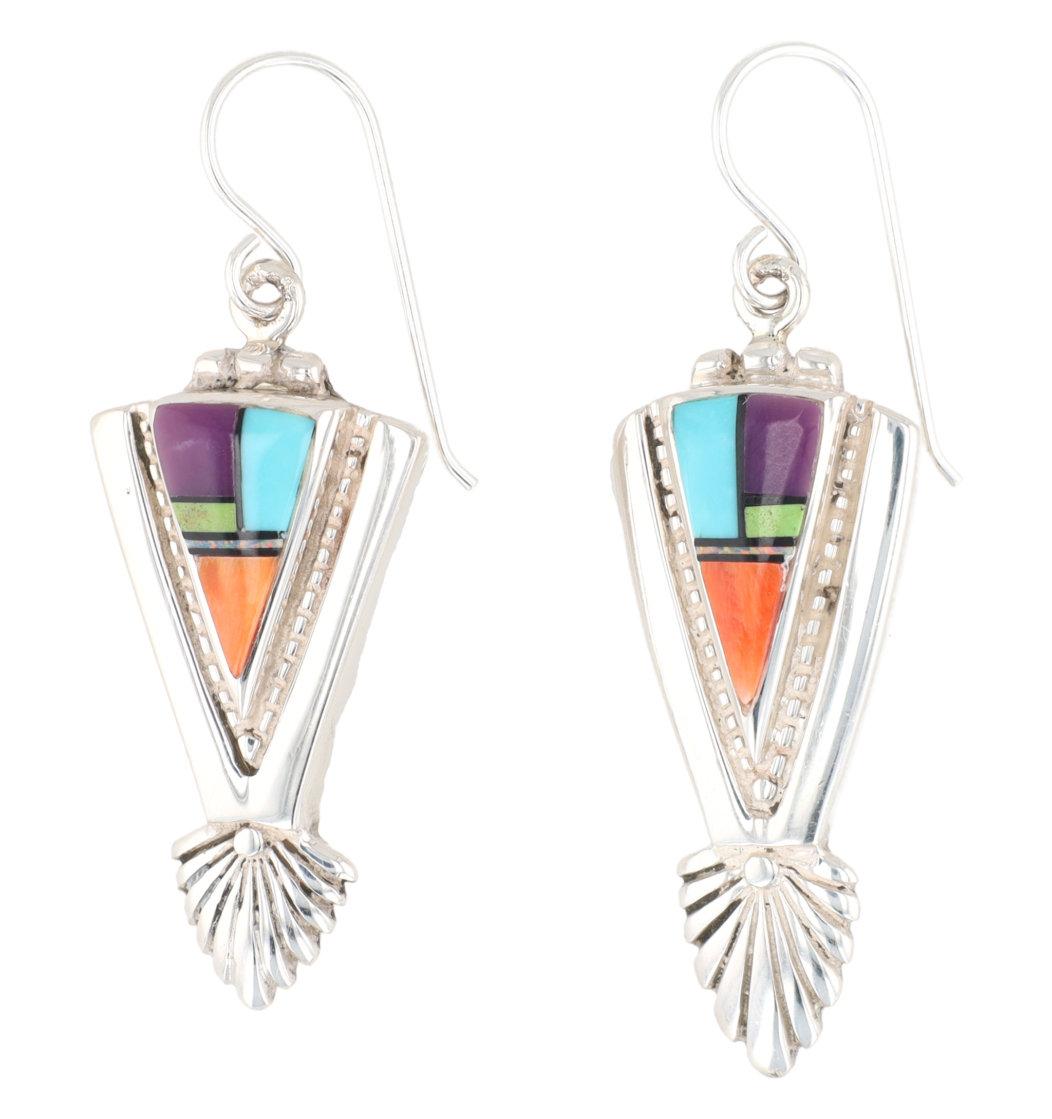 Benson Shorty Navajo Sterling Multi Stone Inlay Earrings 12g