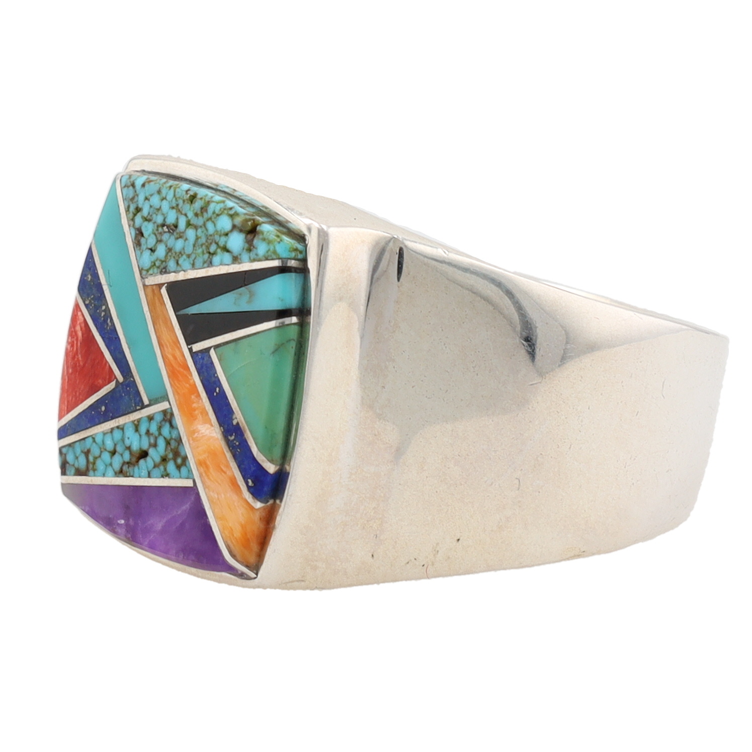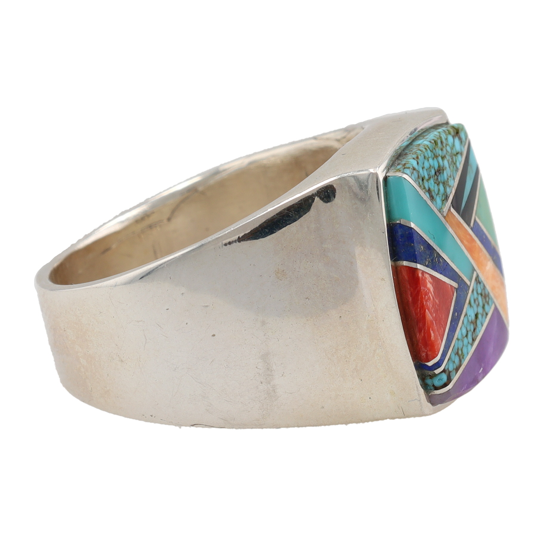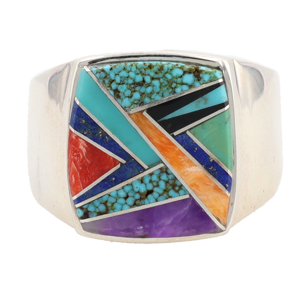Evangeline David Navajo Sterling Multi Stone Inlay Ring Sz. 13.5, 21g