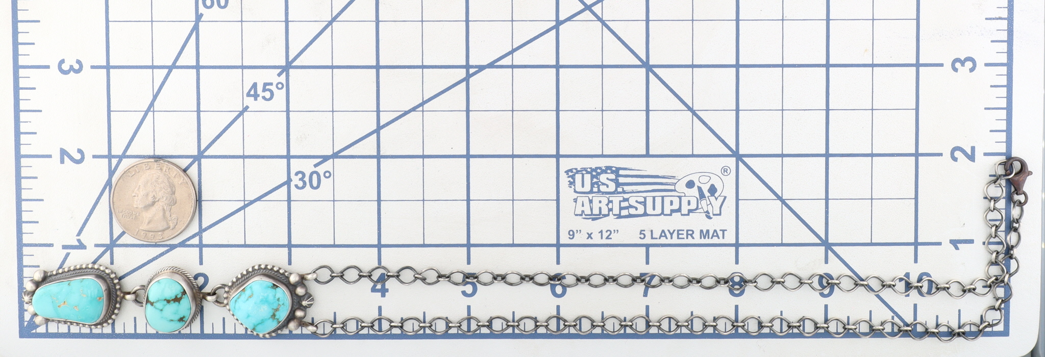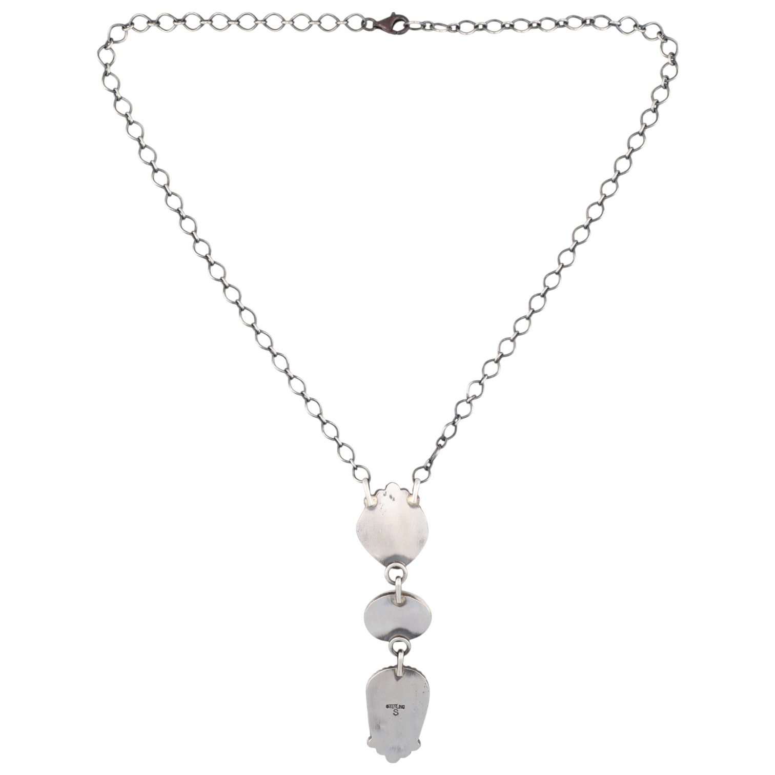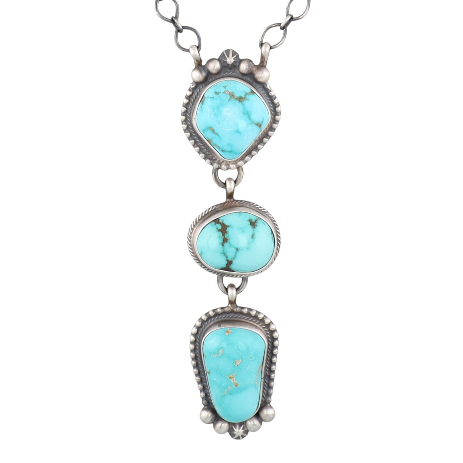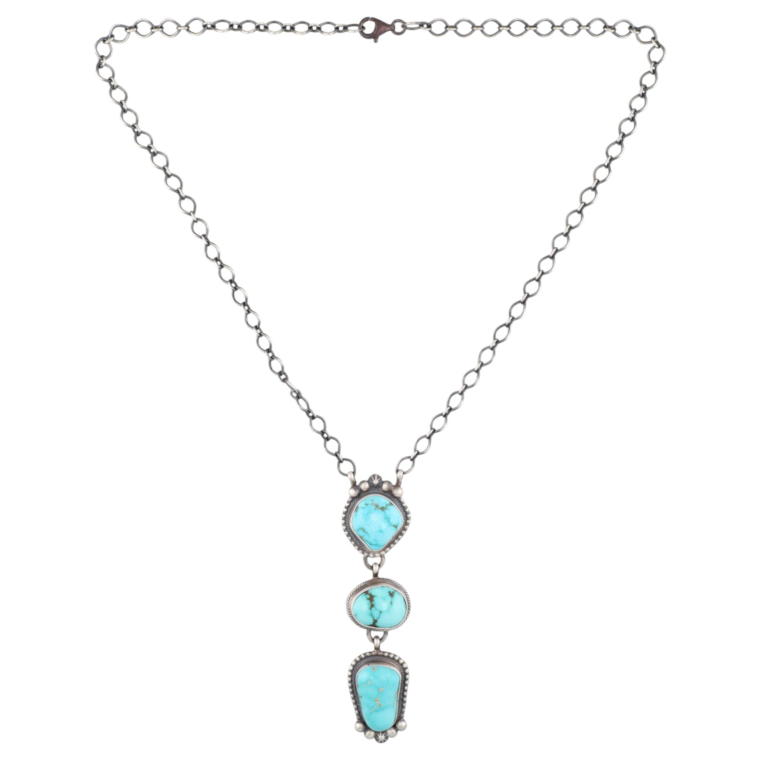 Signed S Navajo Sterling Kingman Turquoise Lariat Necklace 30g