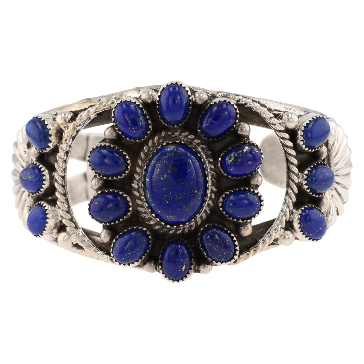 Lenny Kee Navajo Sterling Lapis Cluster Cuff Bracelet 15g