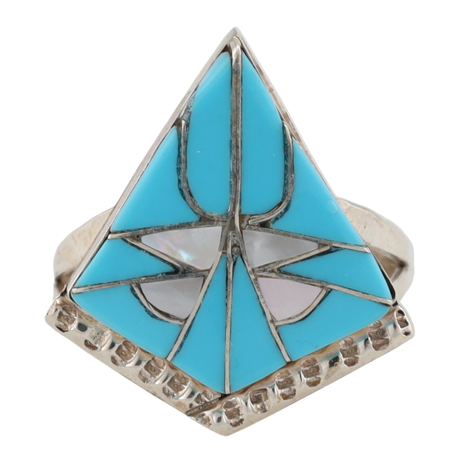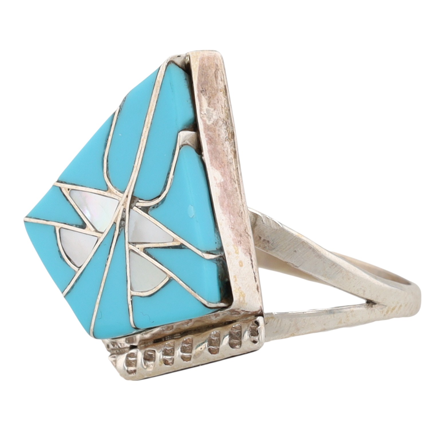 Devin Quam Zuni Sterling Kingman Turquoise Inlay Ring Sz. 6, 3g