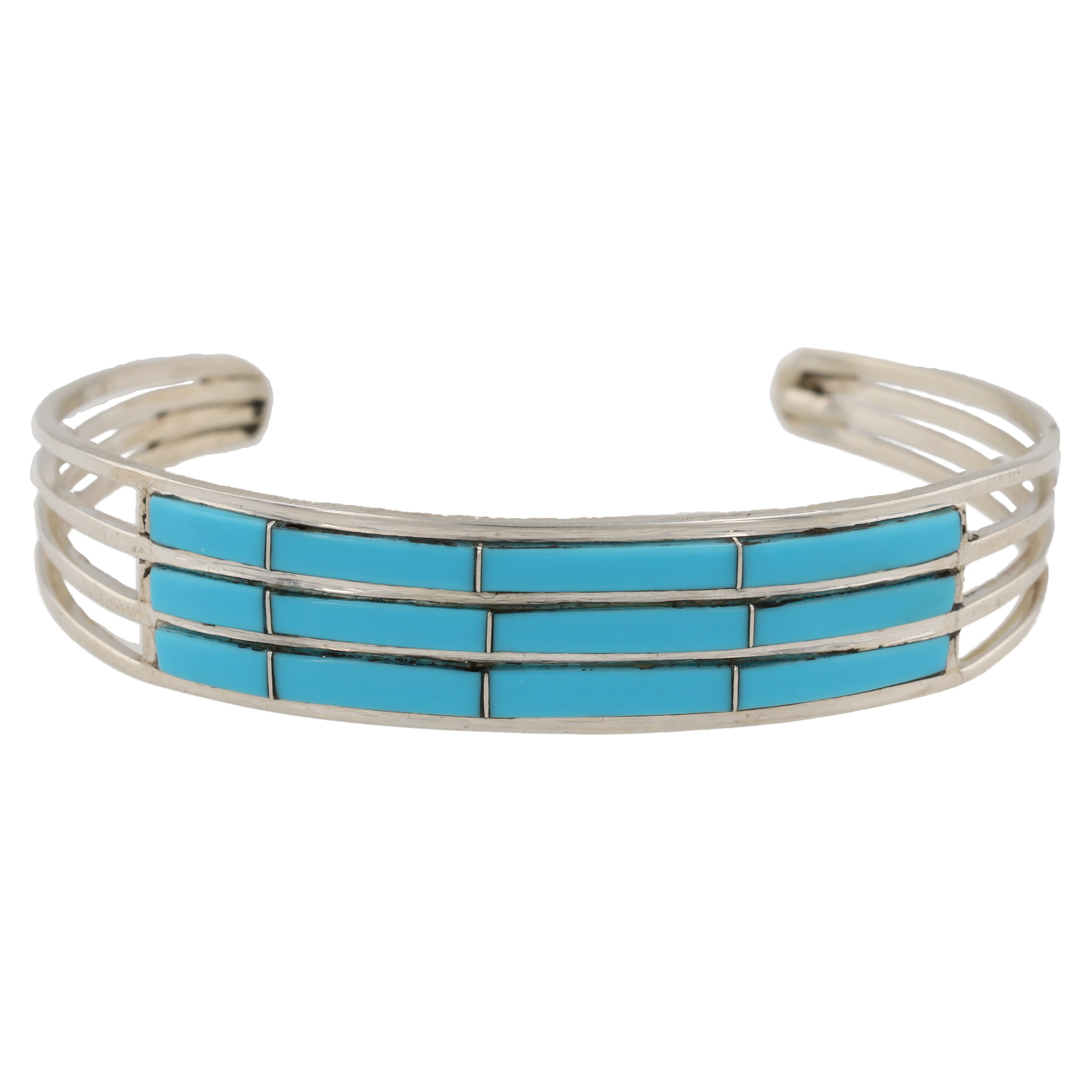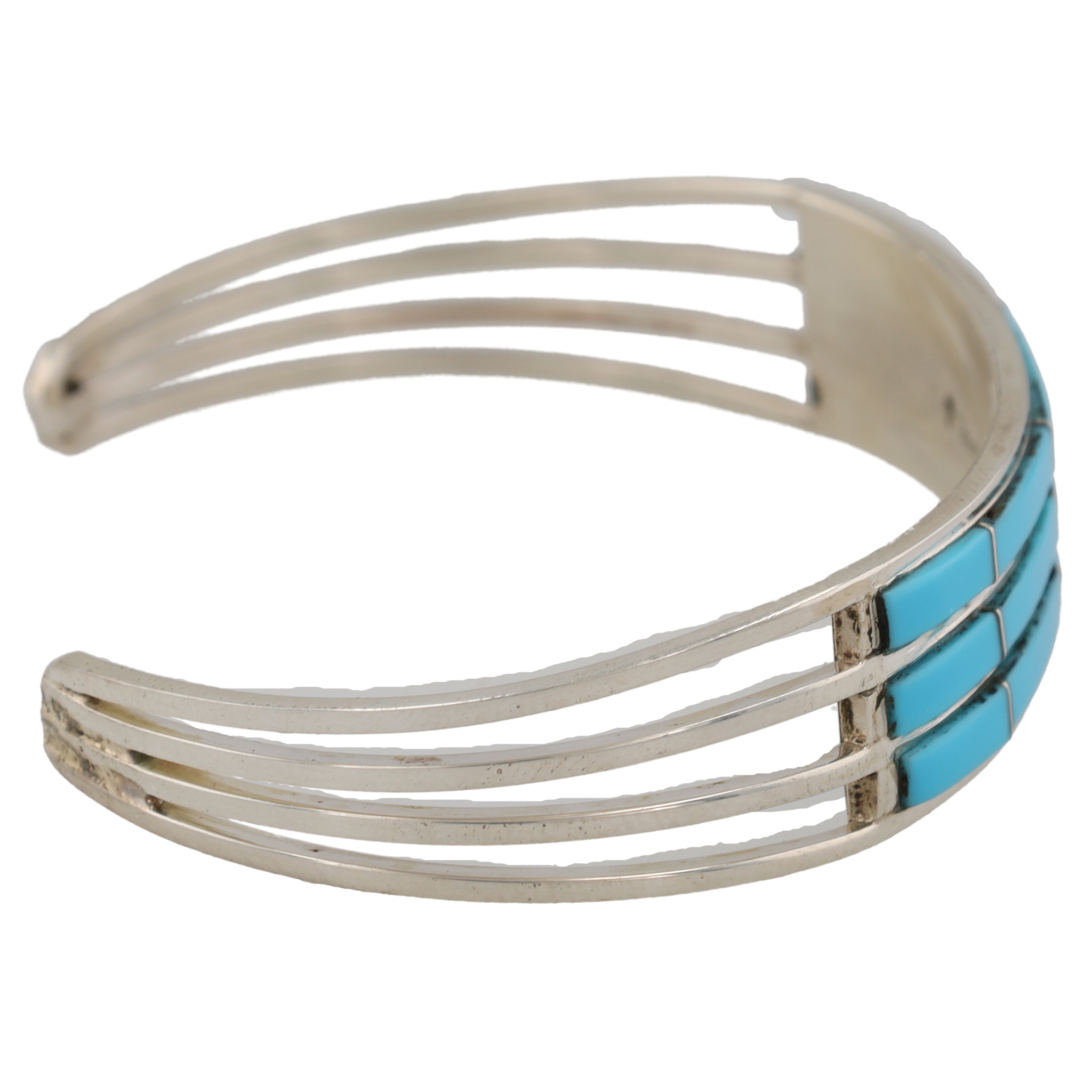 Jamie Johnson Navajo Sterling Kingman Inlay Cuff Bracelet 12g