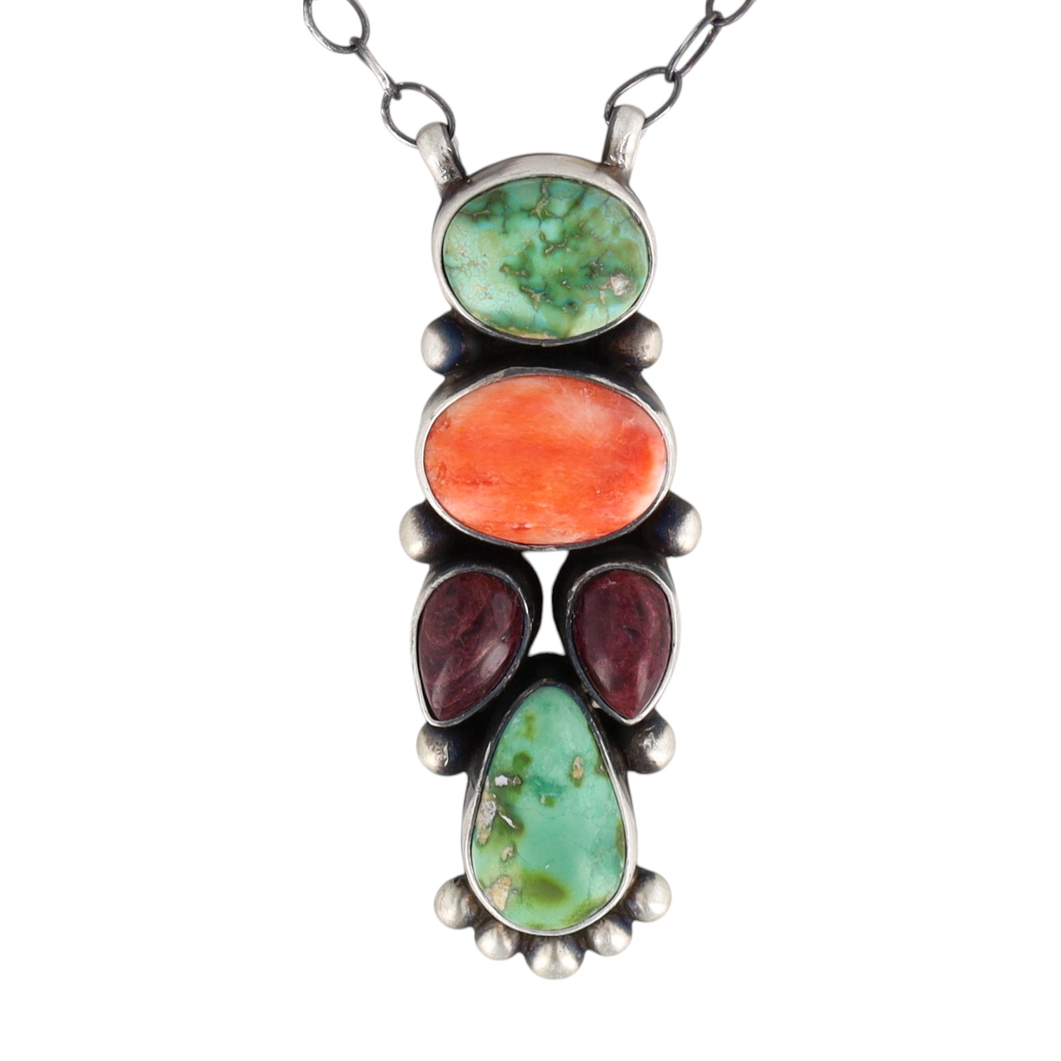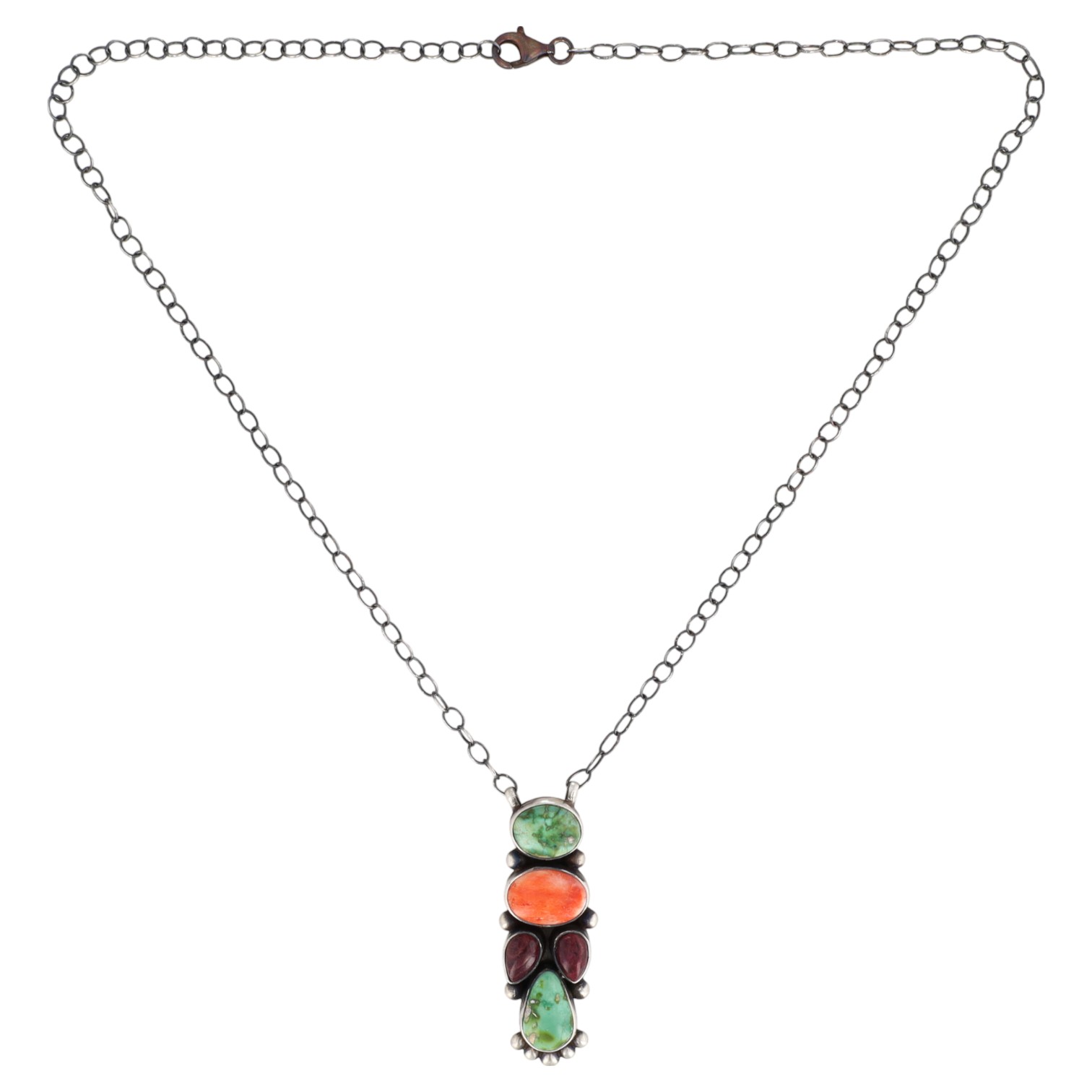 Scott Skeets Navajo Sterling Multi Stone Necklace 14g