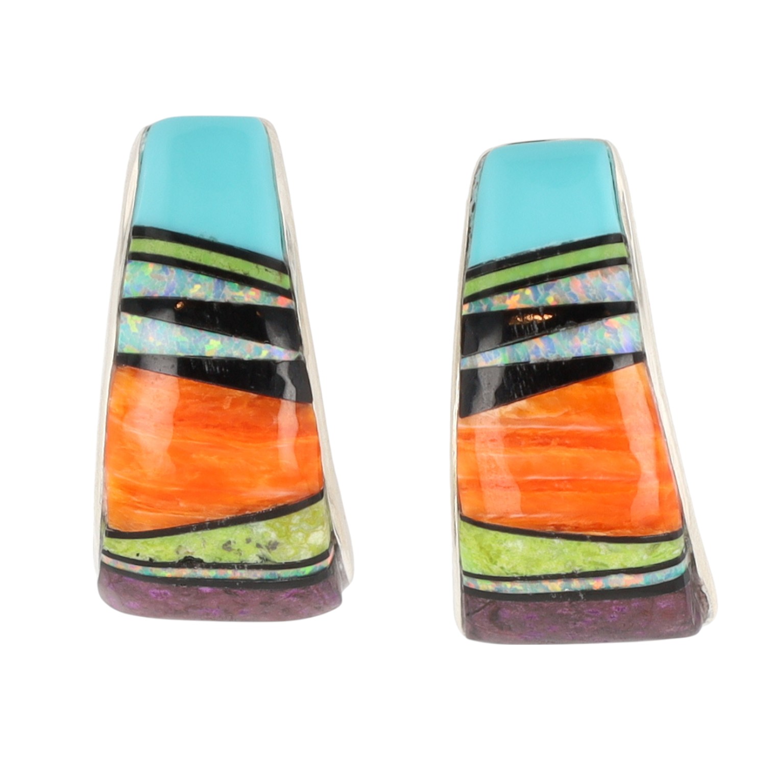 Rick Tolino Navajo Sterling Multi Stone Inlay Earrings 5g