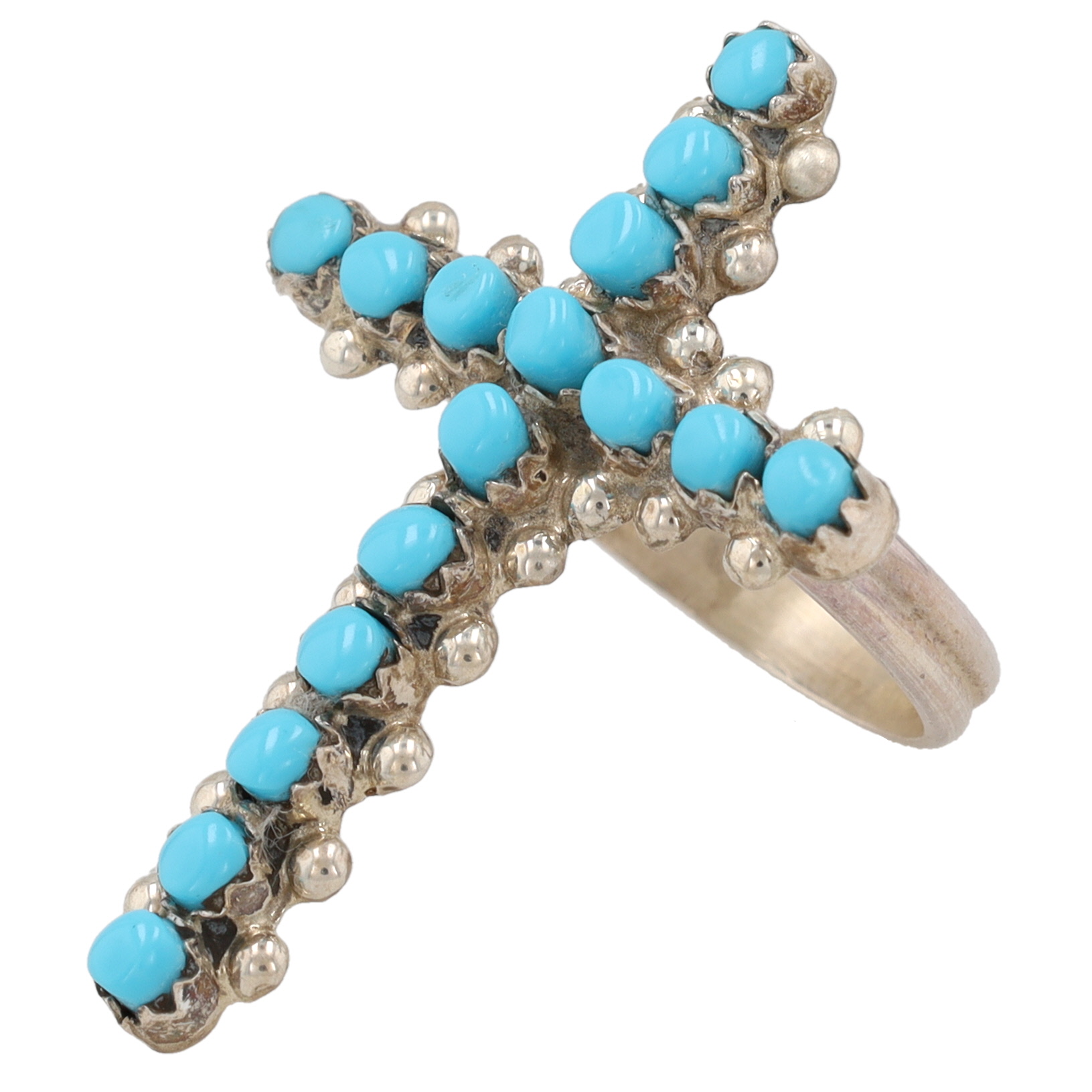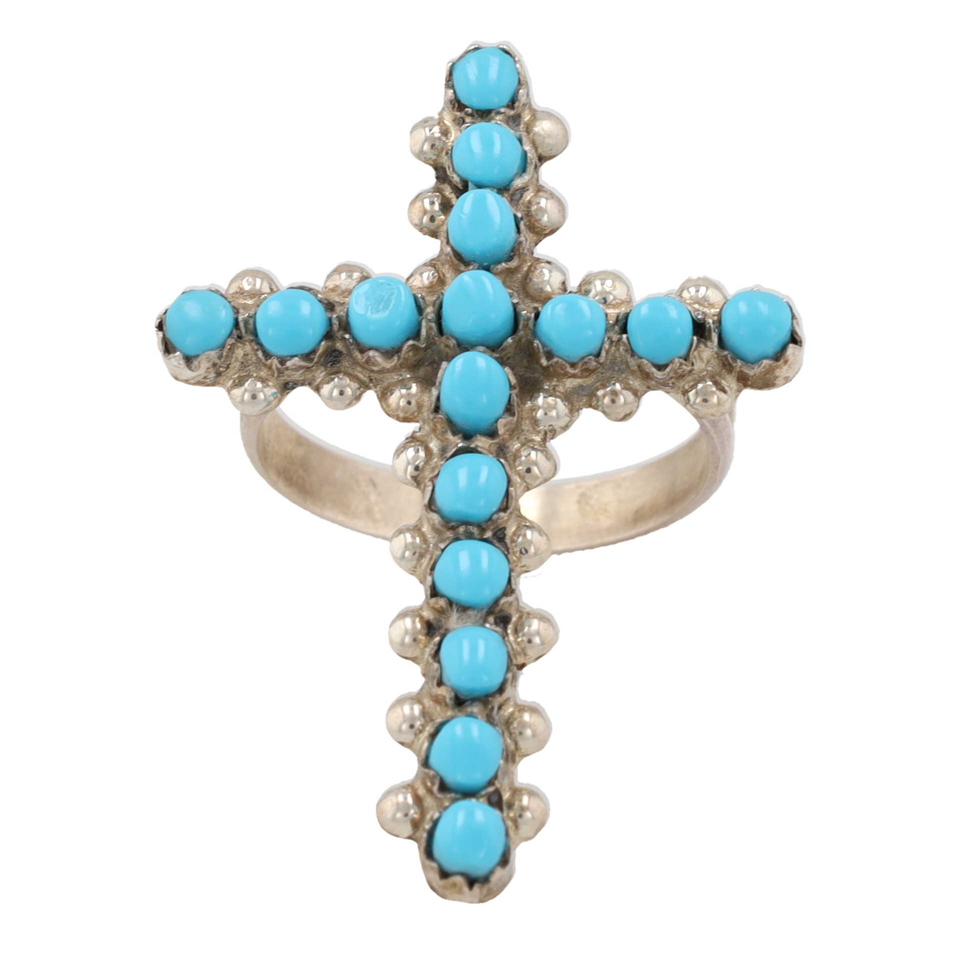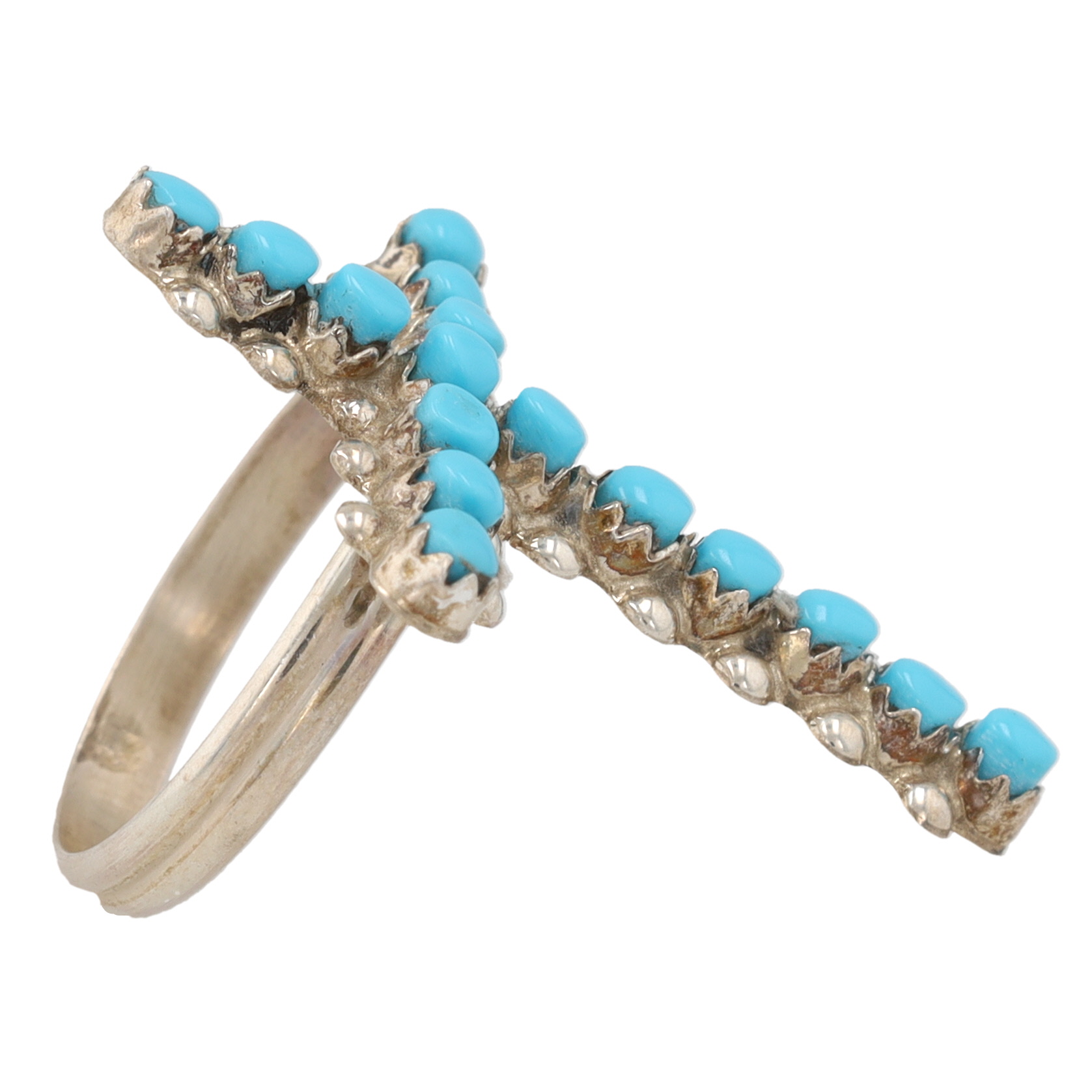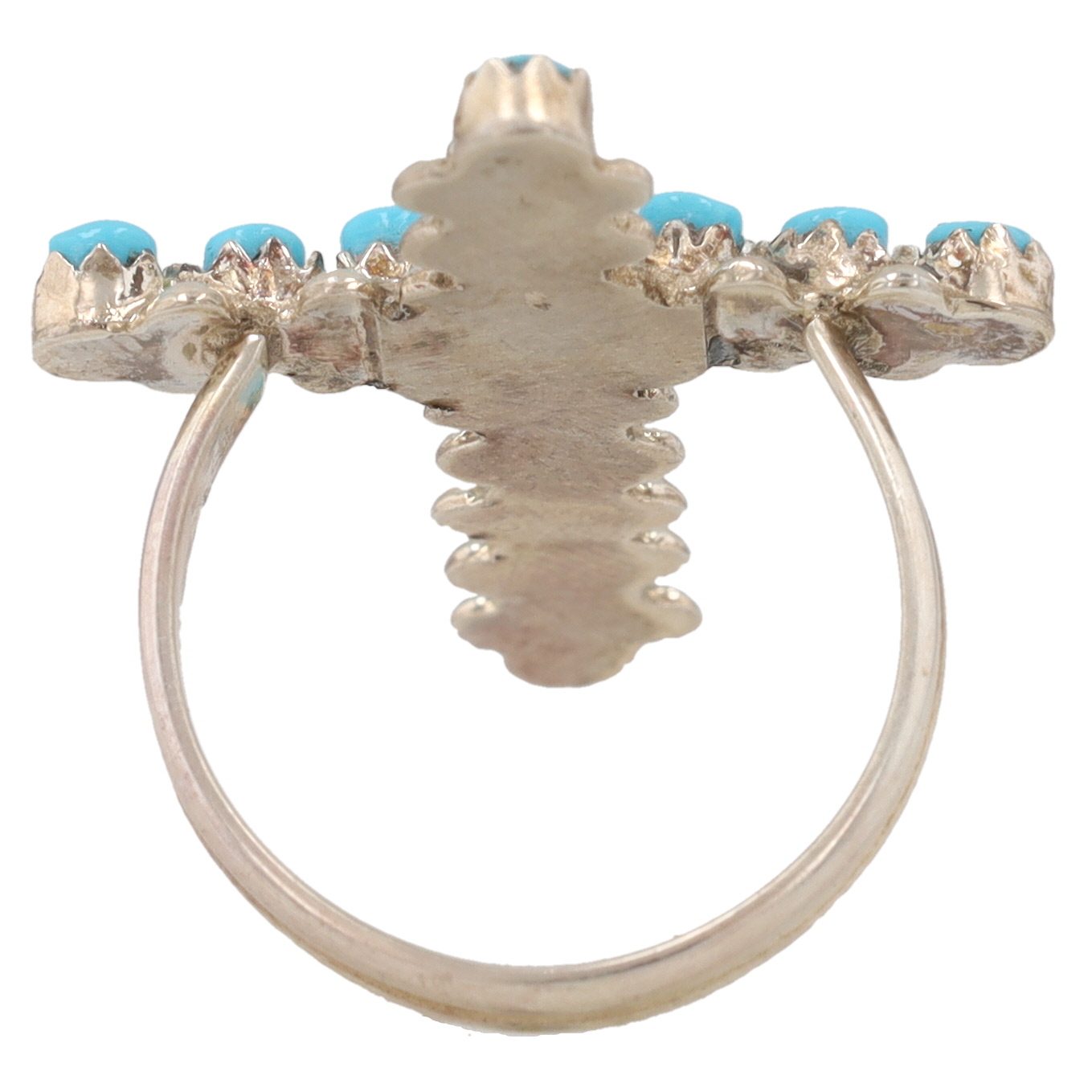 Marlon Quam Zuni Sterling Snake Eye Kingman Turquoise Cross Ring Sz. 7, 4g