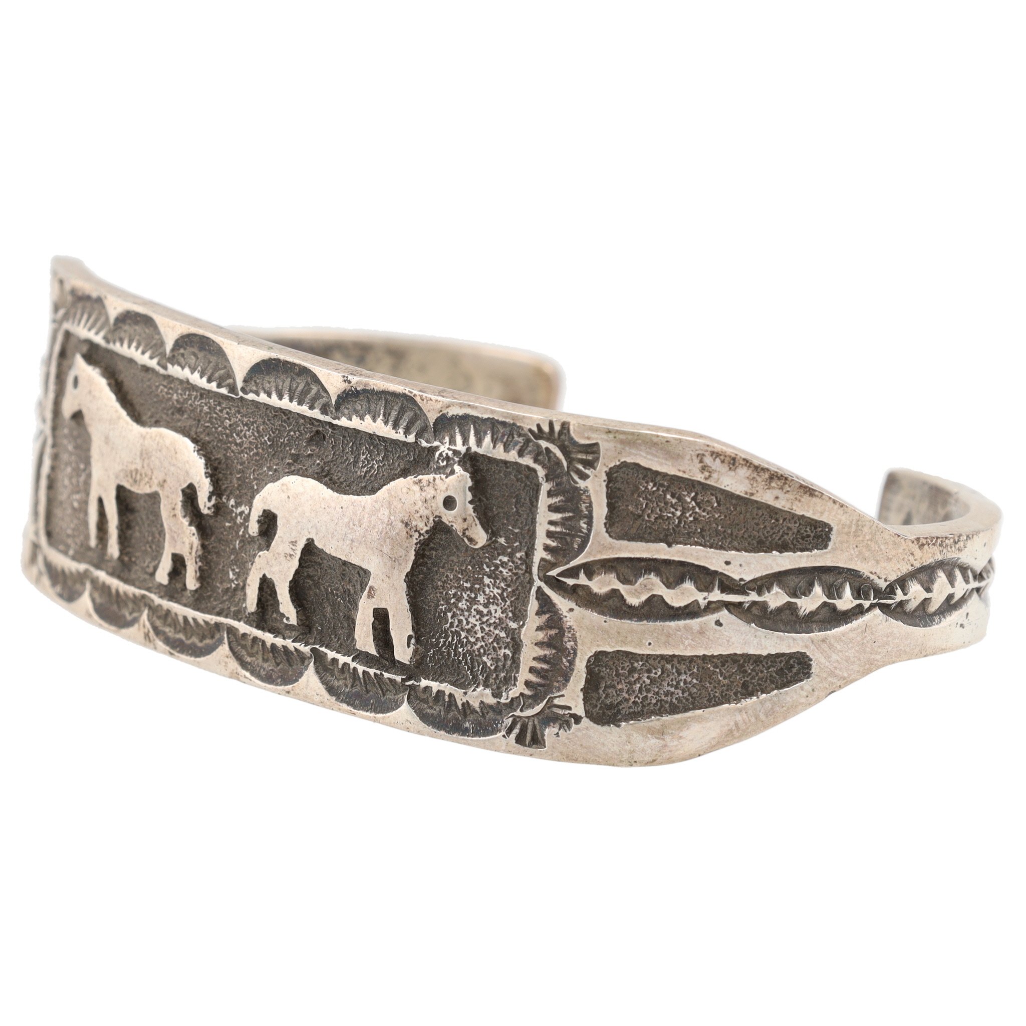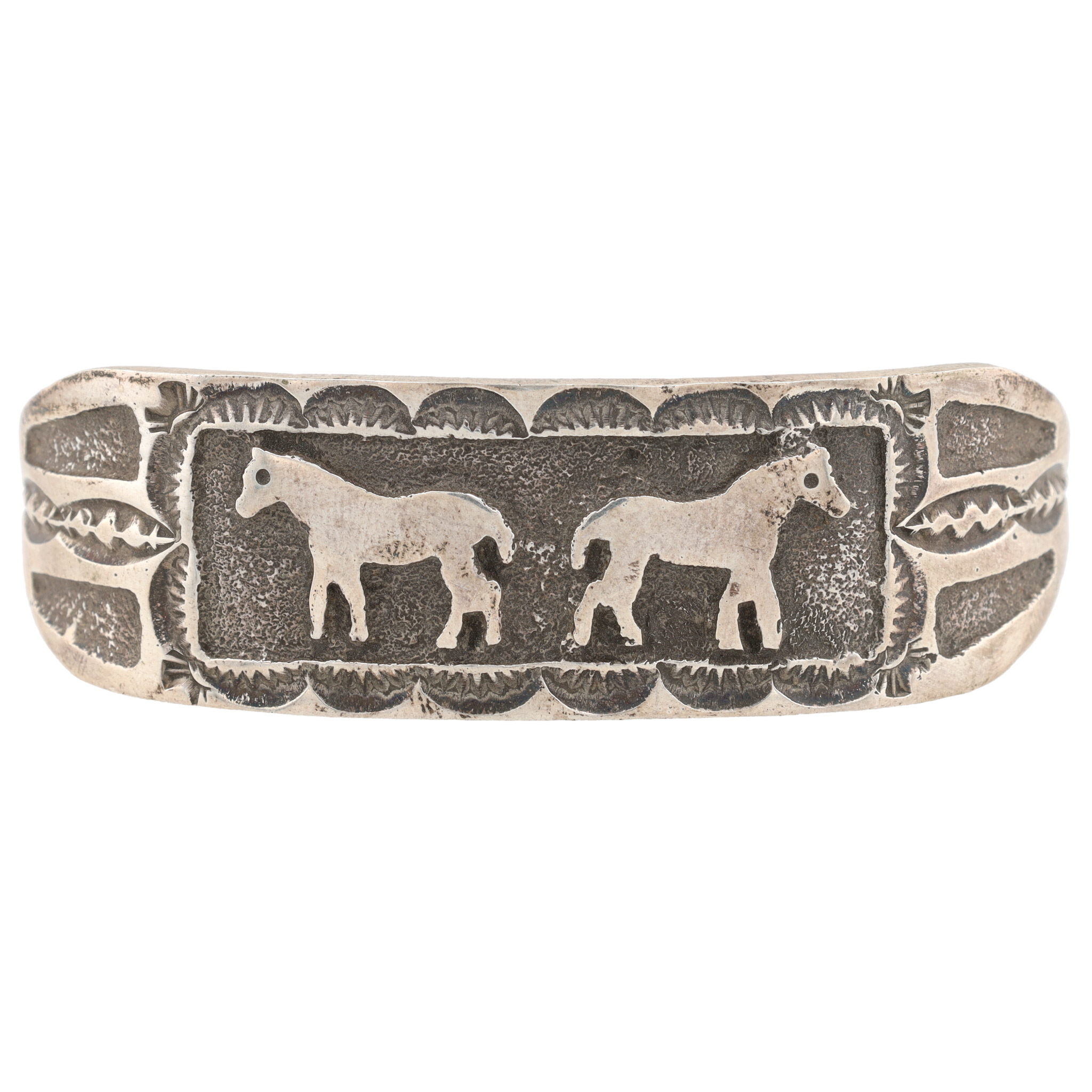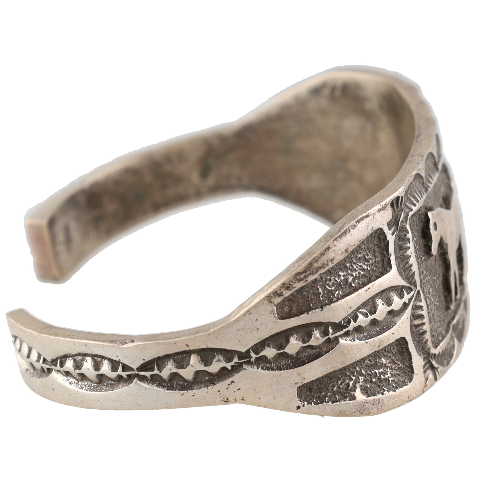 Emerson Kinsel Navajo Plain Silver Horse Overlay Bracelet 42g
